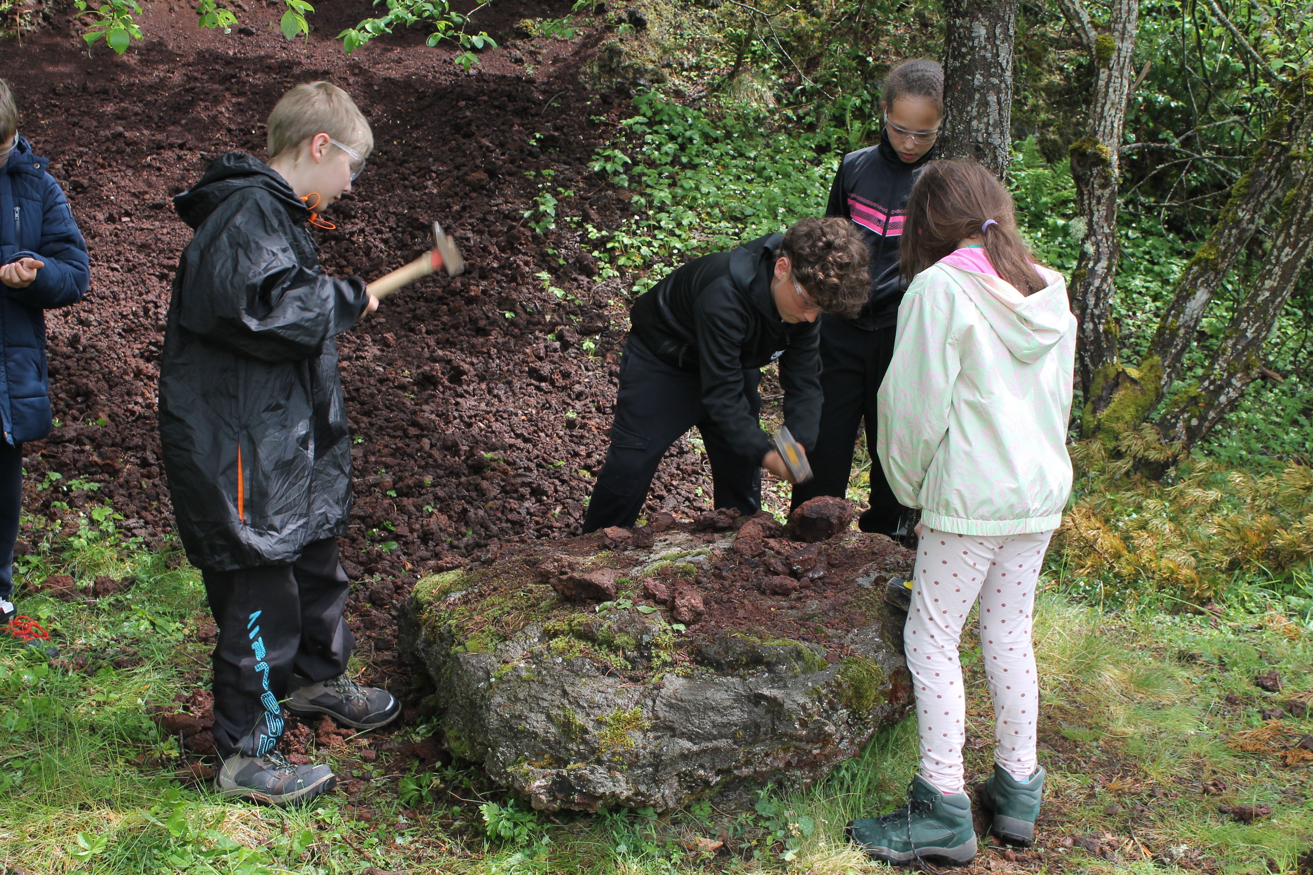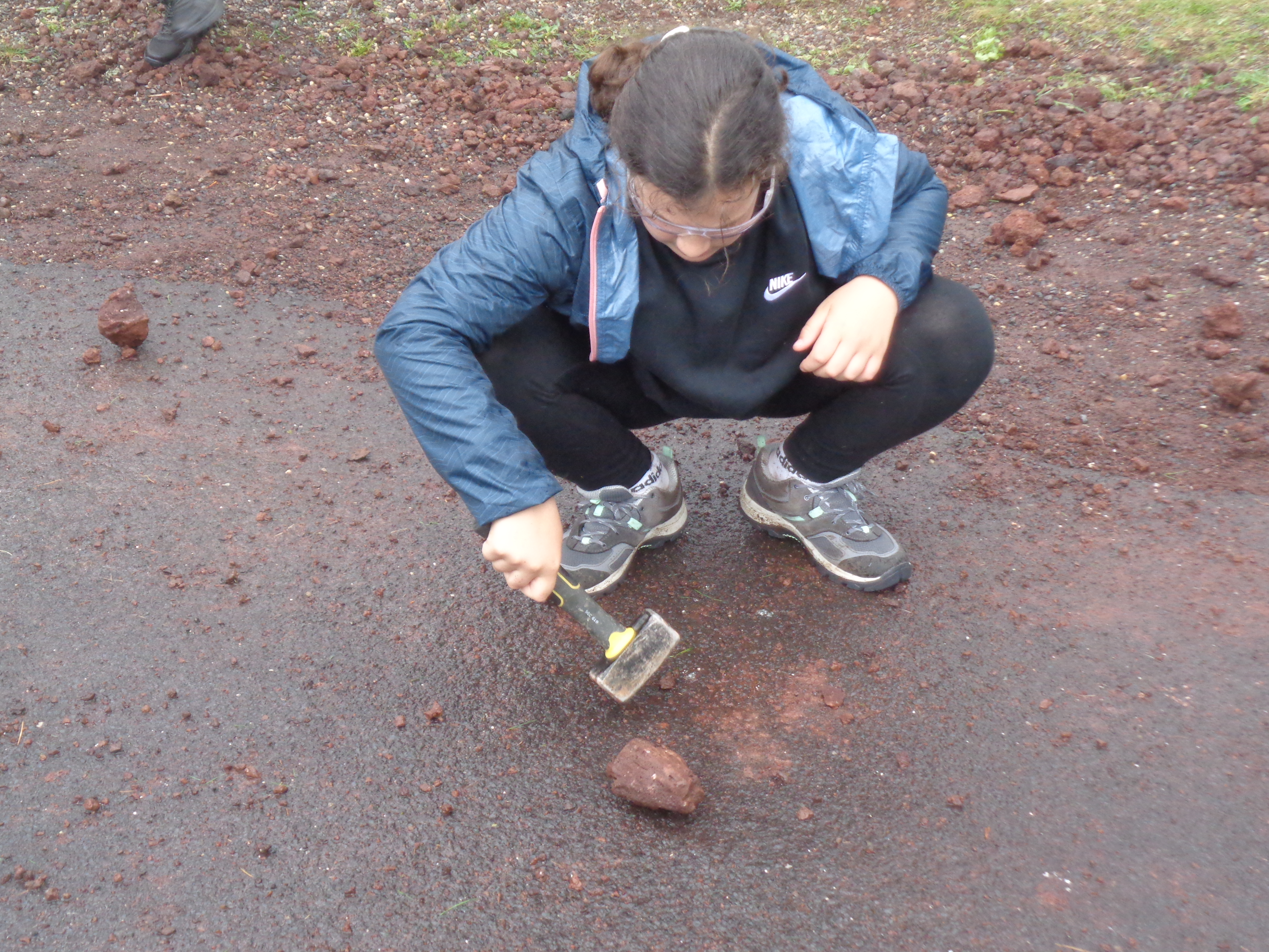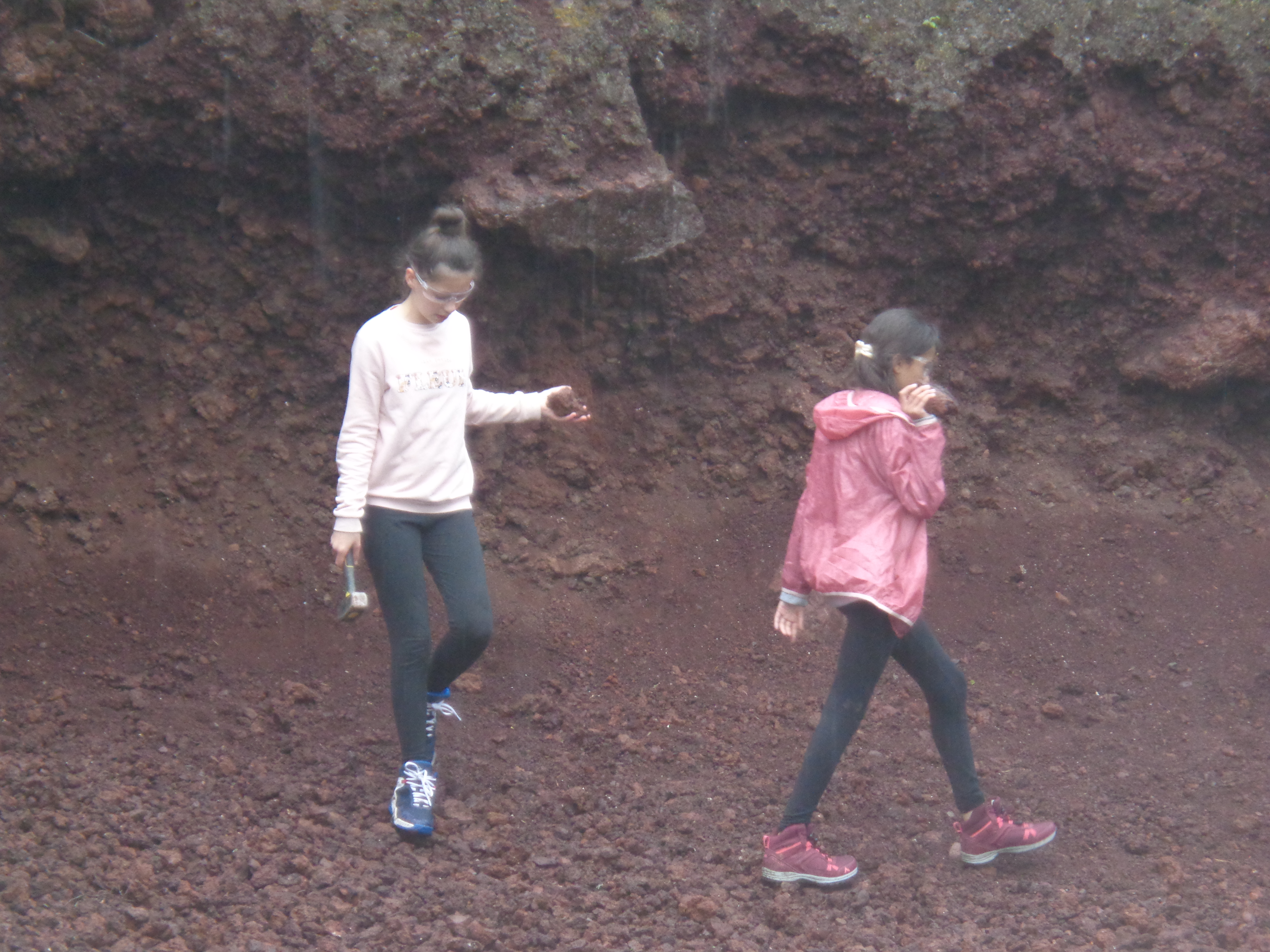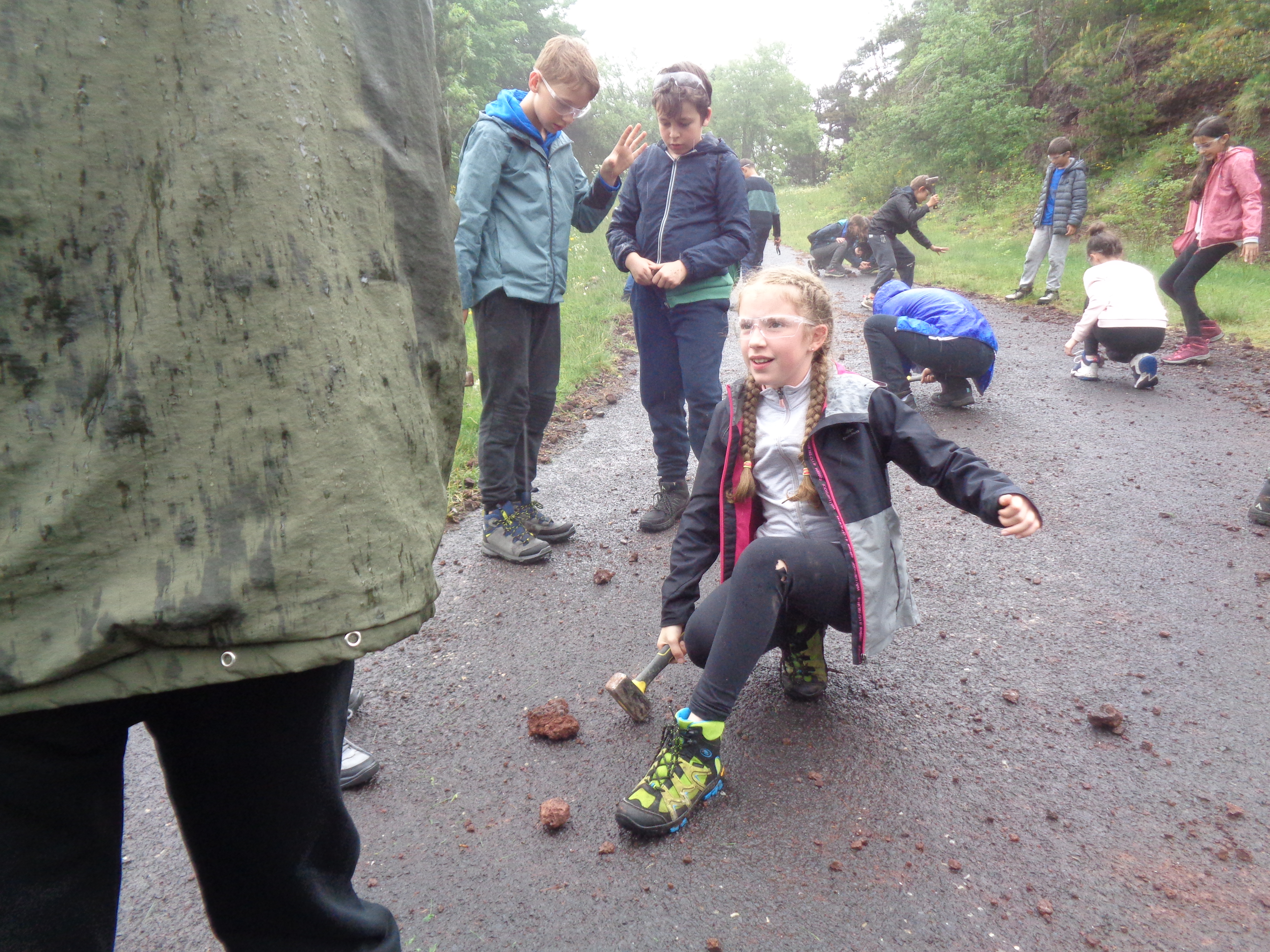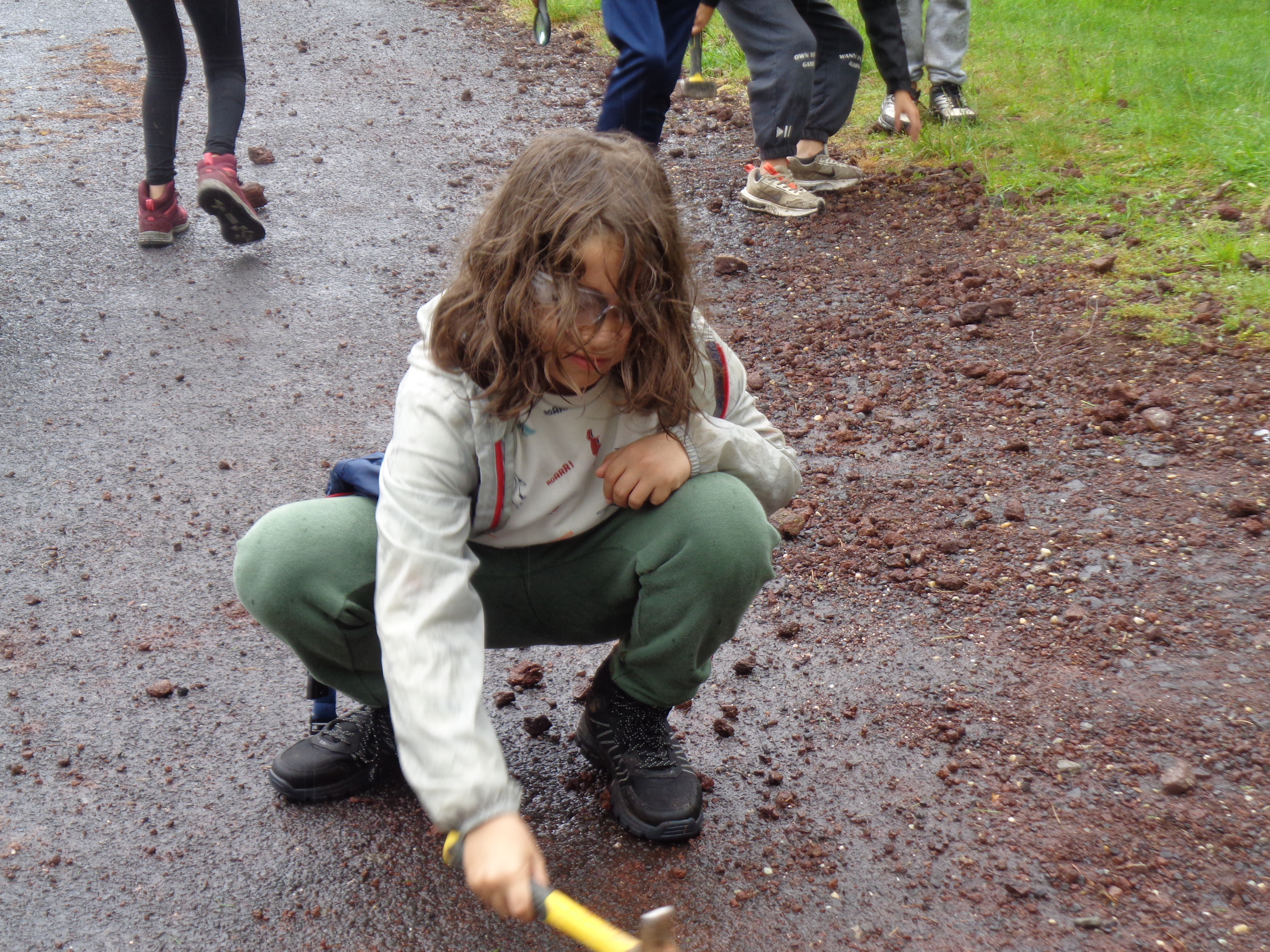 L'après-midi nous avons cassé des pierres volcaniques, nous y avons trouvé de l'olivine et d'autres minéraux: du granit et du mica noir. Quand nous avons fini de casser ces minéraux, nous avons visité le volcan du Cherchemuse,. Nous avons gouté sur place, c'était une très bonne journée!