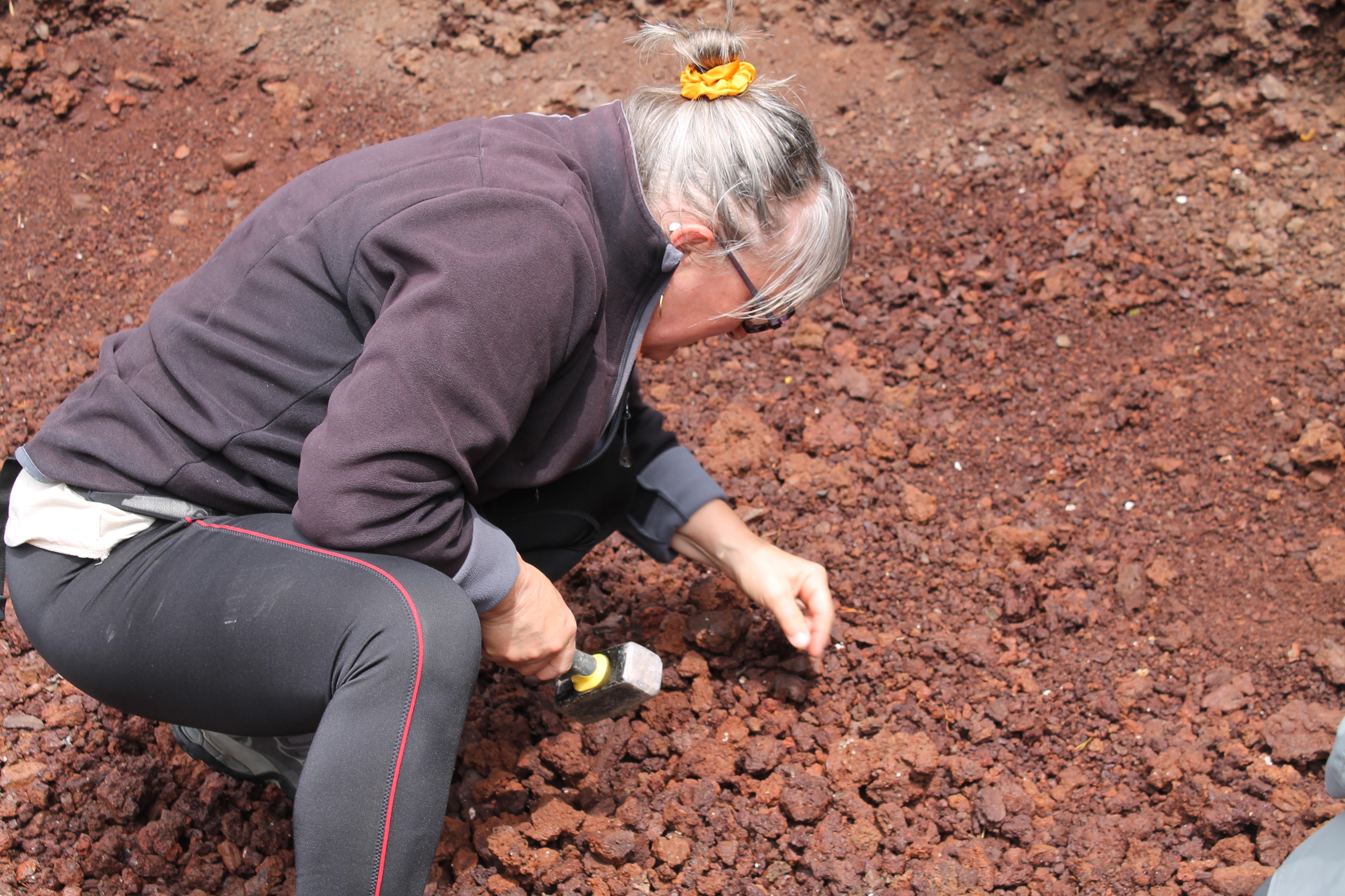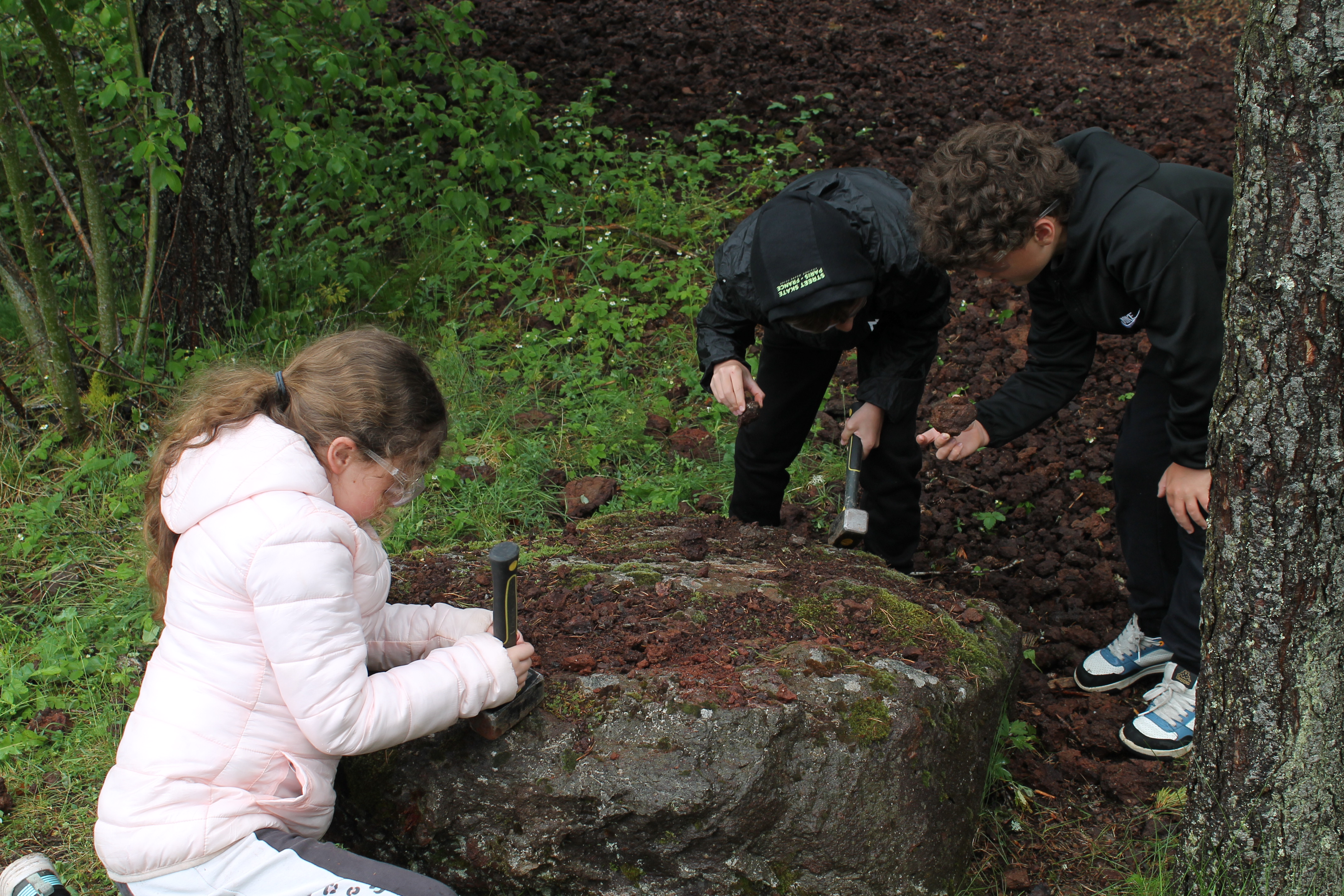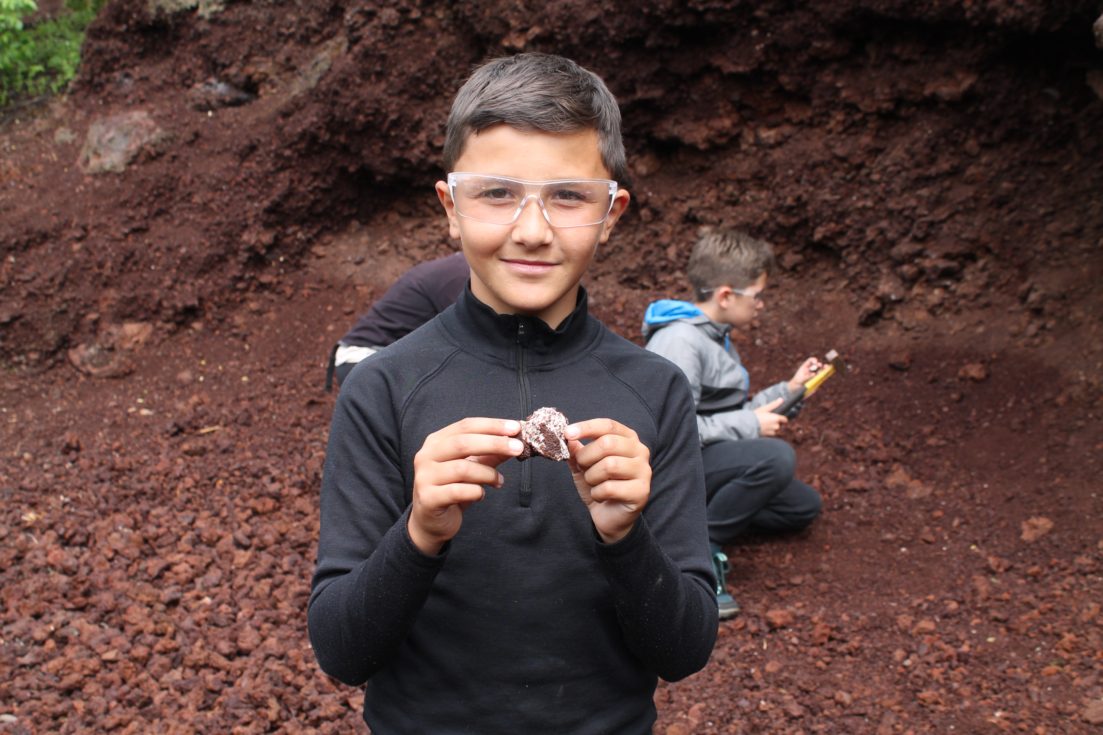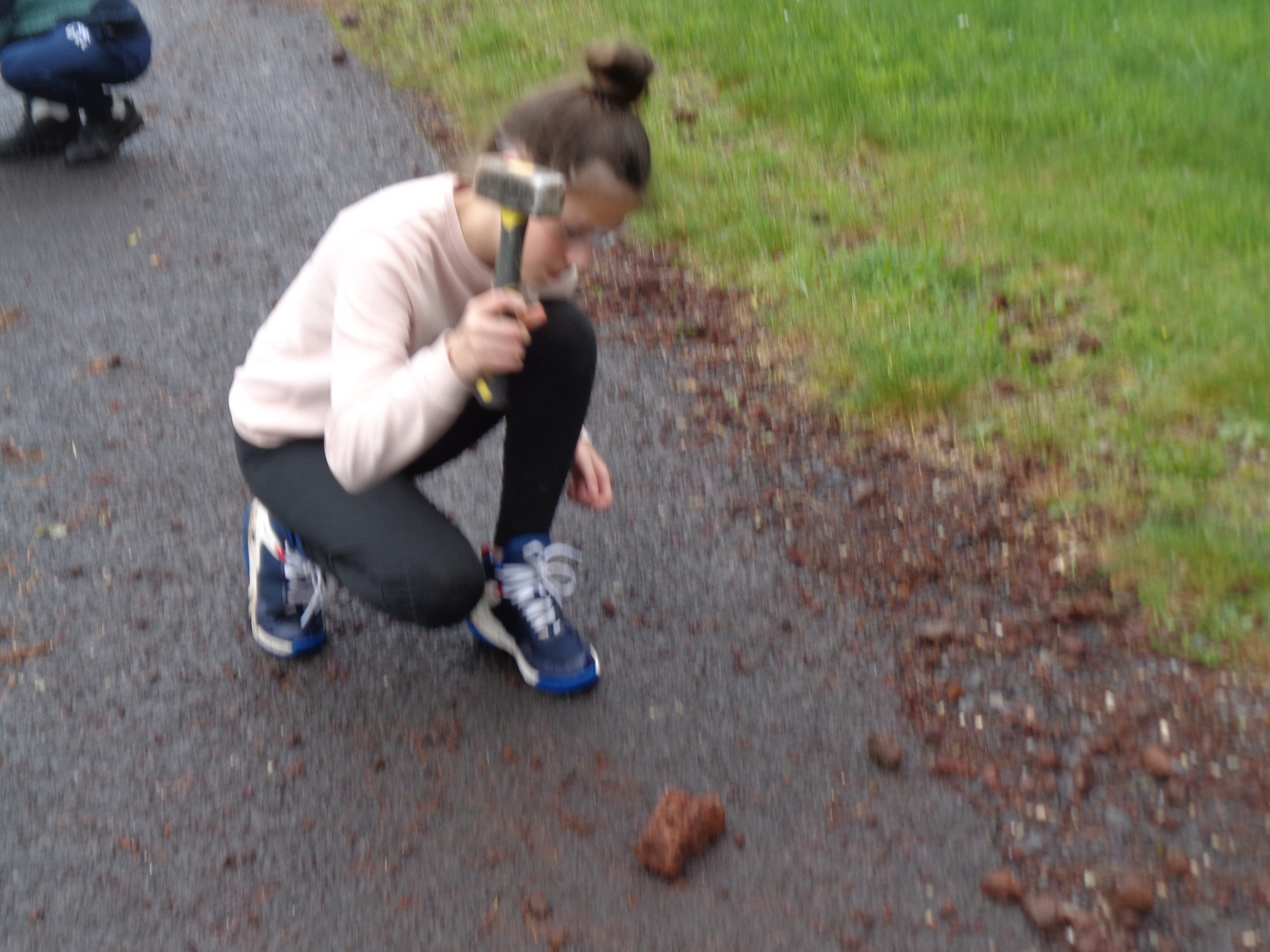 L'après-midi nous avons cassé des pierres volcaniques, nous y avons trouvé de l'olivine et d'autres minéraux: du granit et du mica noir. Quand nous avons fini de casser ces minéraux, nous avons visité le volcan du Cherchemuse,. Nous avons gouté sur place, c'était une très bonne journée!