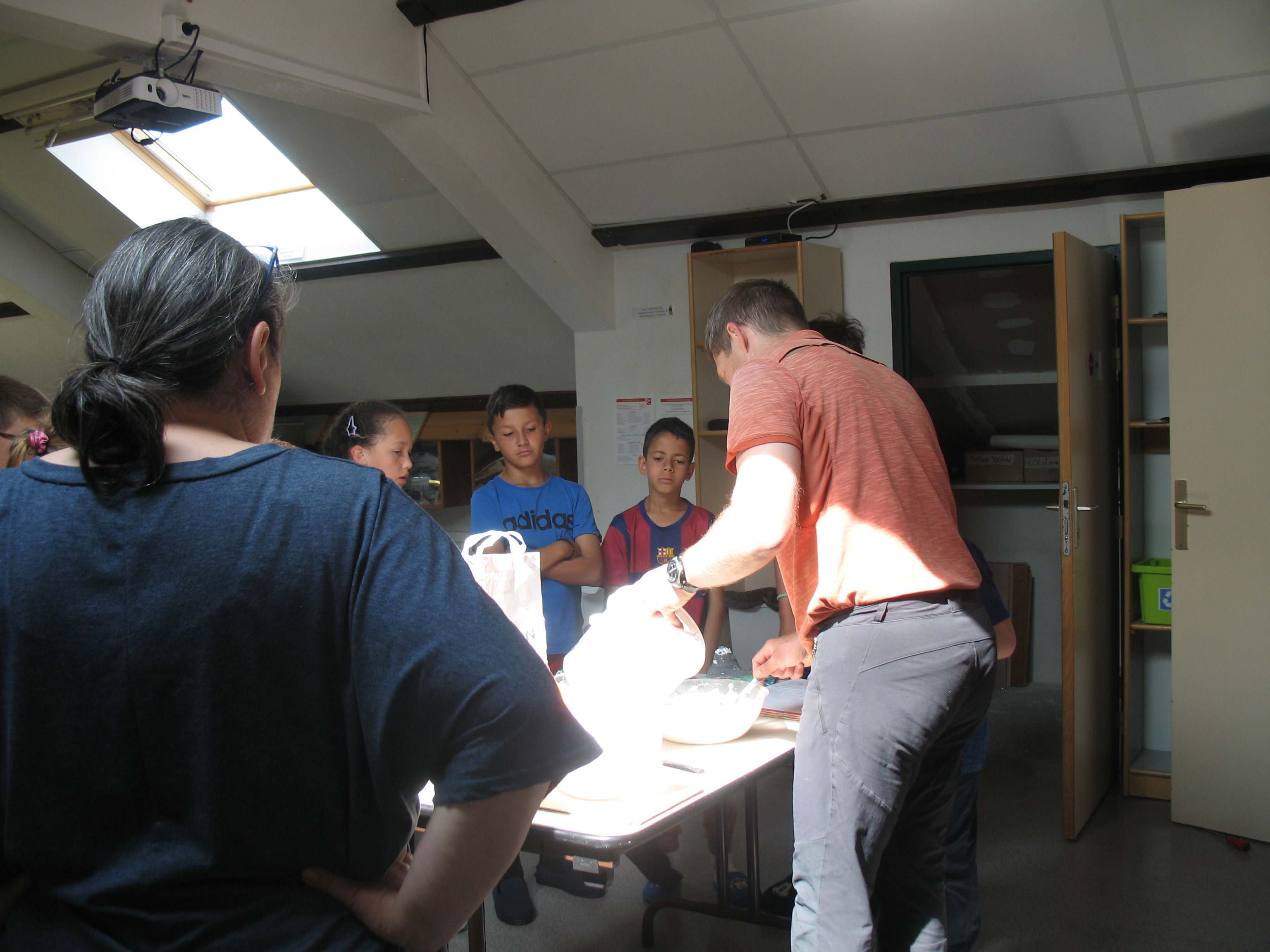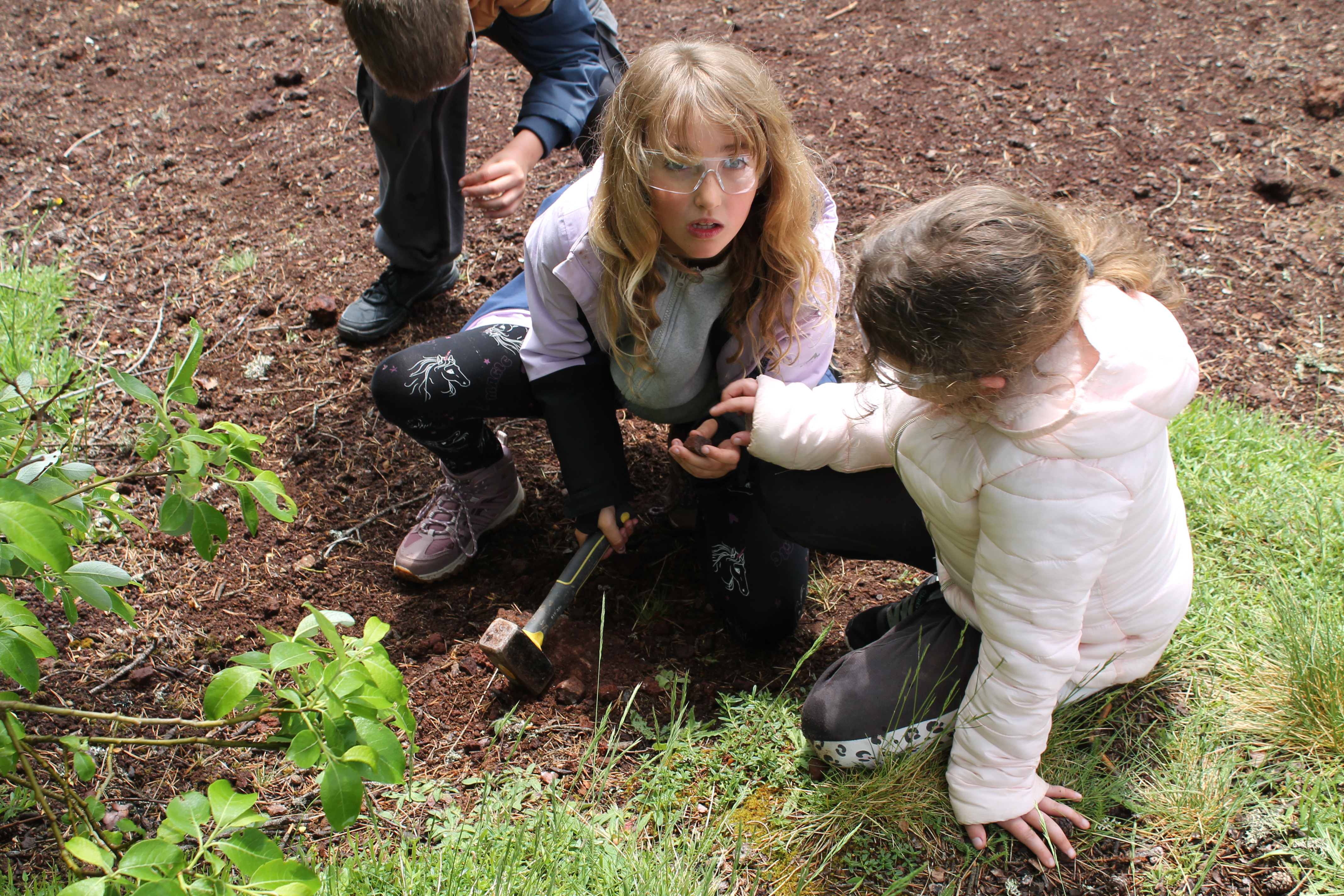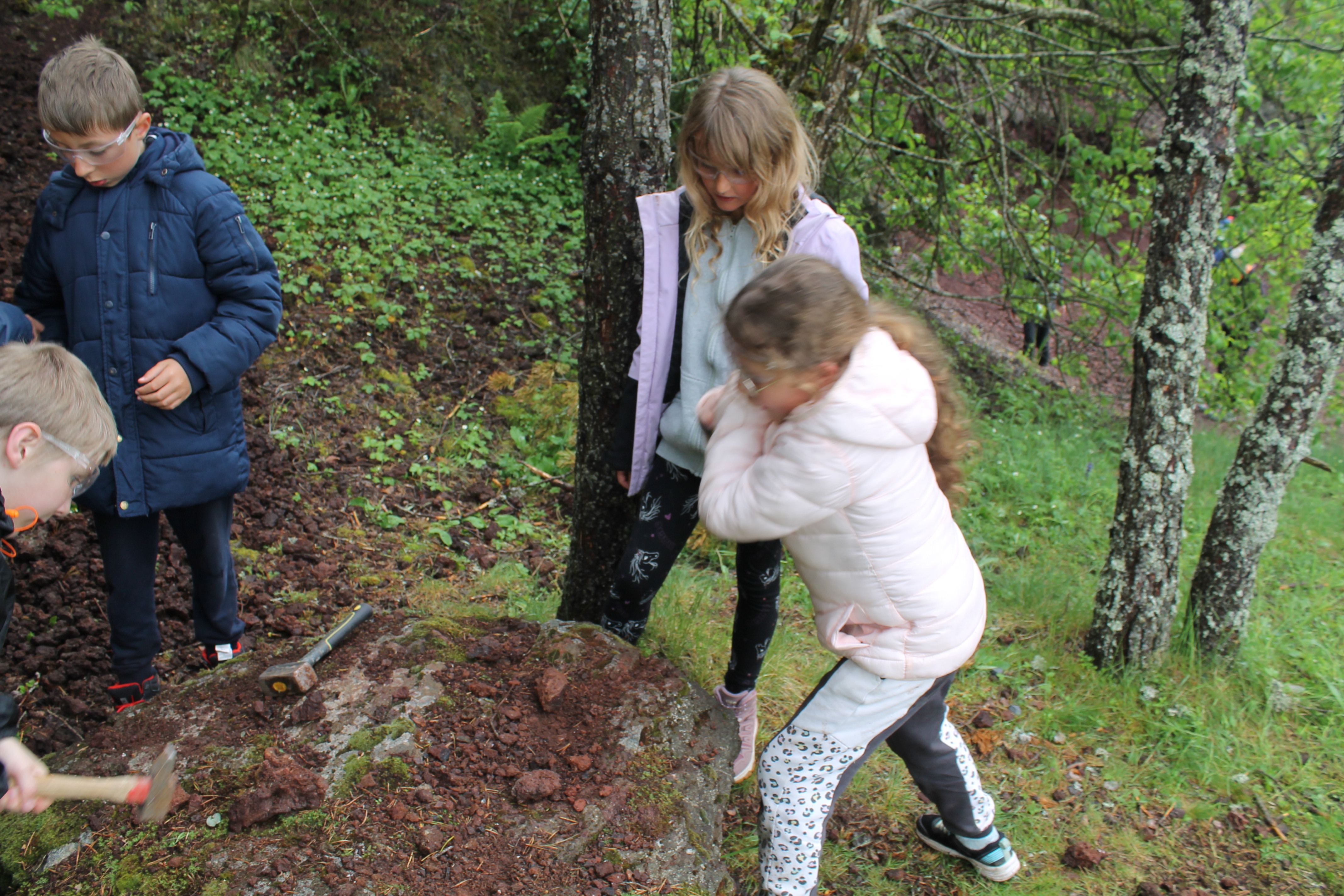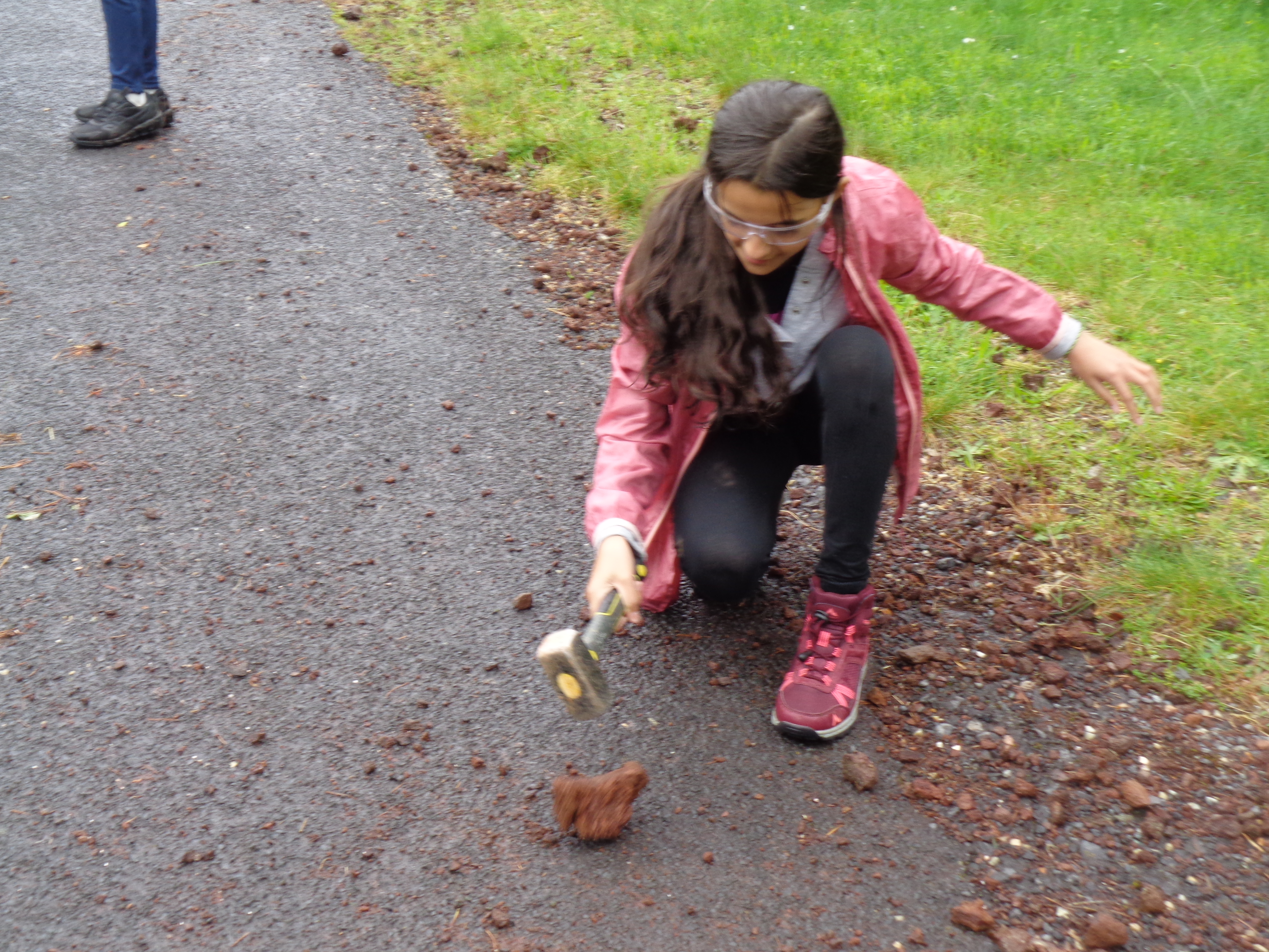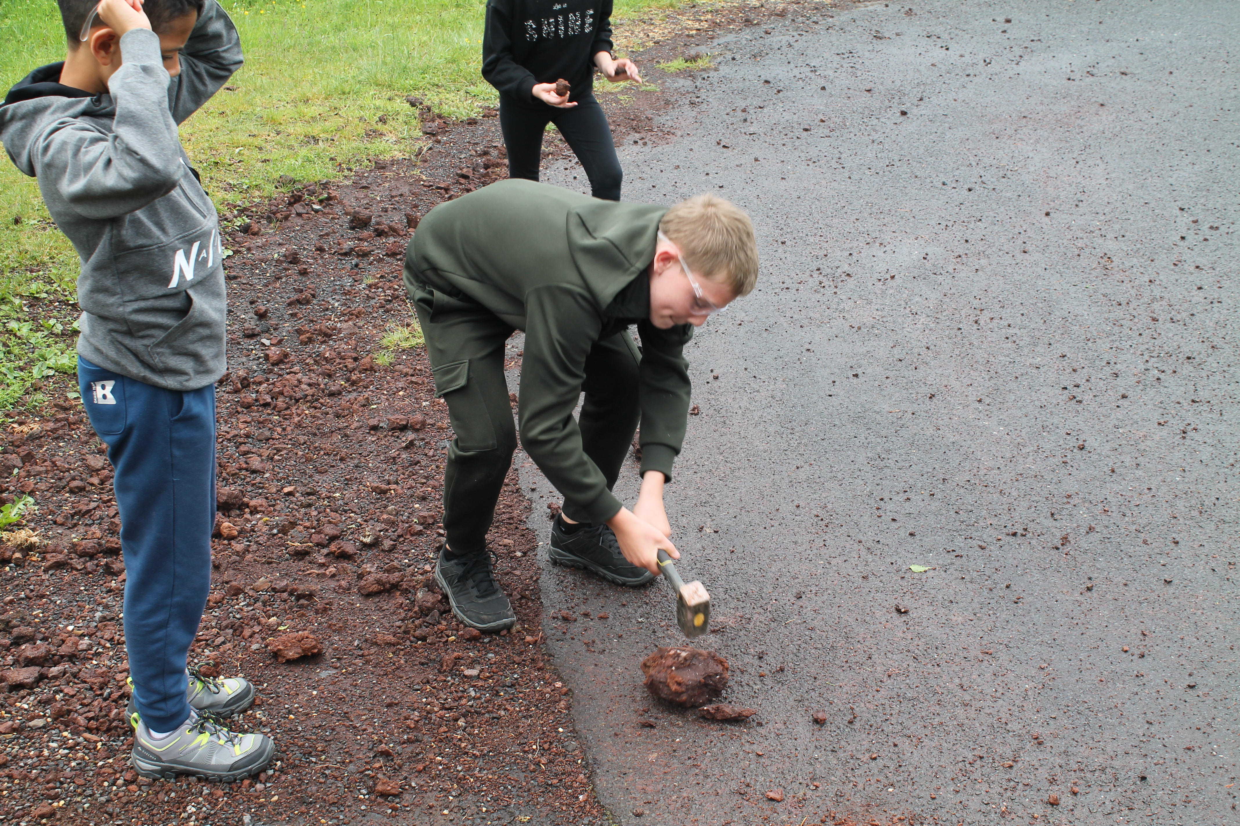 L'après-midi nous avons cassé des pierres volcaniques, nous y avons trouvé de l'olivine et d'autres minéraux: du granit et du mica noir. Quand nous avons fini de casser ces minéraux, nous avons visité le volcan du Cherchemuse,. Nous avons gouté sur place, c'était une très bonne journée!