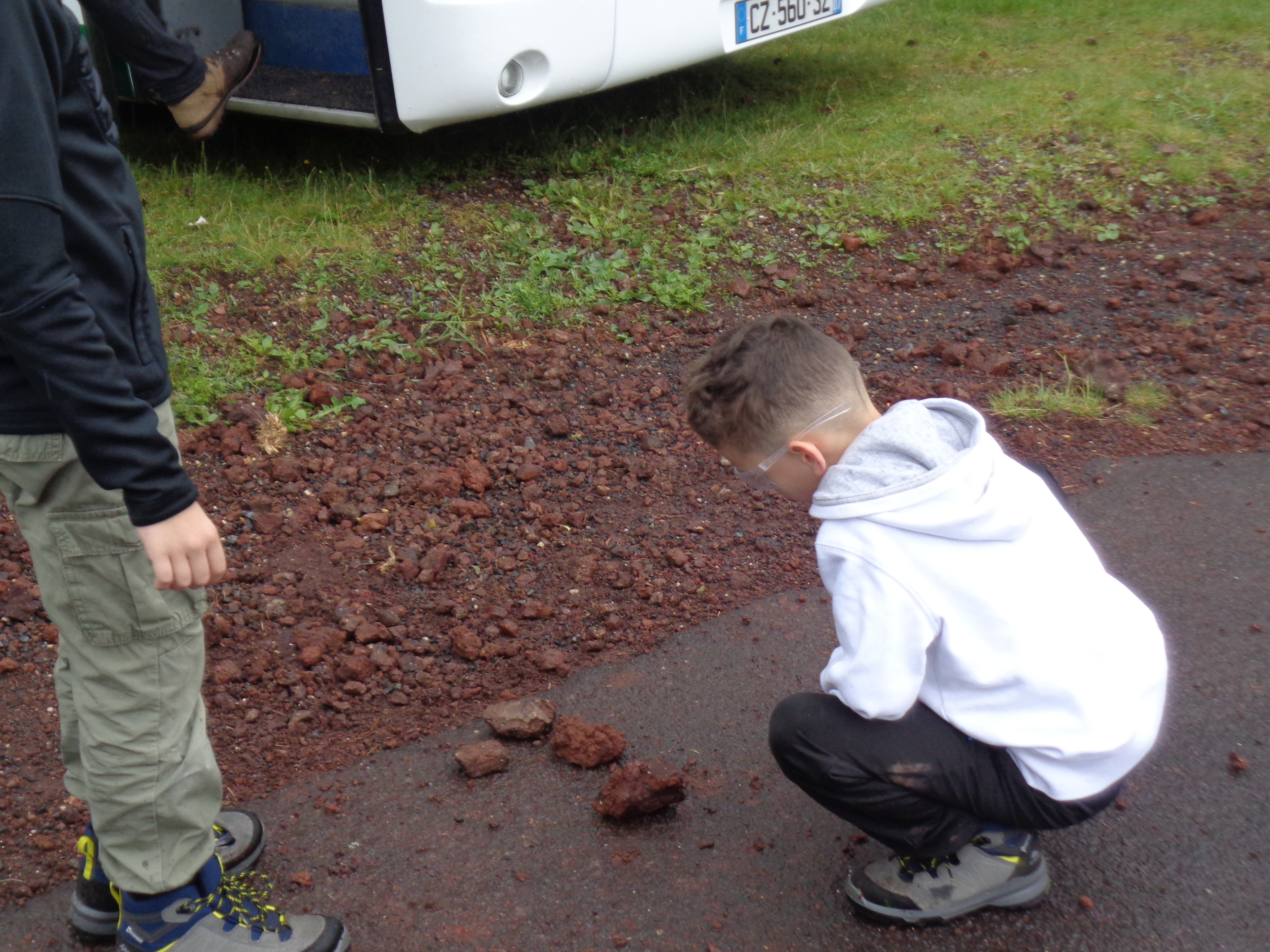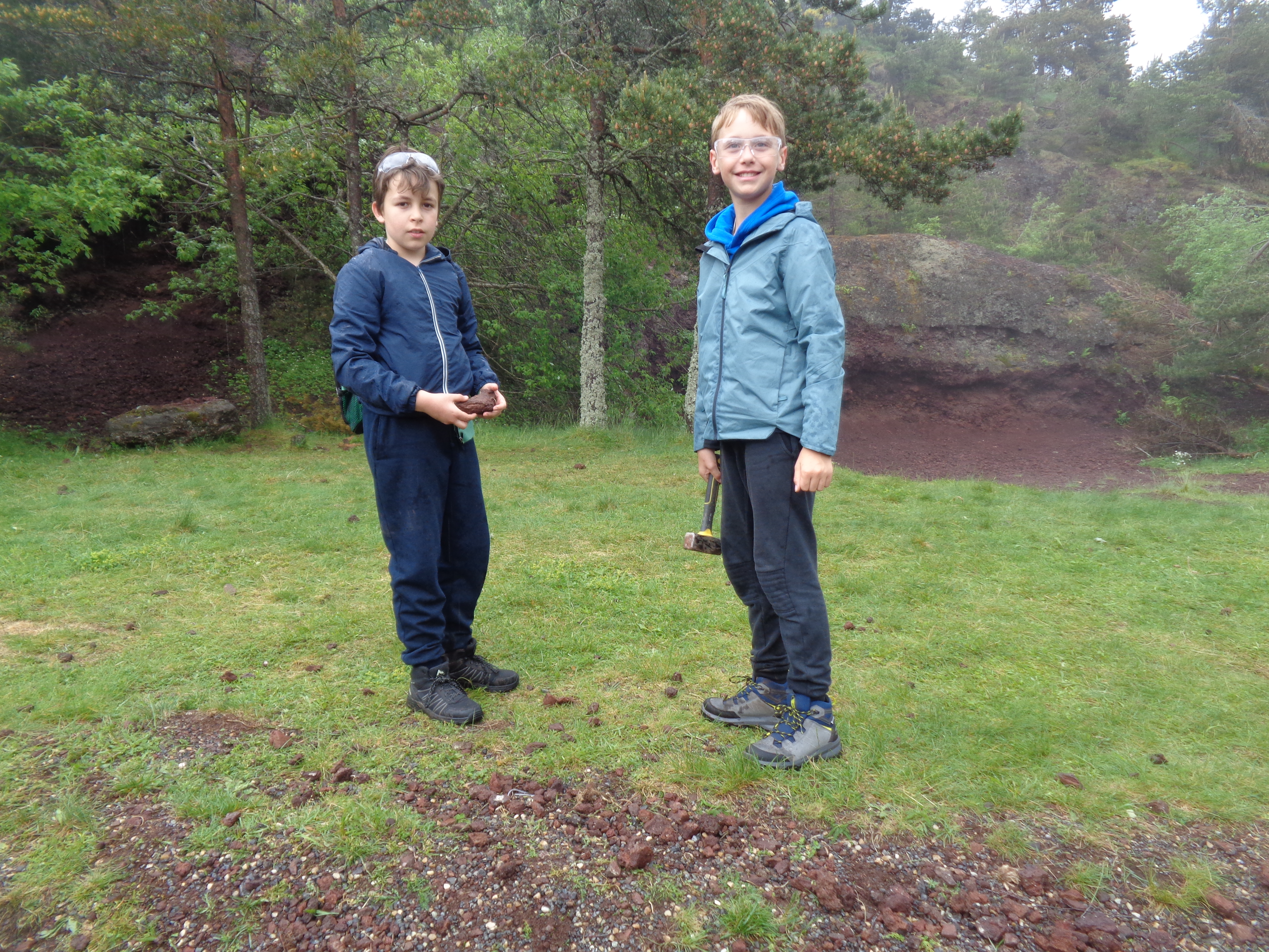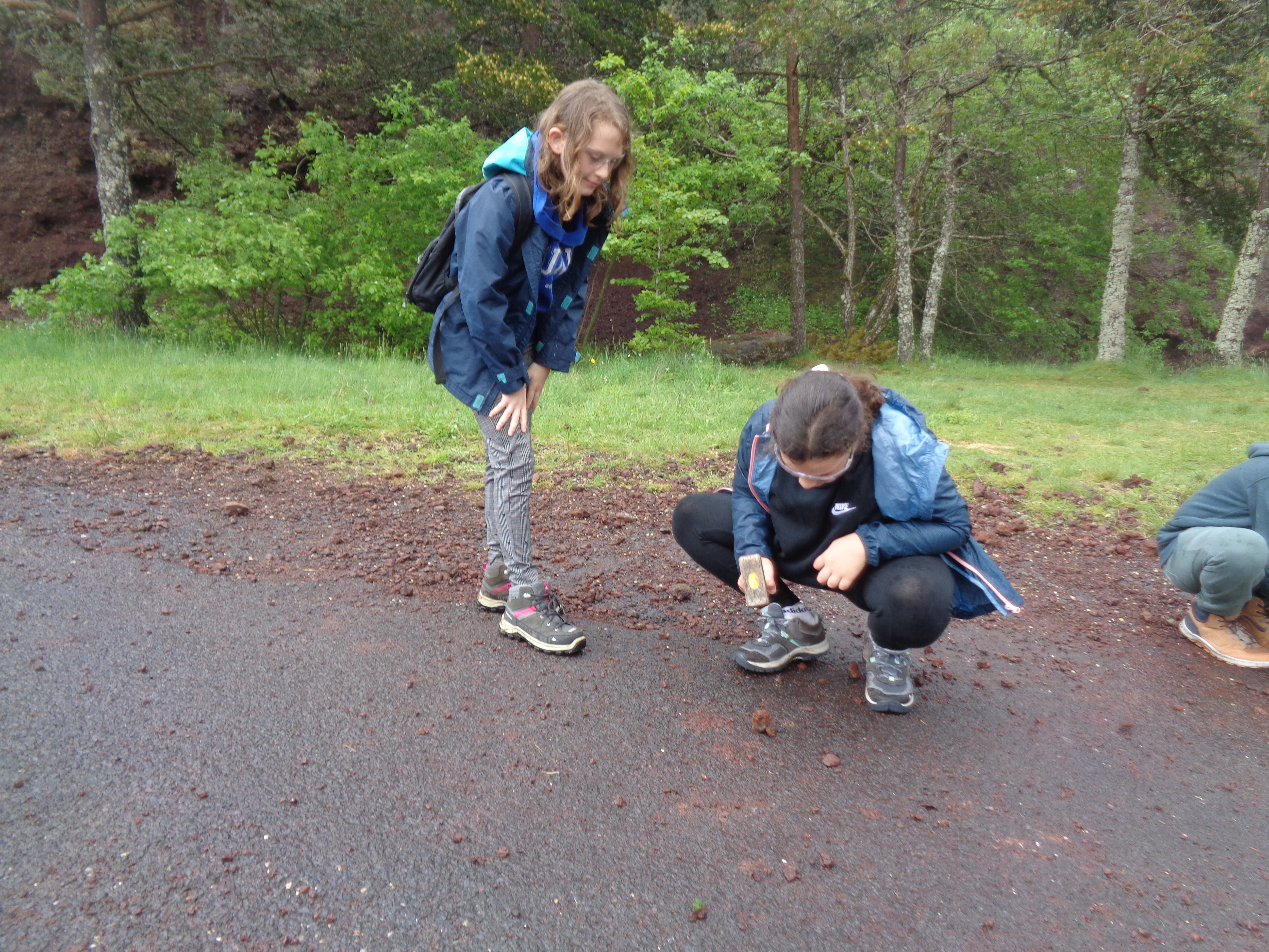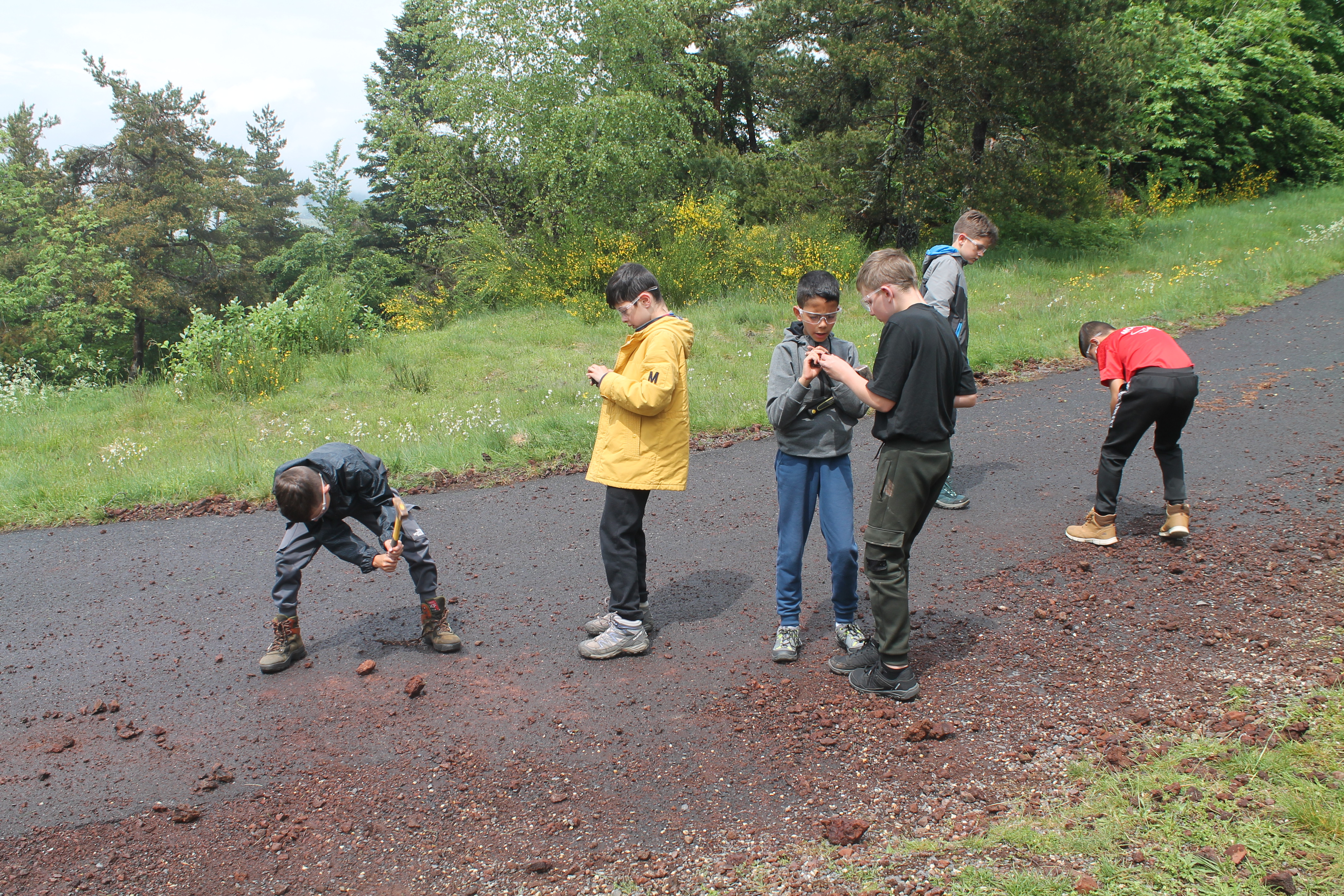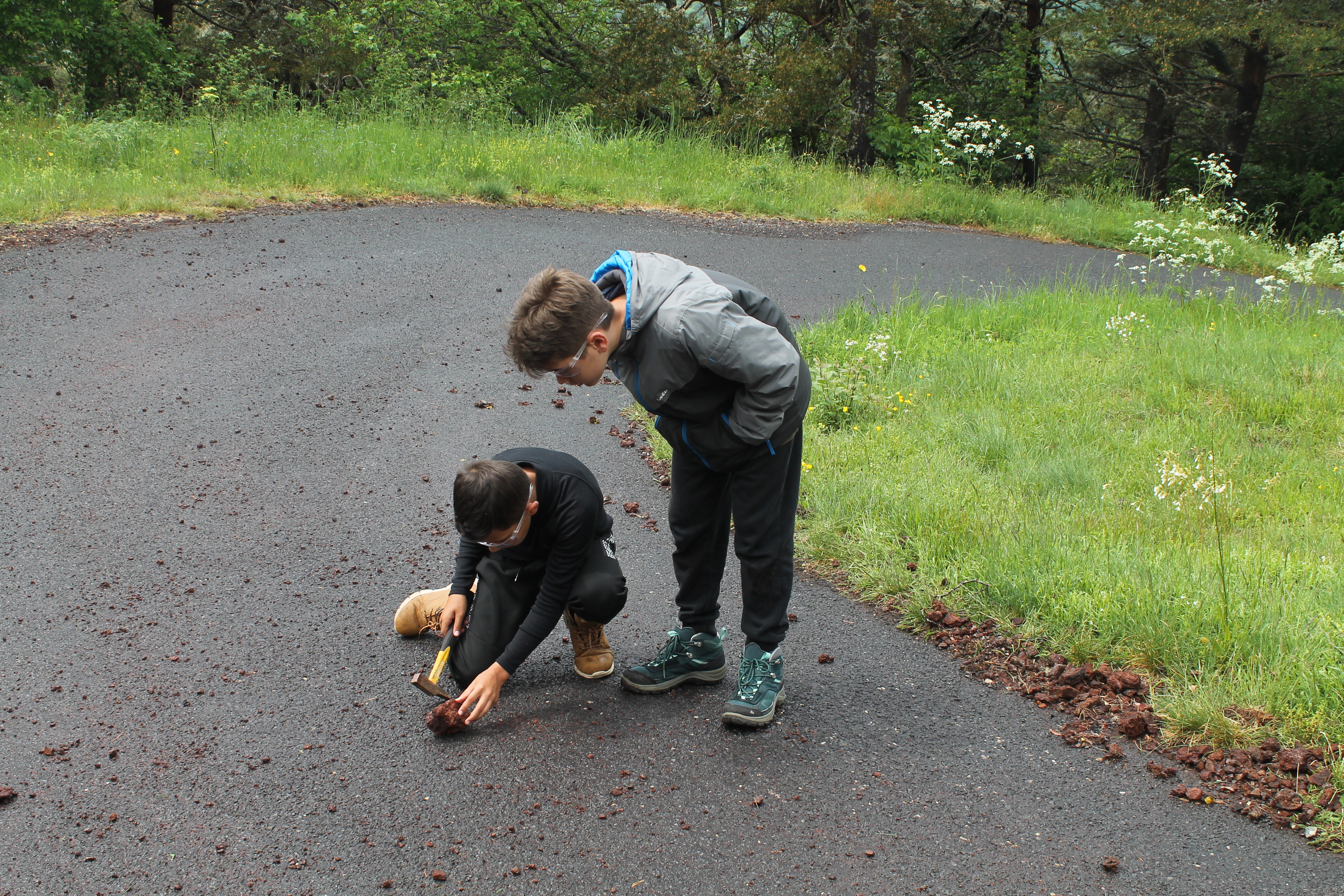 Nous sommes allés grimper au sommet du coté Haute-Loire (le plus petit). Jeudi après midi nous avons admiré les orgues basaltiques dans le sud de Cherchemuse puis nous sommes allés casser des cailloux (les roches qui étaient en fusion lors d’une éruption).