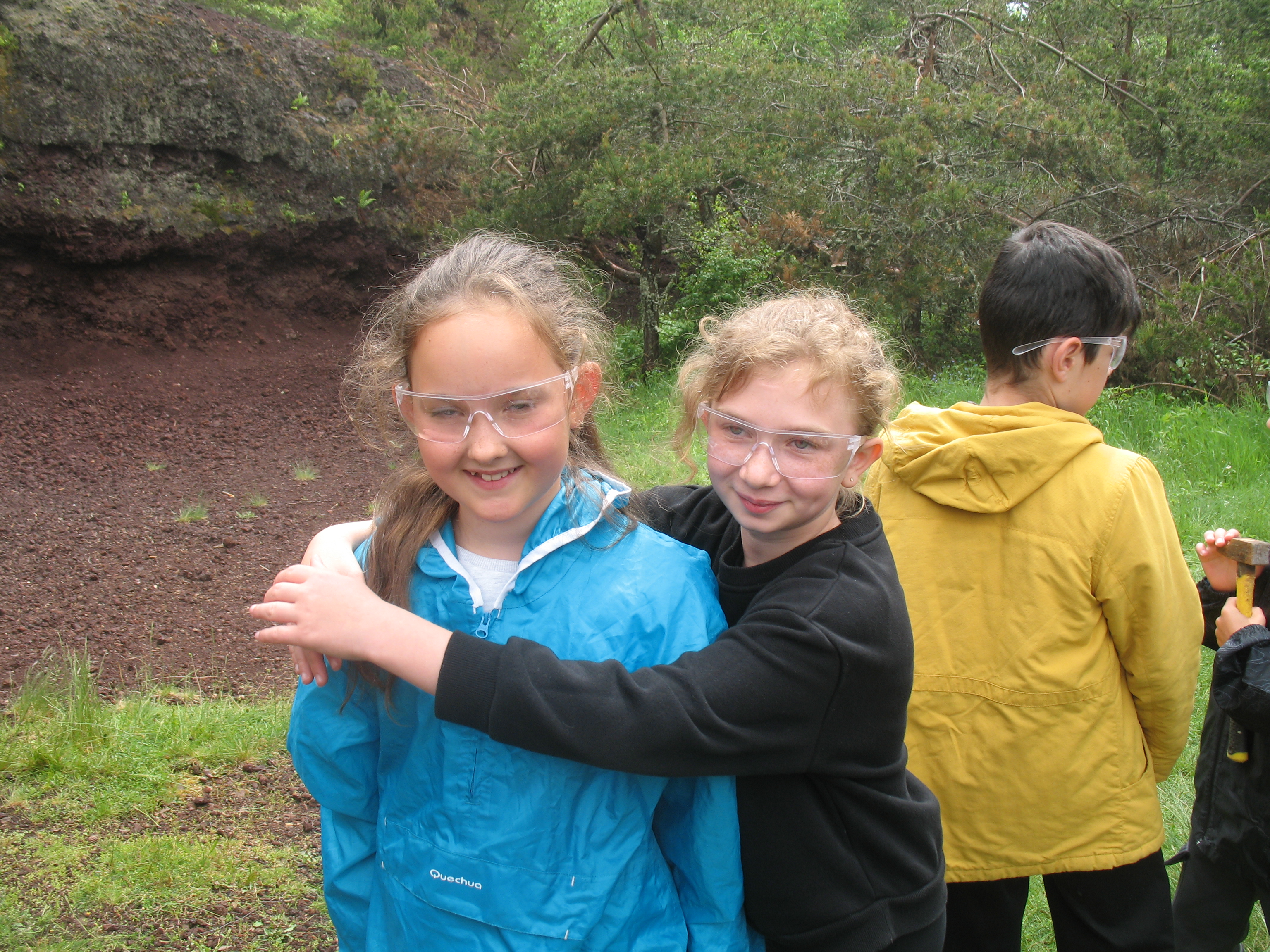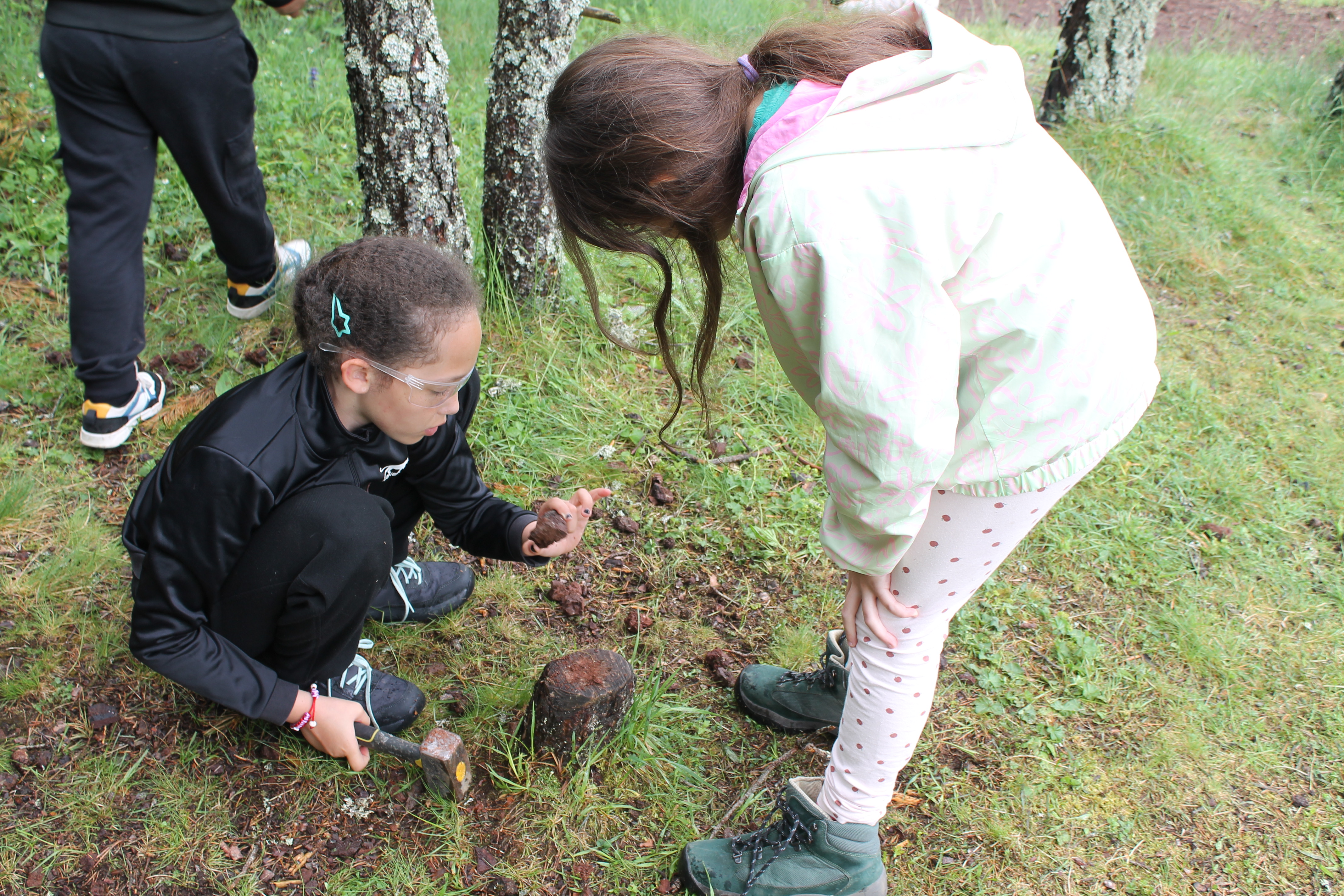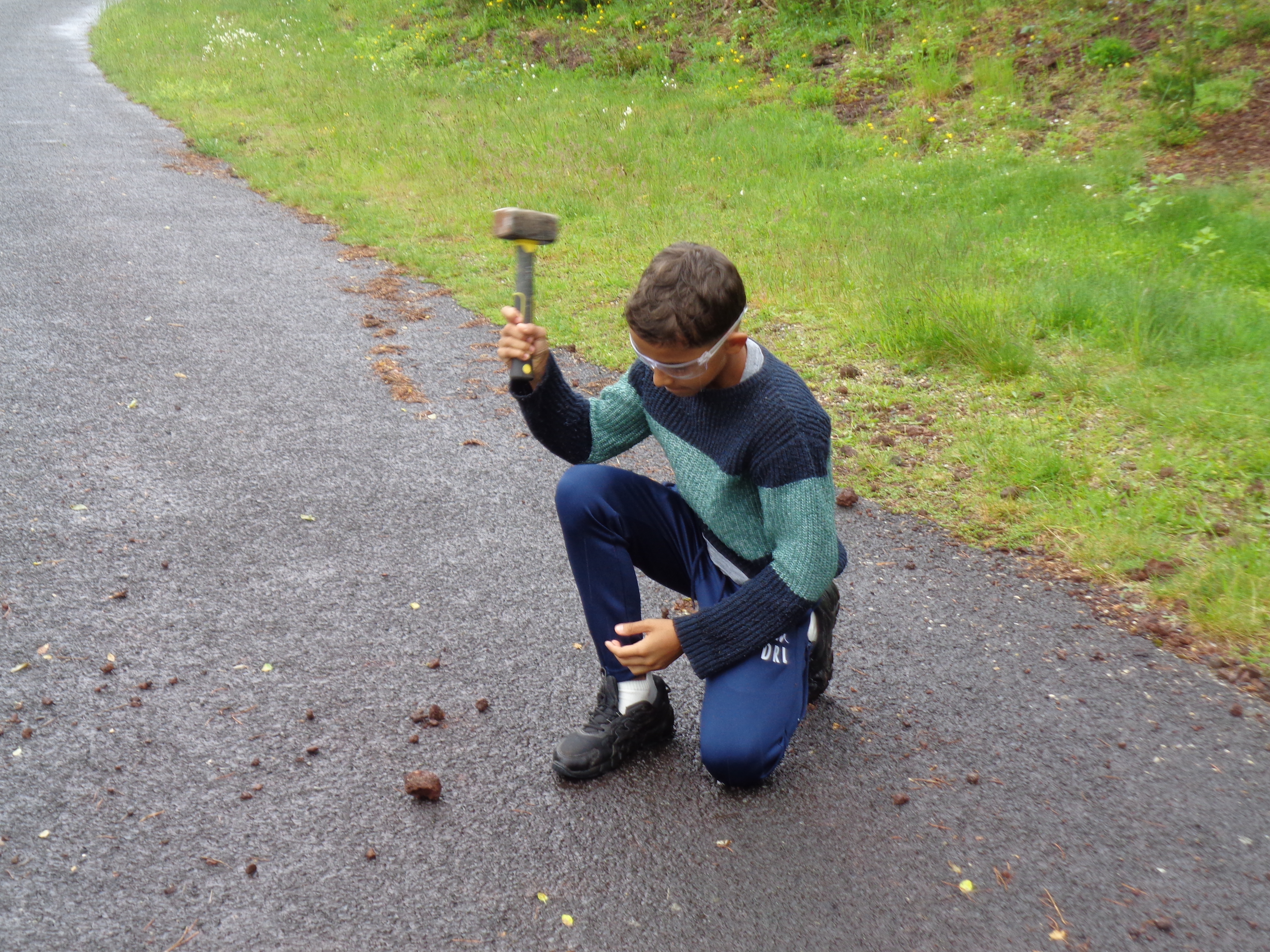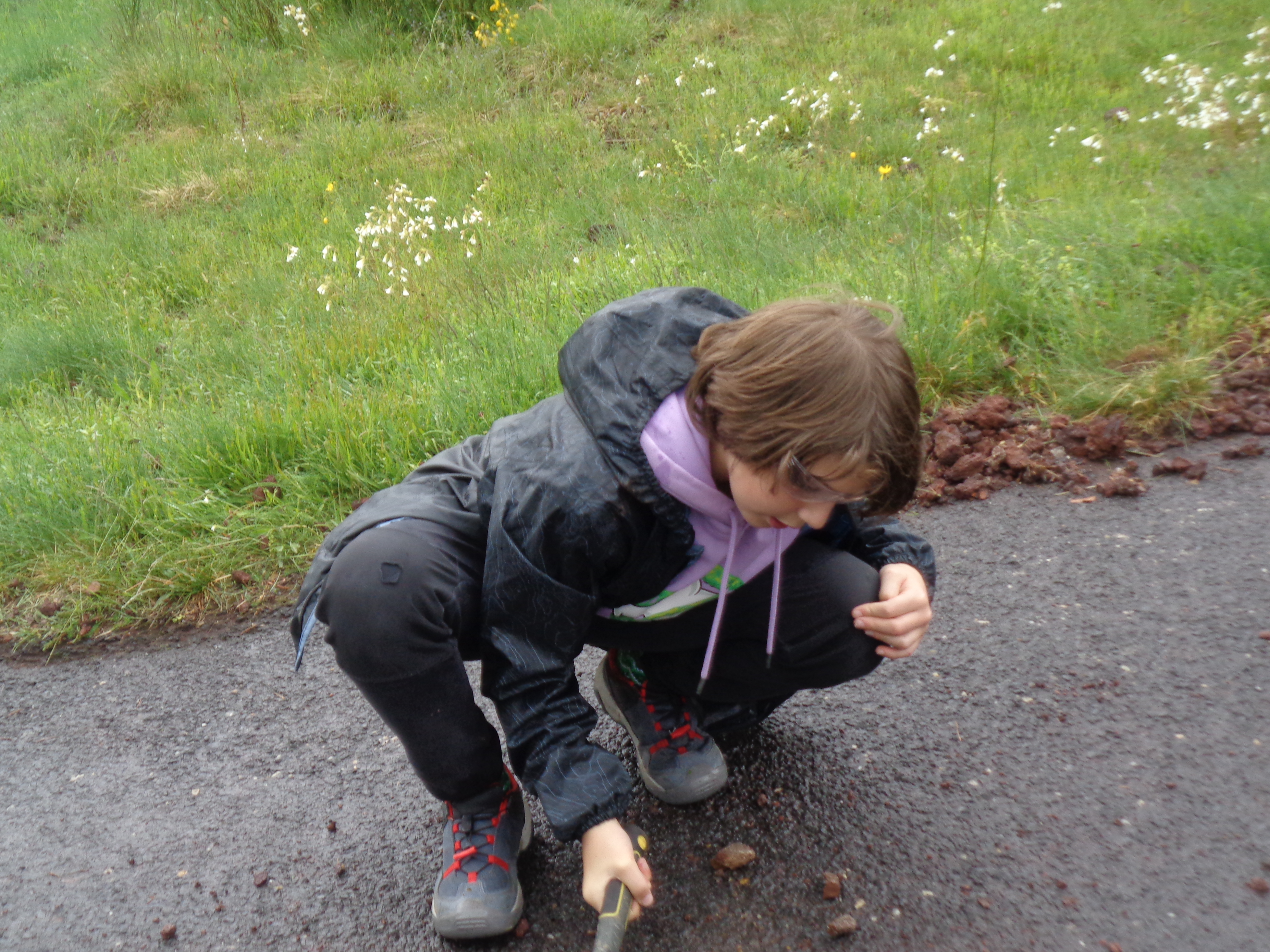 Nous sommes allés grimper au sommet du coté Haute-Loire (le plus petit). Jeudi après midi nous avons admiré les orgues basaltiques dans le sud de Cherchemuse puis nous sommes allés casser des cailloux (les roches qui étaient en fusion lors d’une éruption).