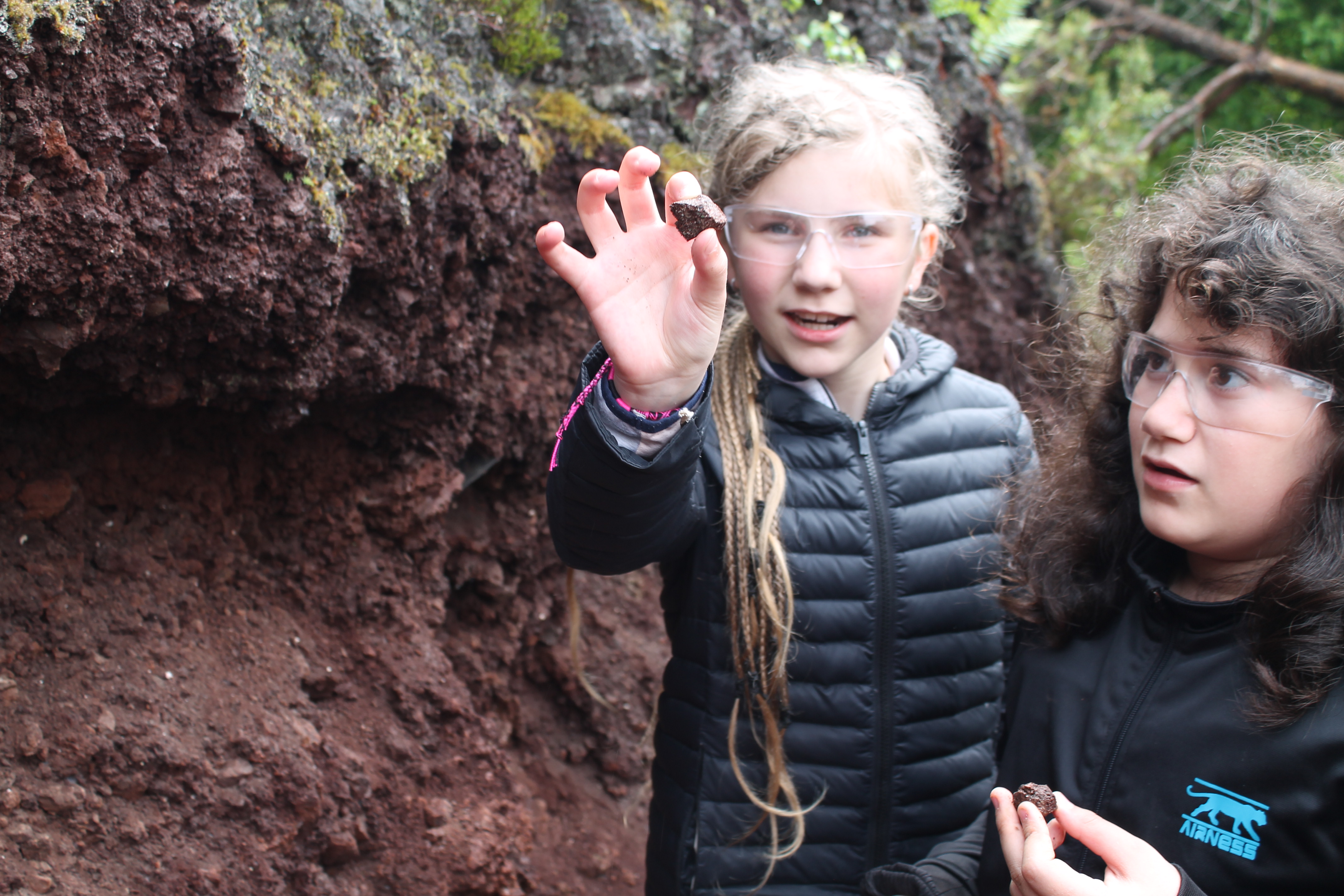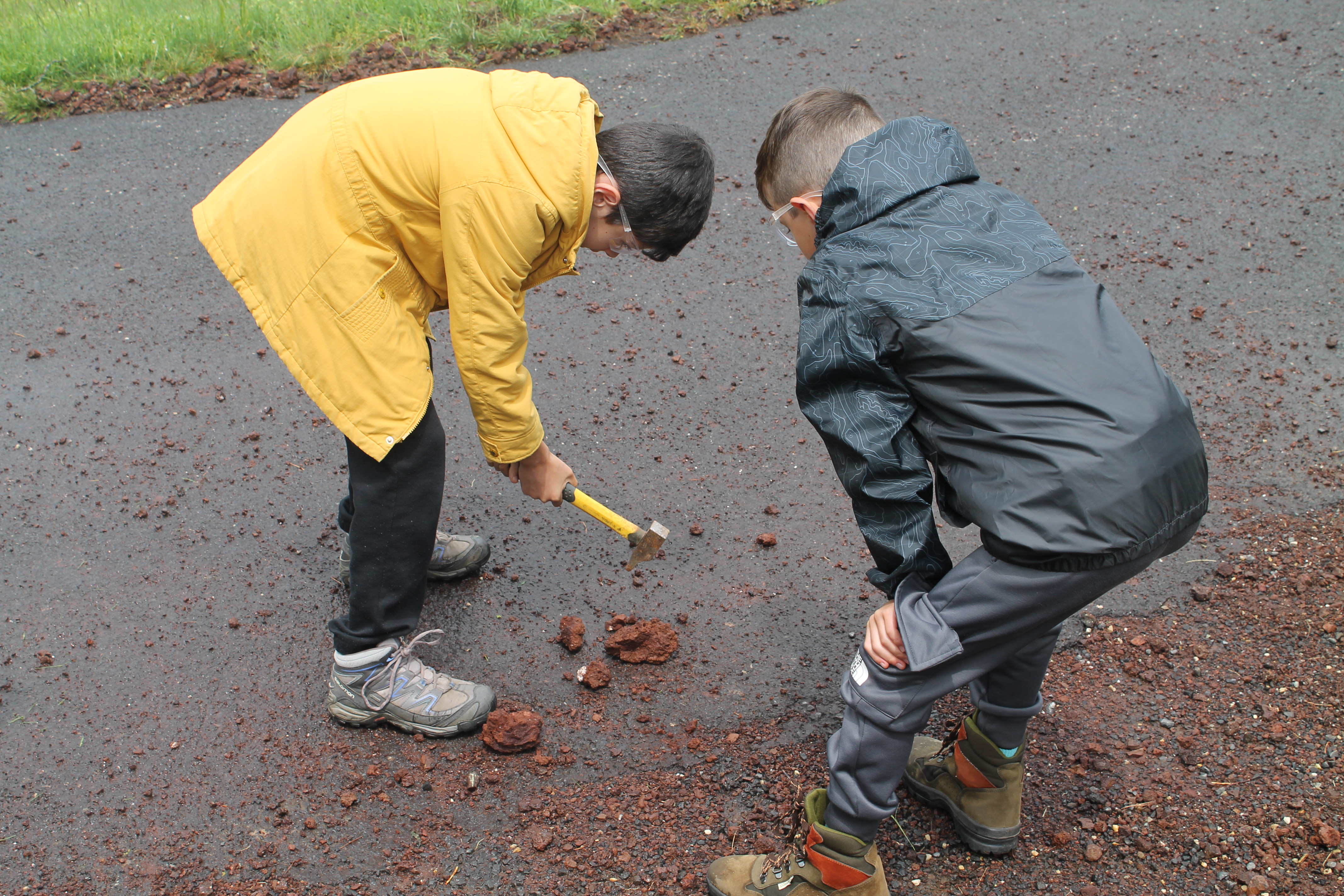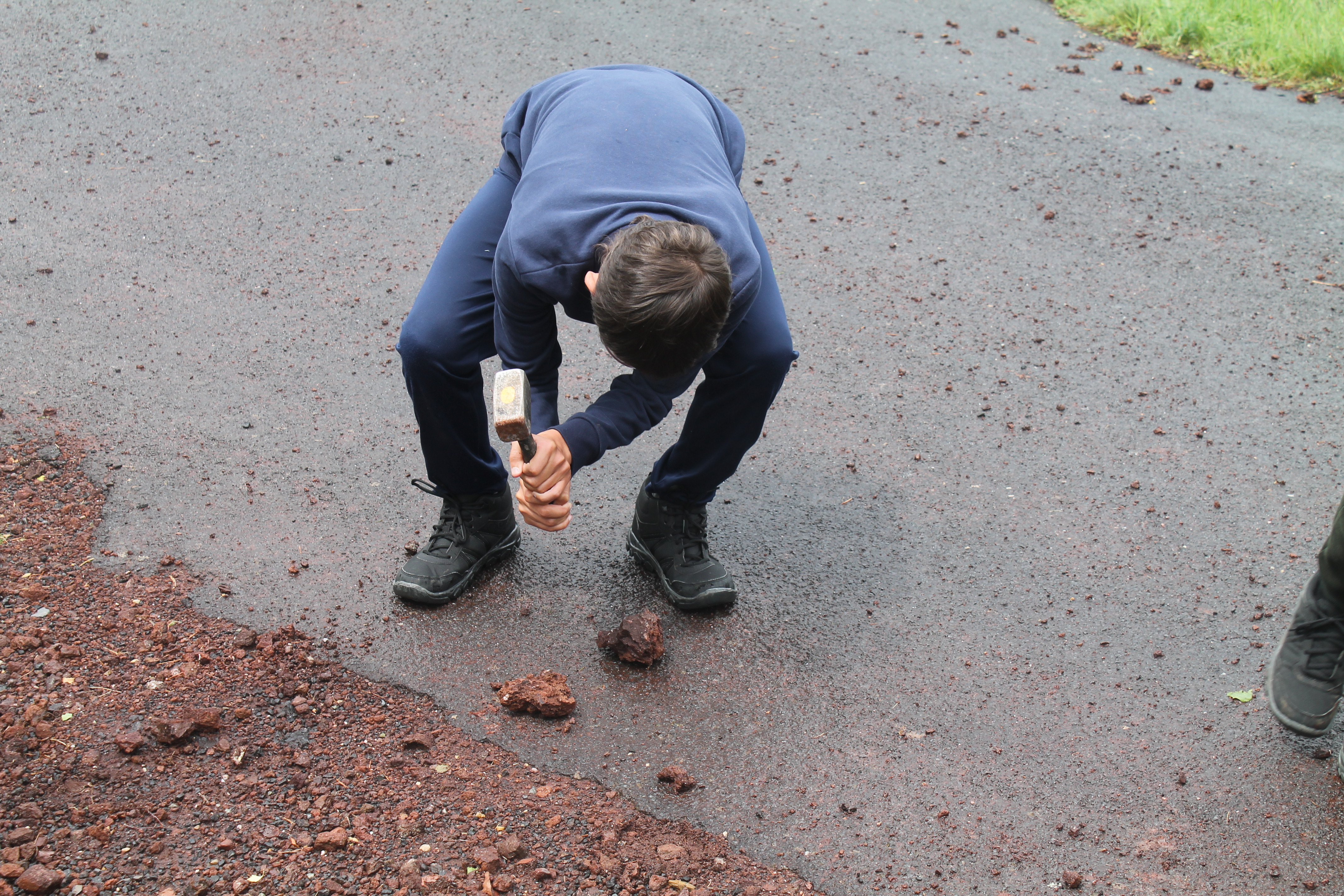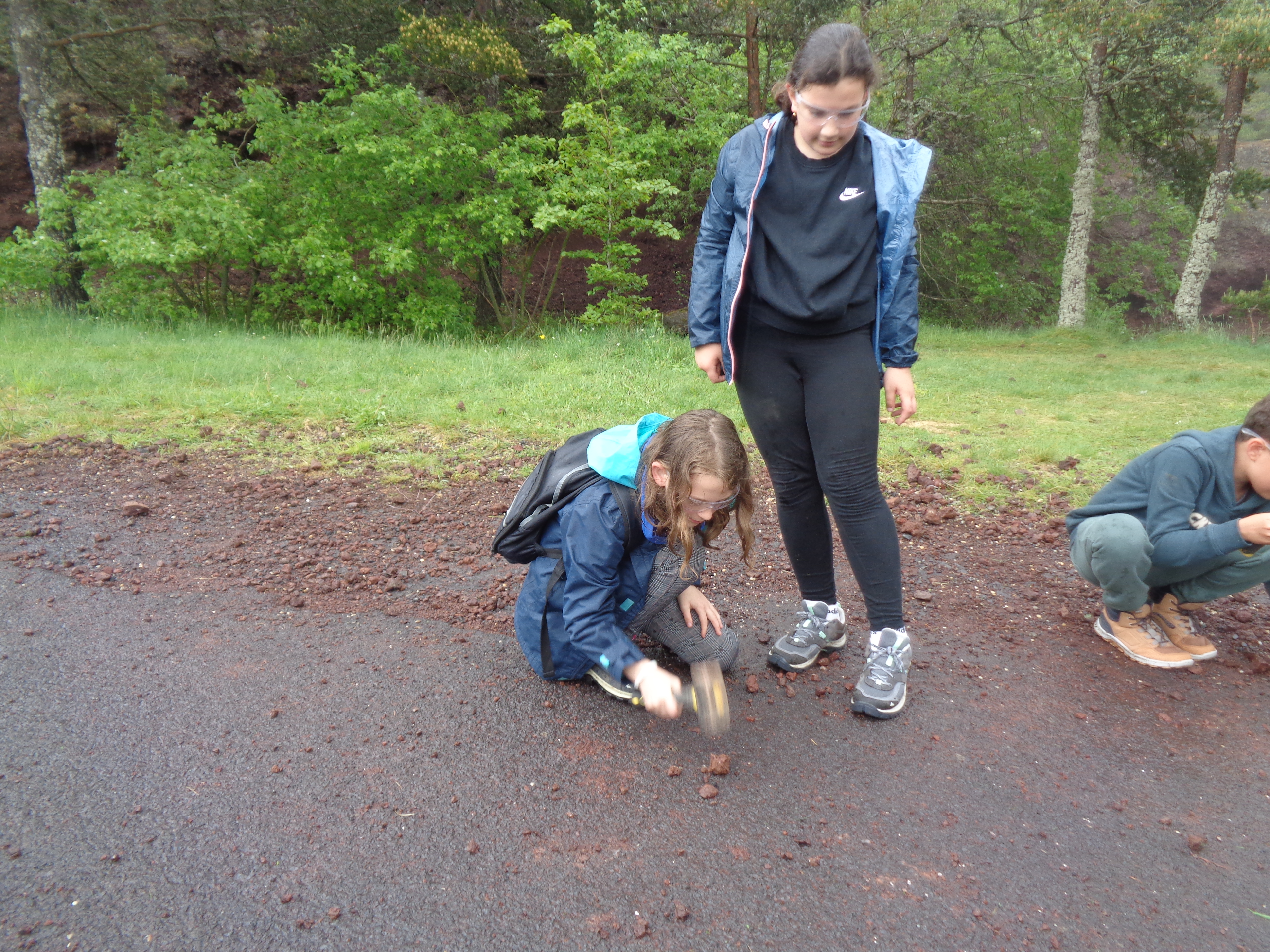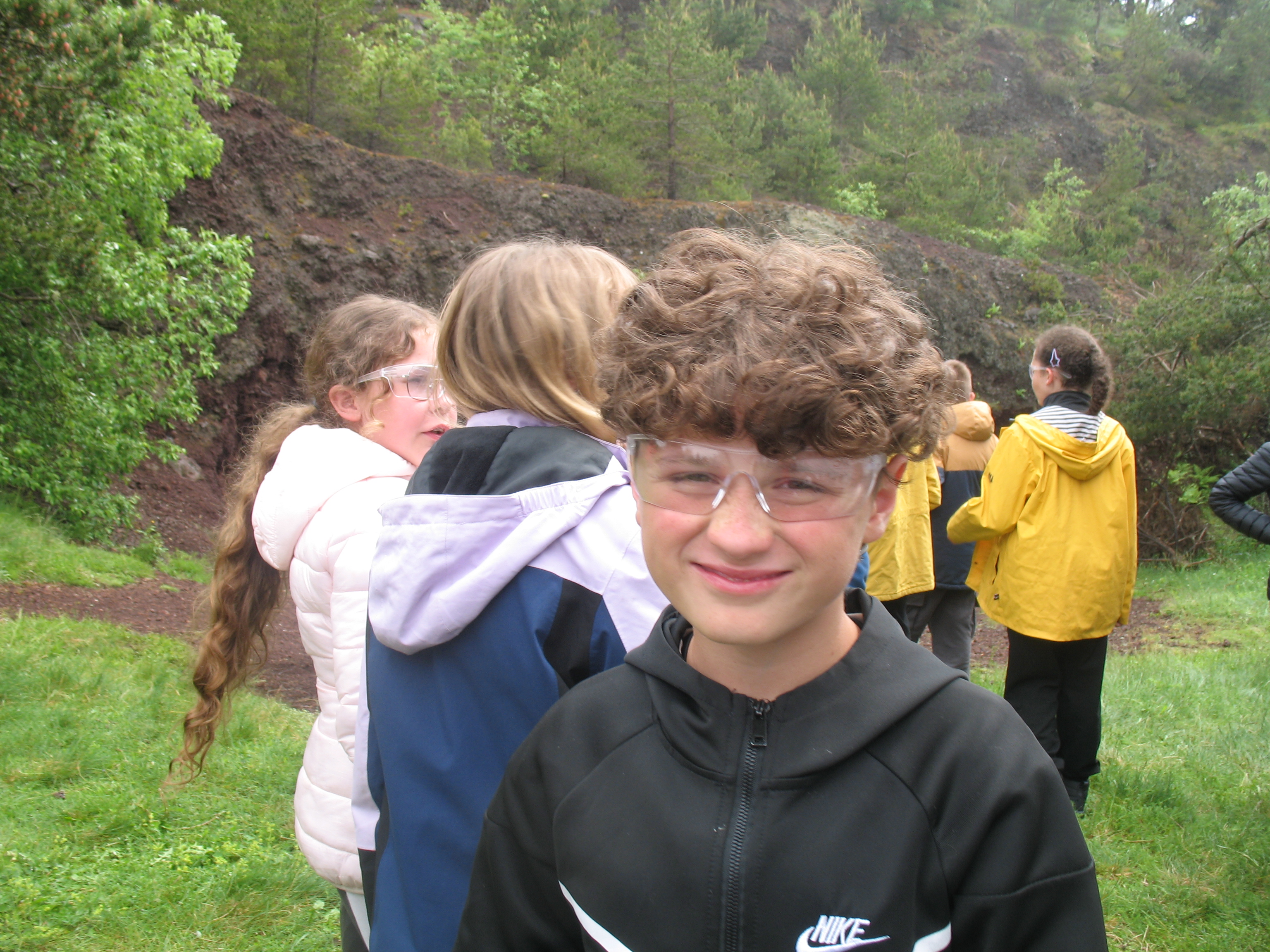 Nous sommes allés grimper au sommet du coté Haute-Loire (le plus petit). Jeudi après midi nous avons admiré les orgues basaltiques dans le sud de Cherchemuse puis nous sommes allés casser des cailloux (les roches qui étaient en fusion lors d’une éruption).