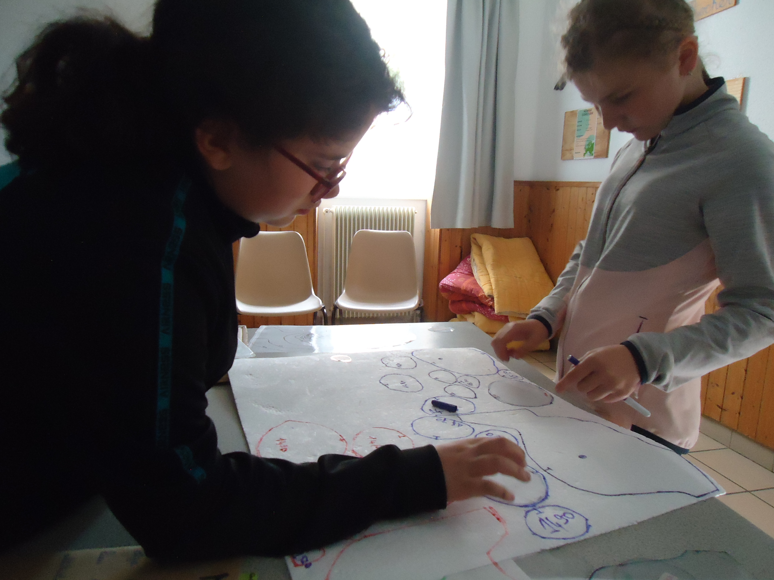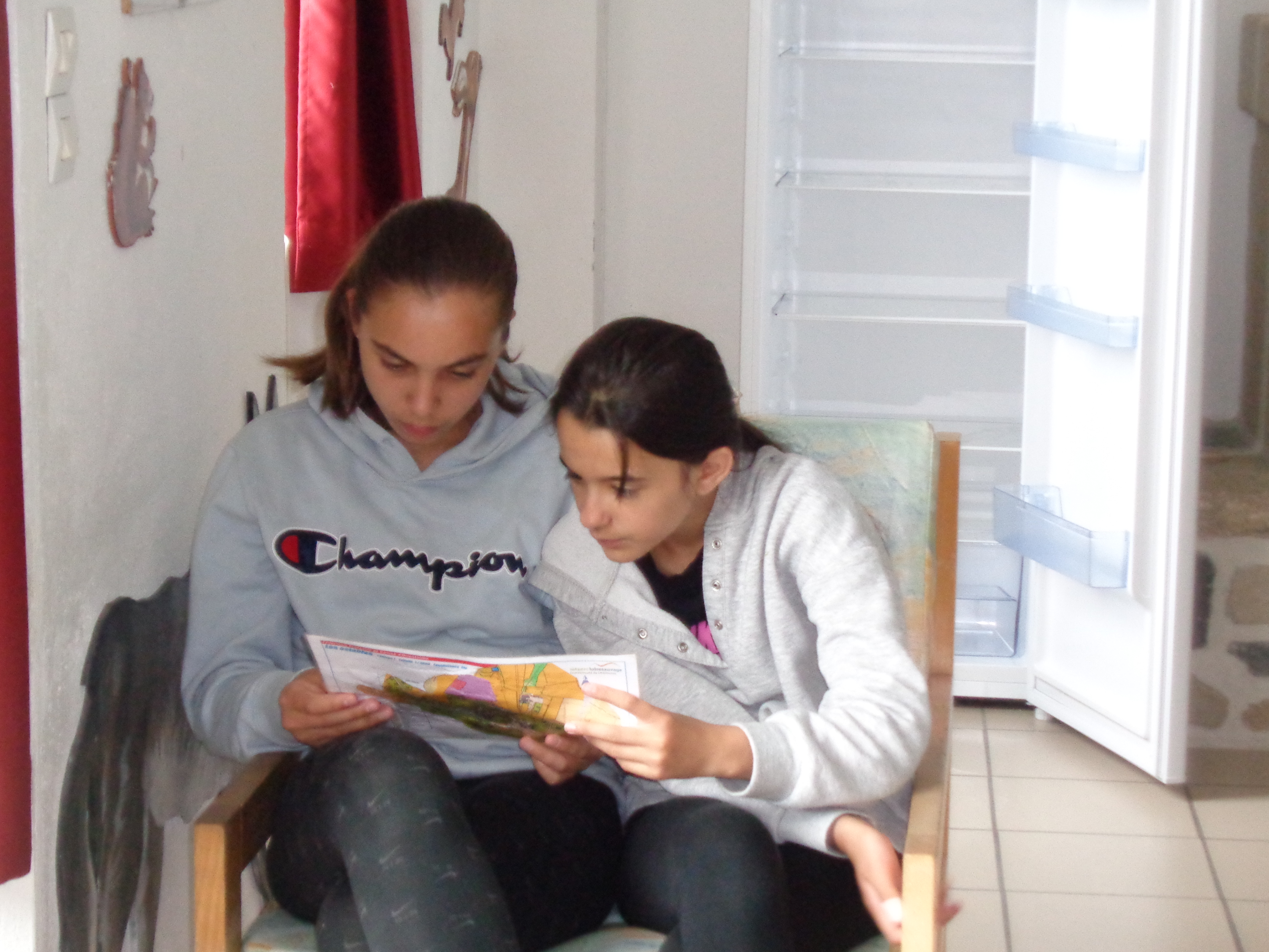 3- Avec Romane nous avons gagné les deux courses d’orientation !!! La première tout le monde a eu sept balises et nous neuf. La deuxième course d’orientation c’était sur une feuille et on a répondu à toutes les questions !!!