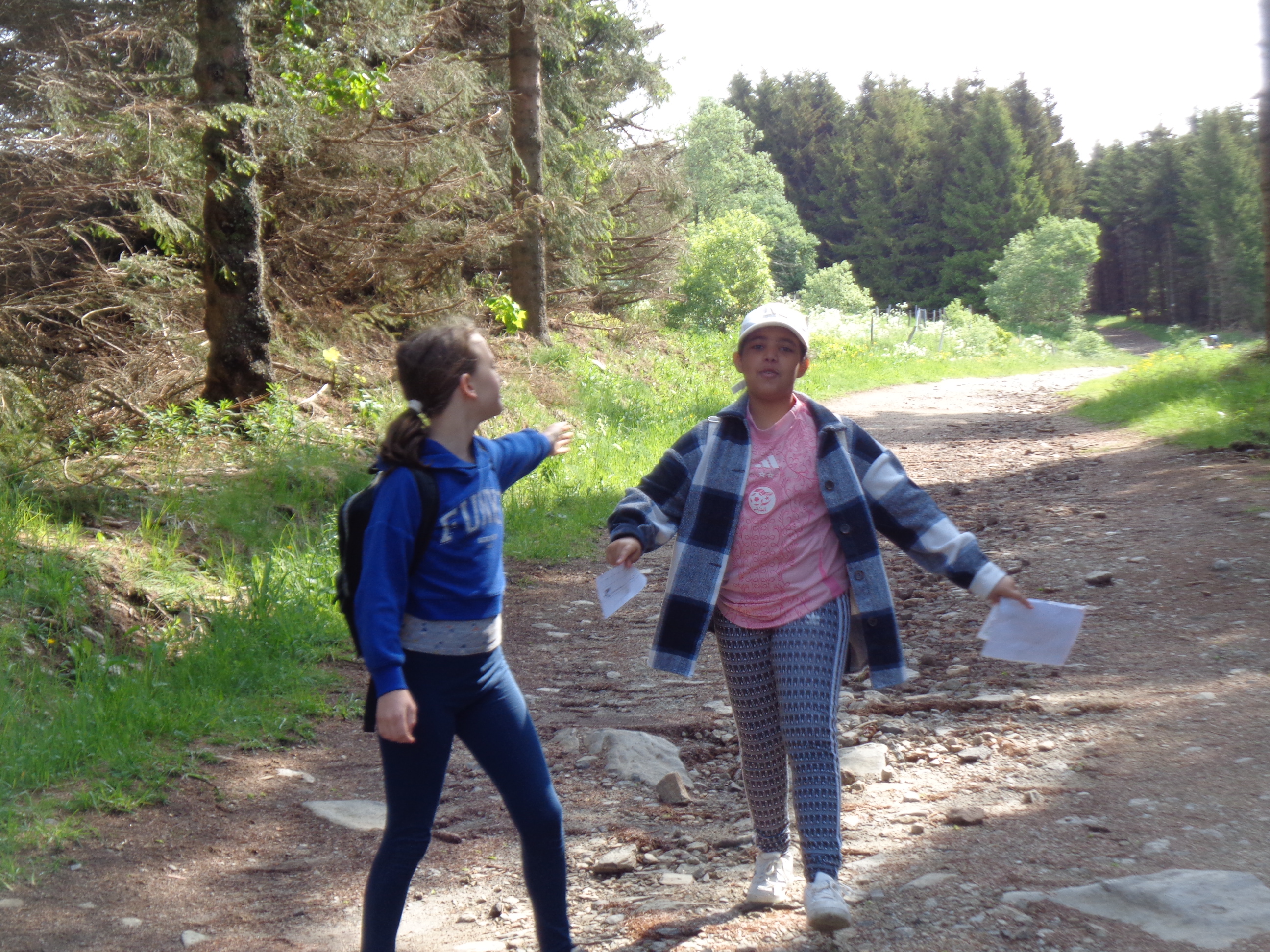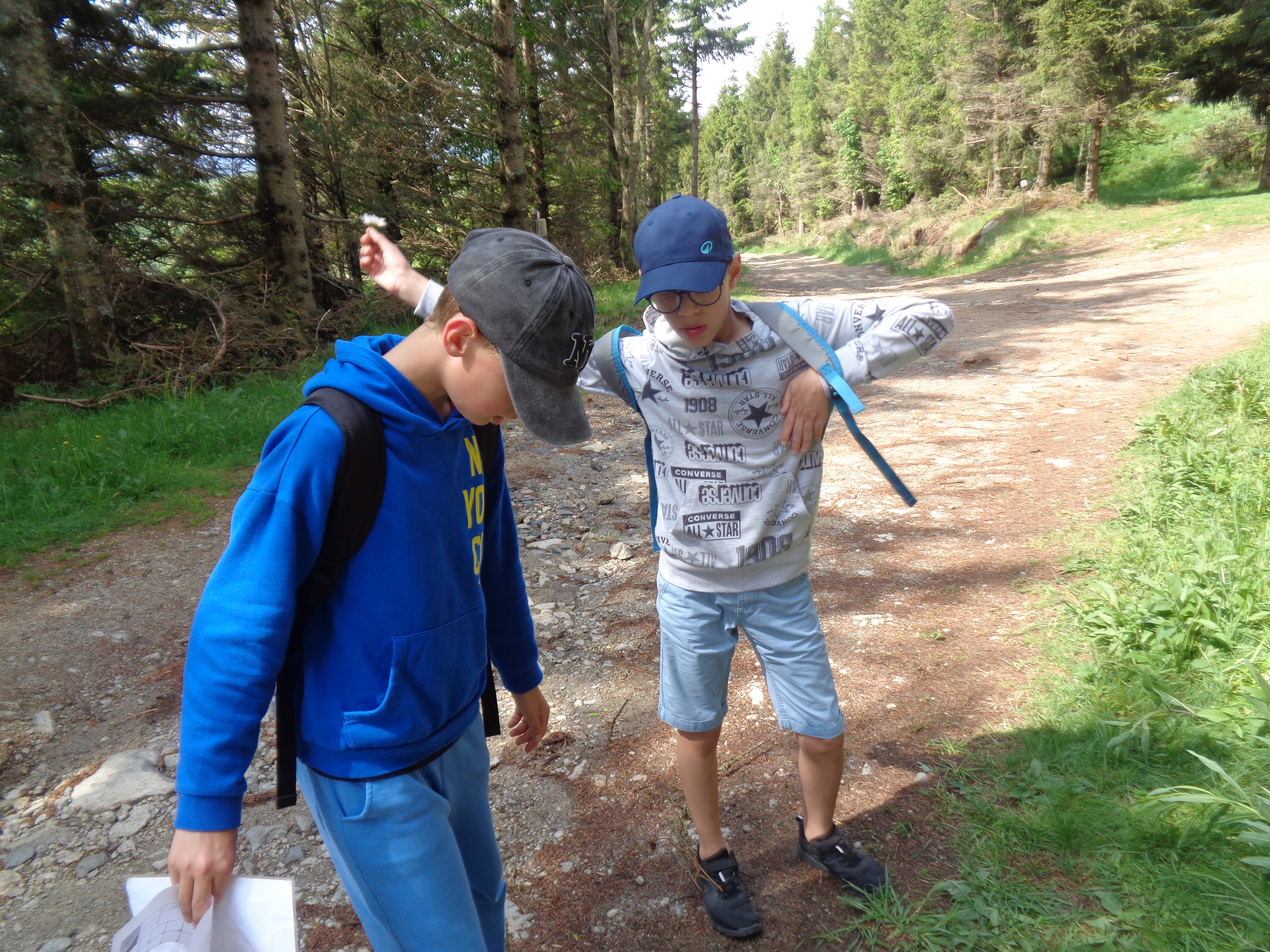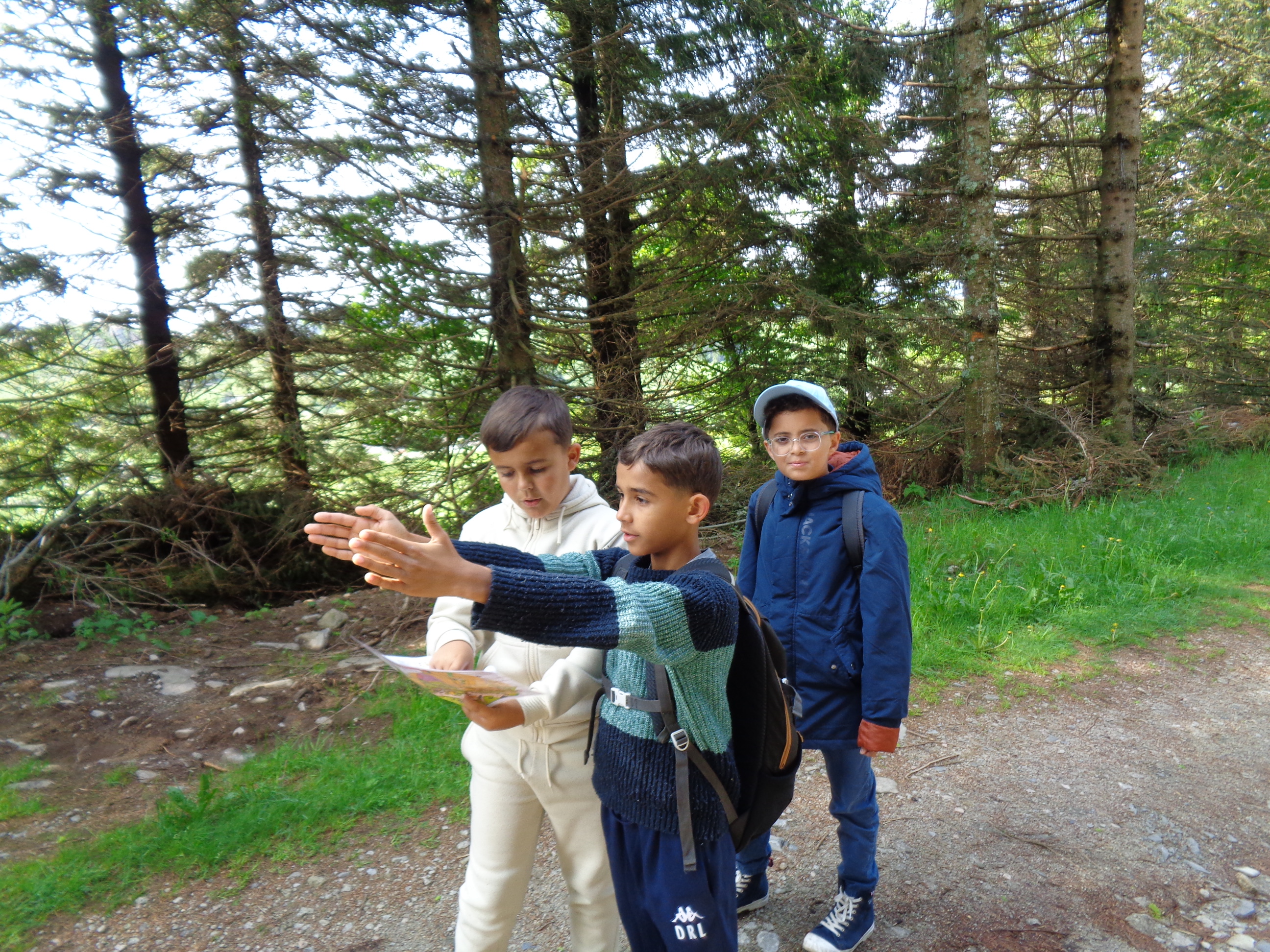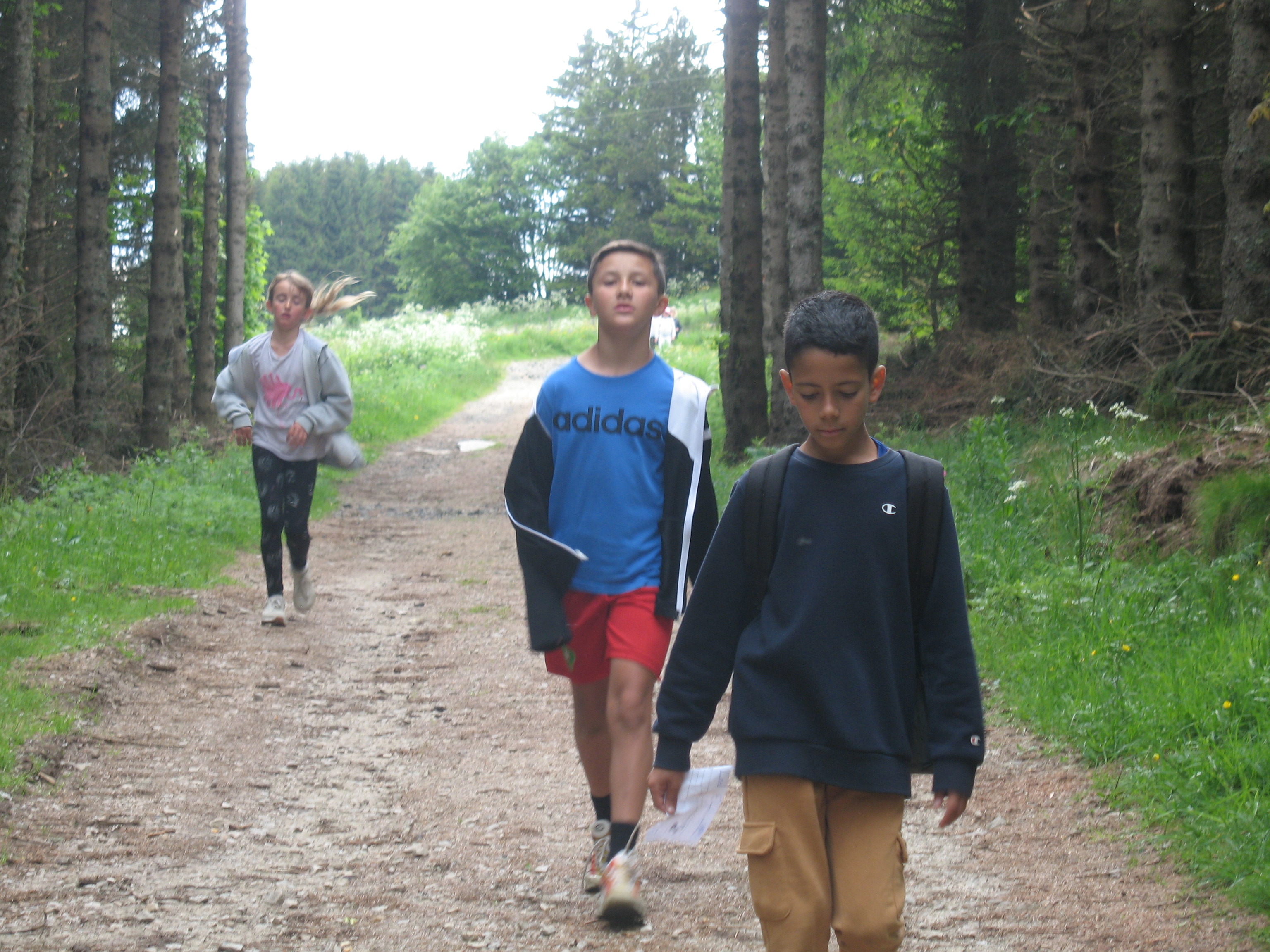 Vendredi matin, (le dernier jour) nous avons fait un grand jeu de piste. Le but, c’était de suivre le bon chemin le plus rapidement. Sur le chemin, il y avait des balises et des questions auxquelles on a eu, quelque jour plus tôt, la réponse. L’équipe gagnante était celle qui avait fait le moins d’erreurs, si deux équipes étaient à égalité, on regardait alors le temps. Dans mon équipe il y avait : Manon, Luis, Arthur, Timéo et Kimia. Finalement, nous avons gagné. La course d’orientation, c’était mon activité préférée du séjour.