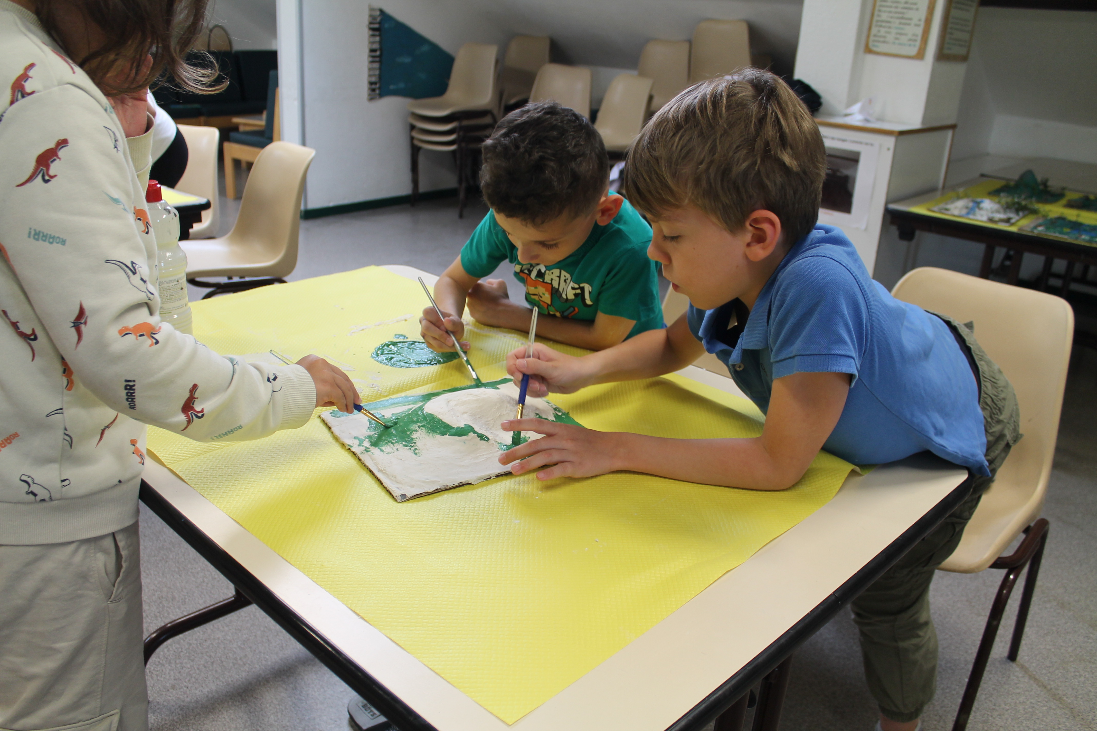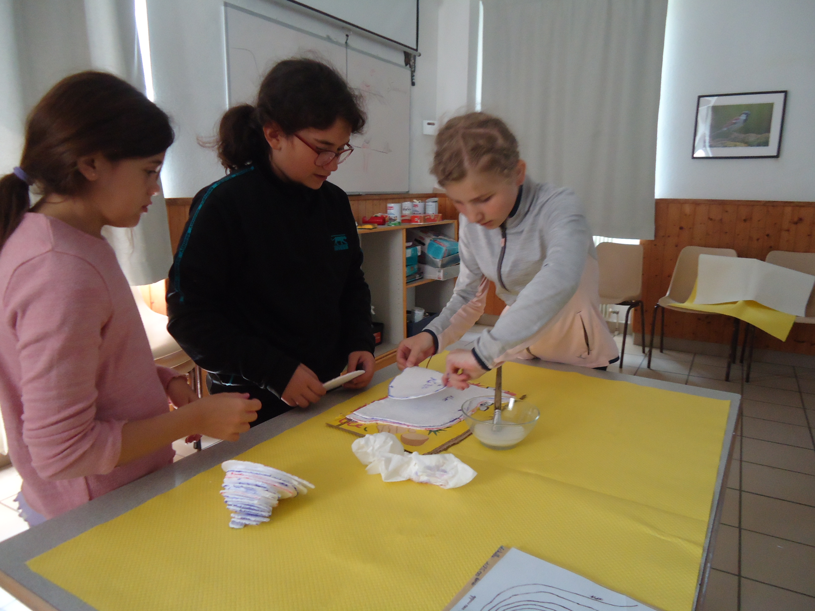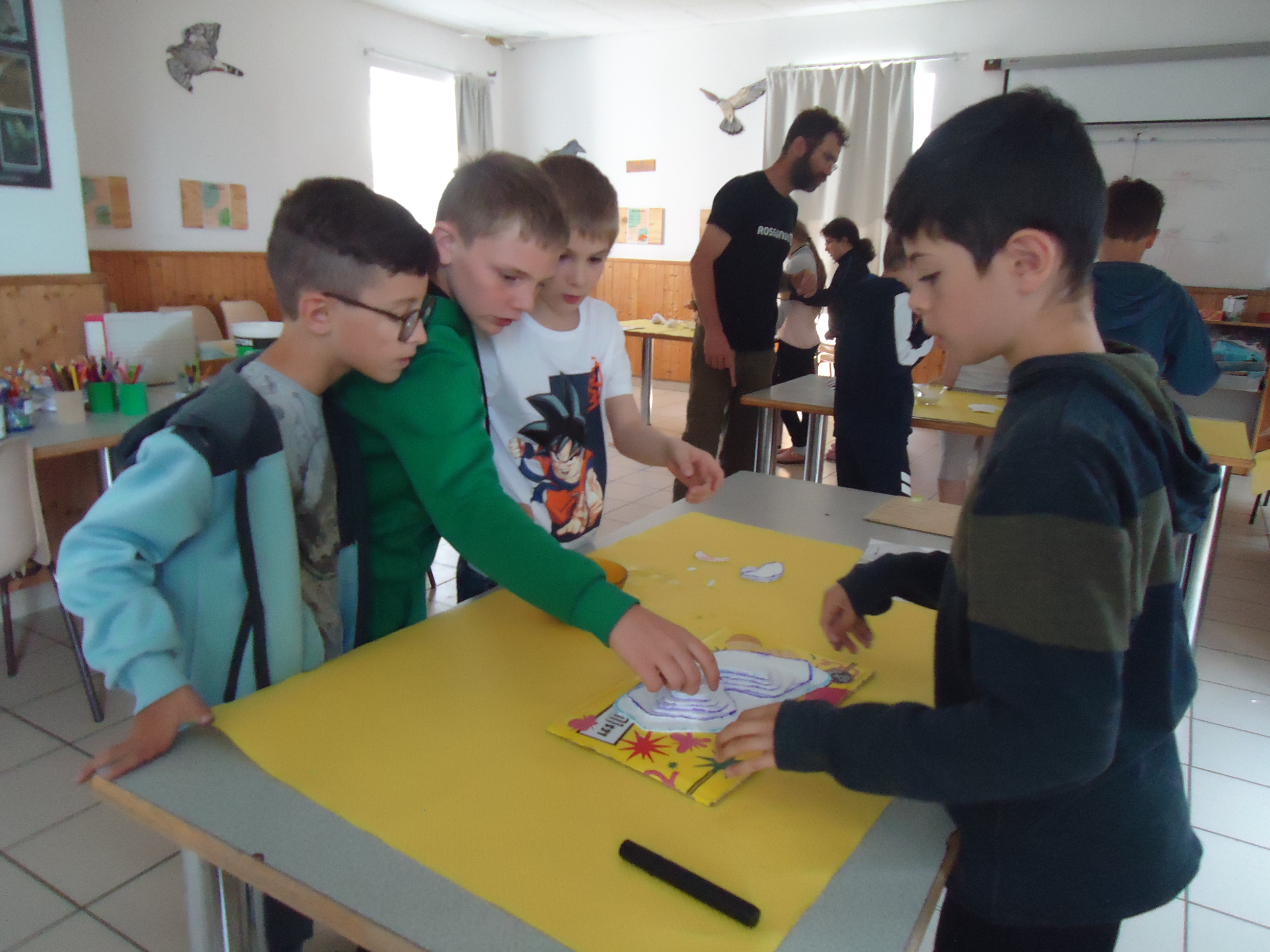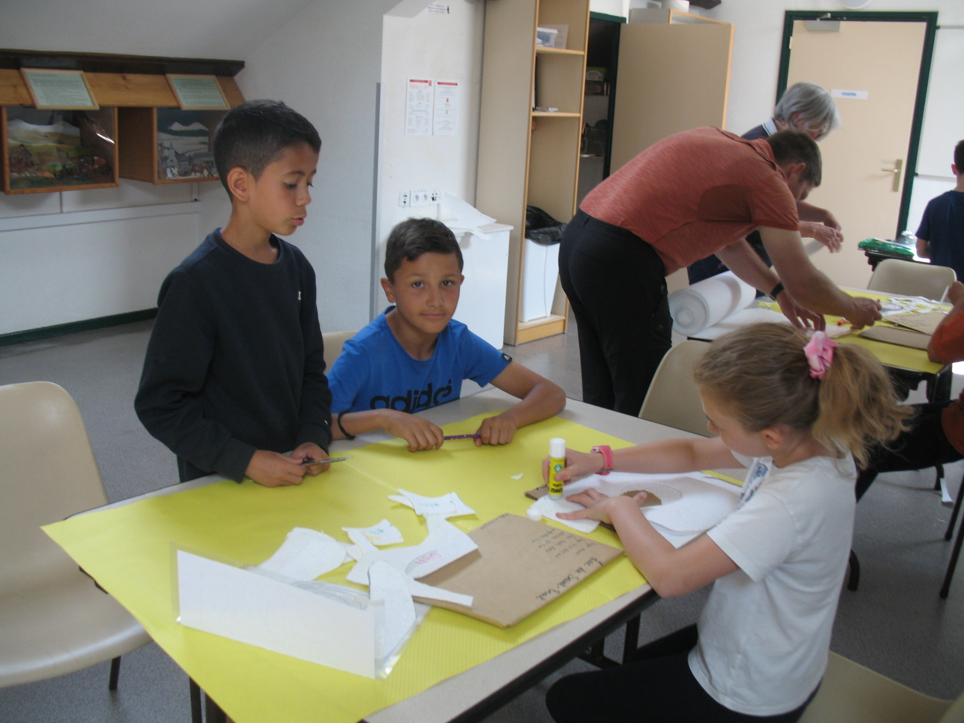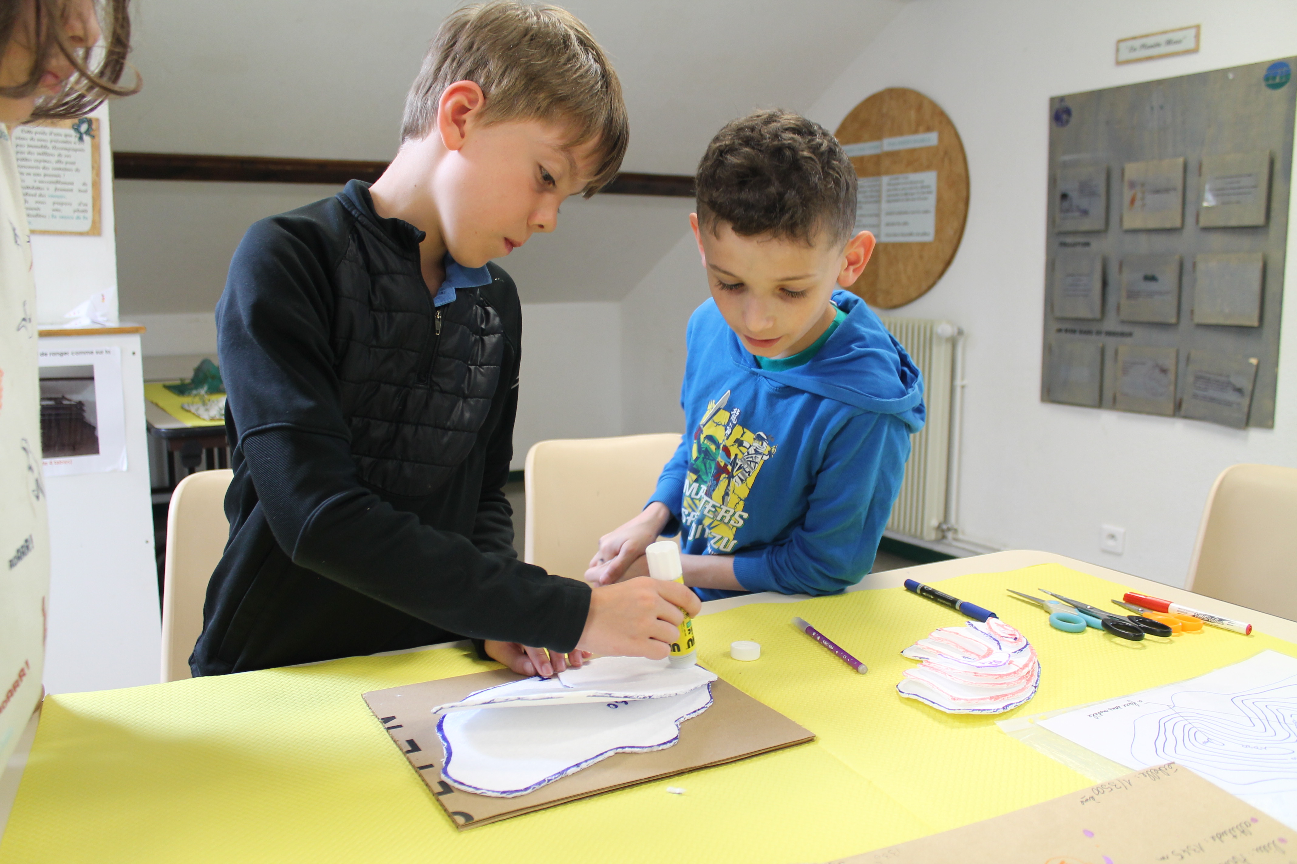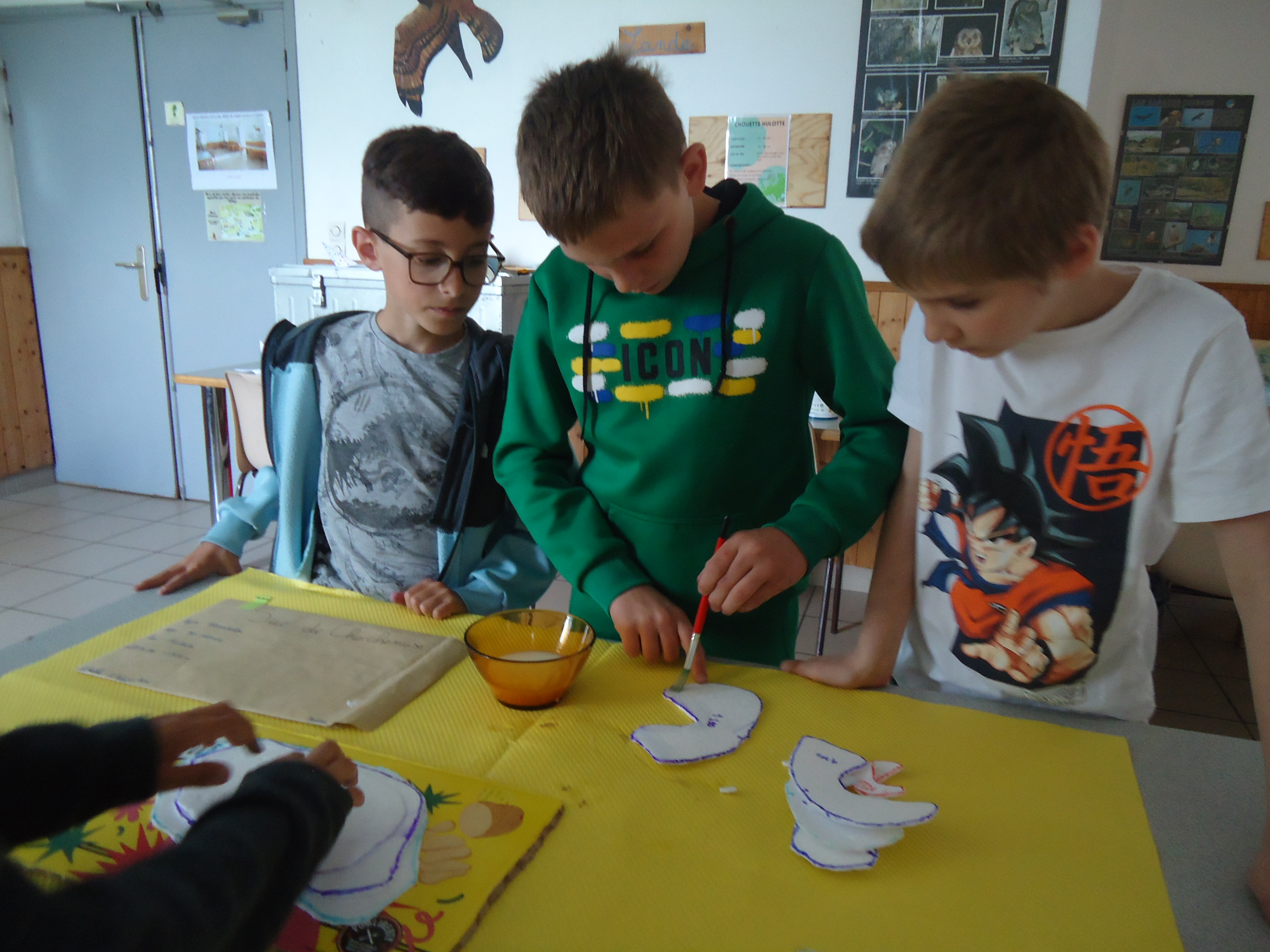 Aujourd’hui nous avons fait des maquettes sur les volcans. Nous, on a fait le Mont mézenc. On a sorti des bouts de plastique de l’enveloppe. Stan nous a donné du polystyrène ensuite nous avons découpé. Il nous a donné un carton, on a collé les morceaux de polystyrène qui formait le Mont Mézenc. Ensuite il a mis le plâtre et on l’a étalé, on a attendu qu’il sèche.