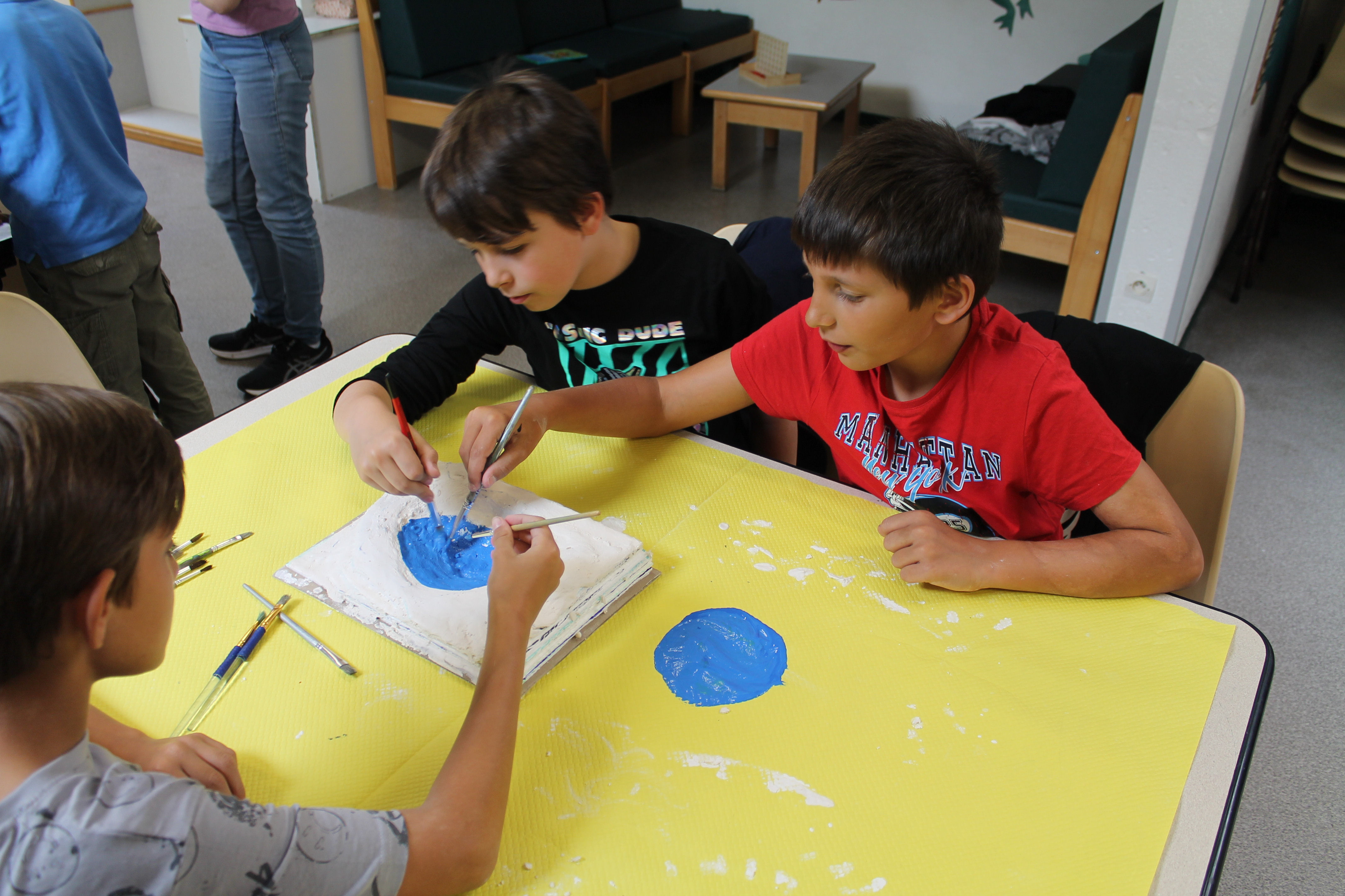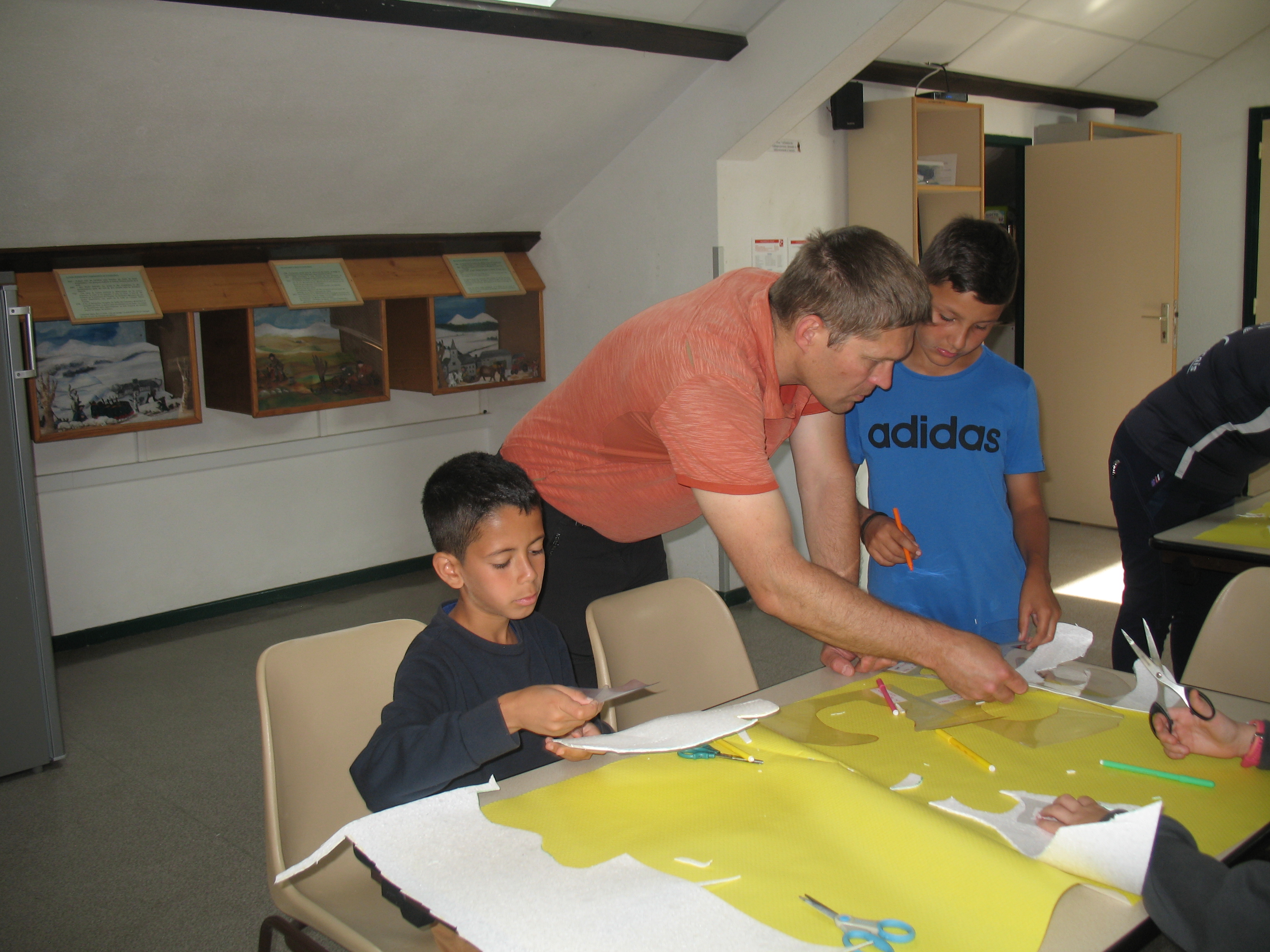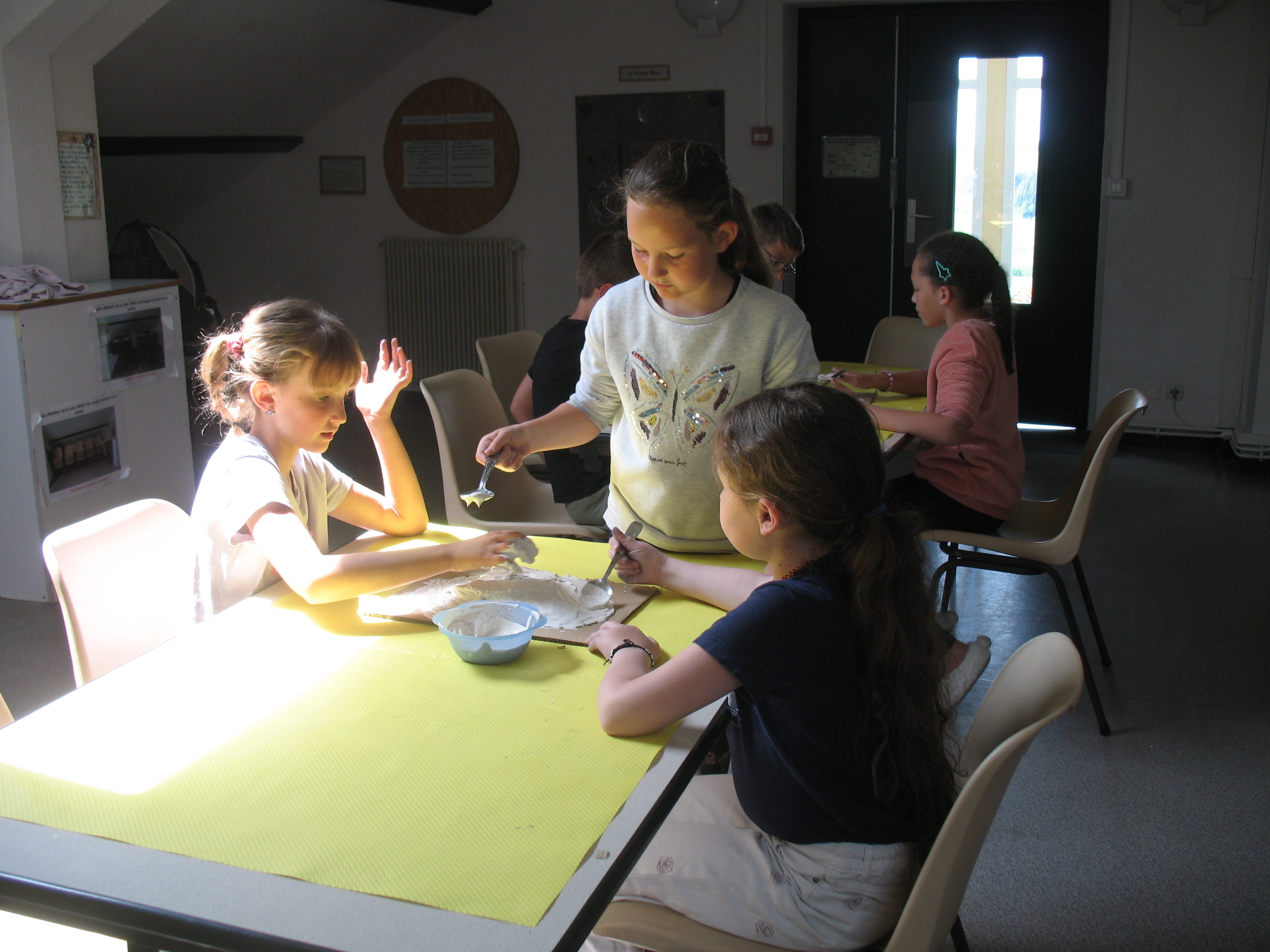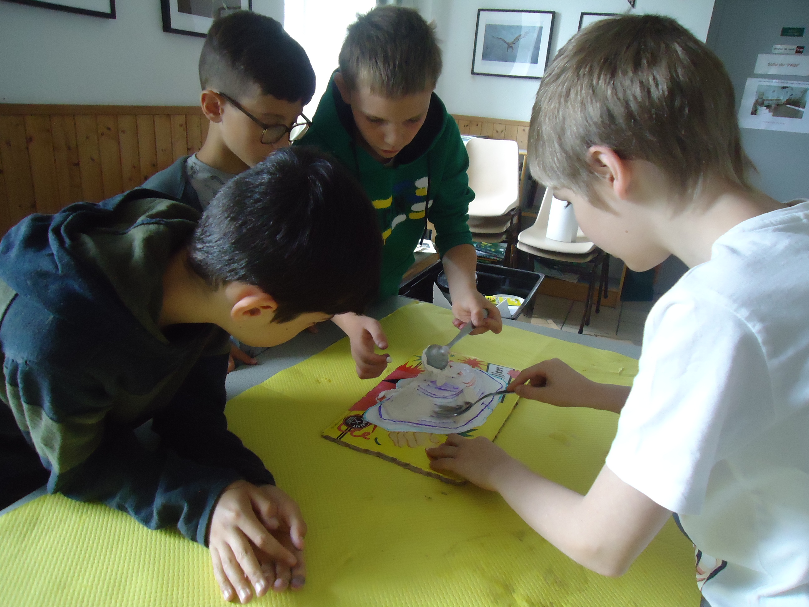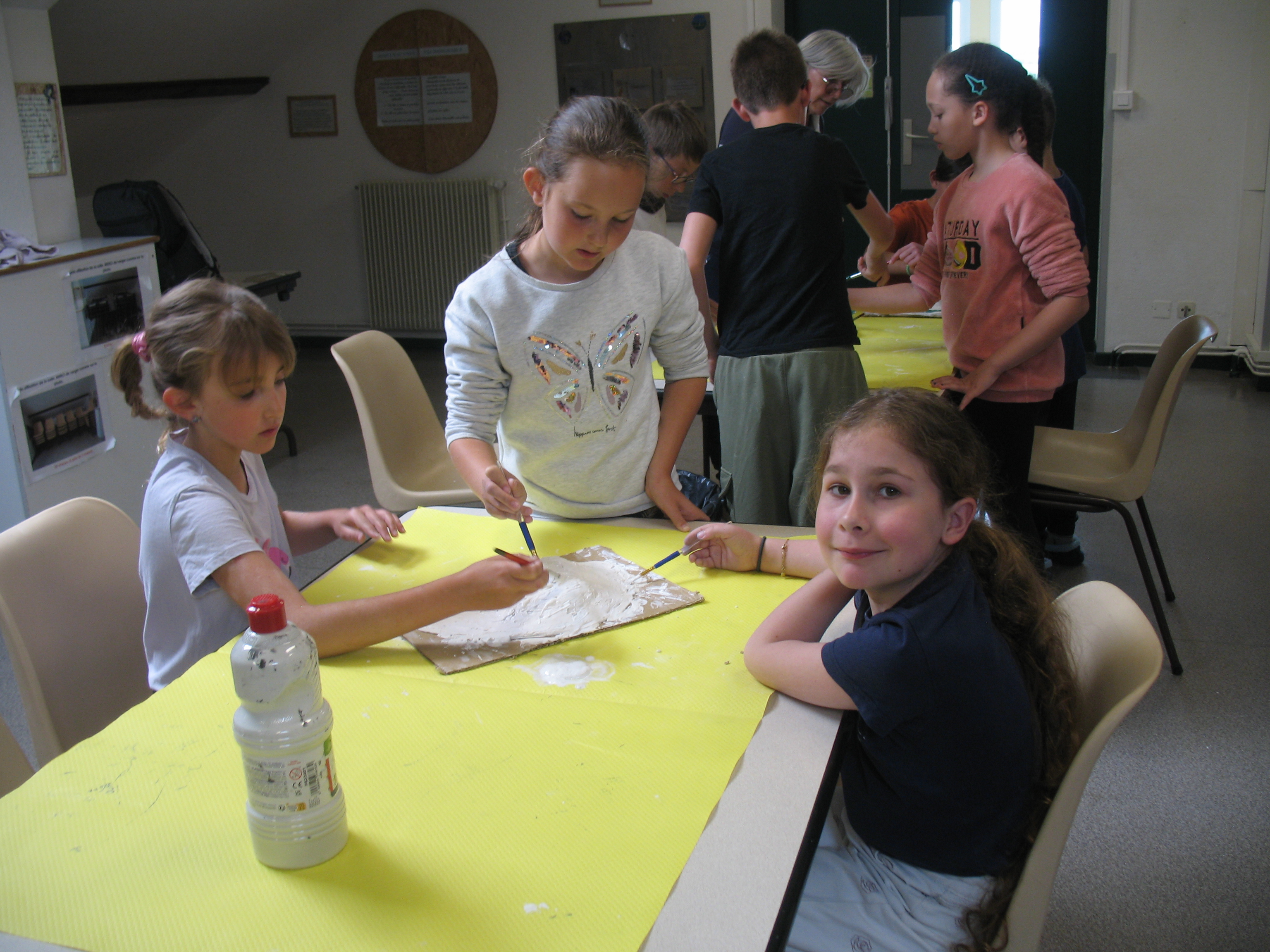 Aujourd’hui nous avons fait des maquettes sur les volcans. Nous, on a fait le Mont mézenc. On a sorti des bouts de plastique de l’enveloppe. Stan nous a donné du polystyrène ensuite nous avons découpé. Il nous a donné un carton, on a collé les morceaux de polystyrène qui formait le Mont Mézenc. Ensuite il a mis le plâtre et on l’a étalé, on a attendu qu’il sèche.