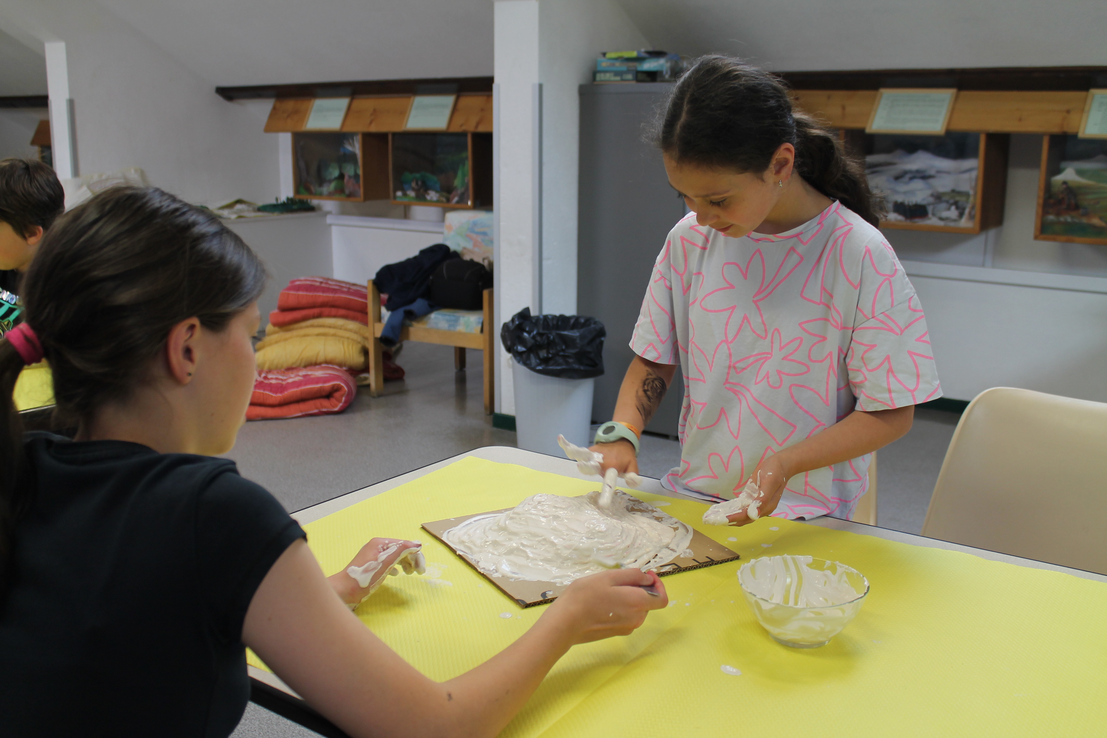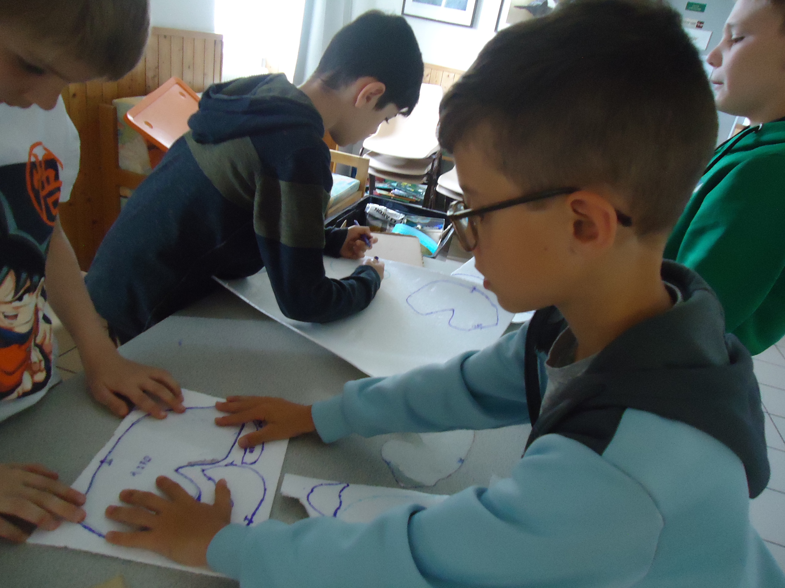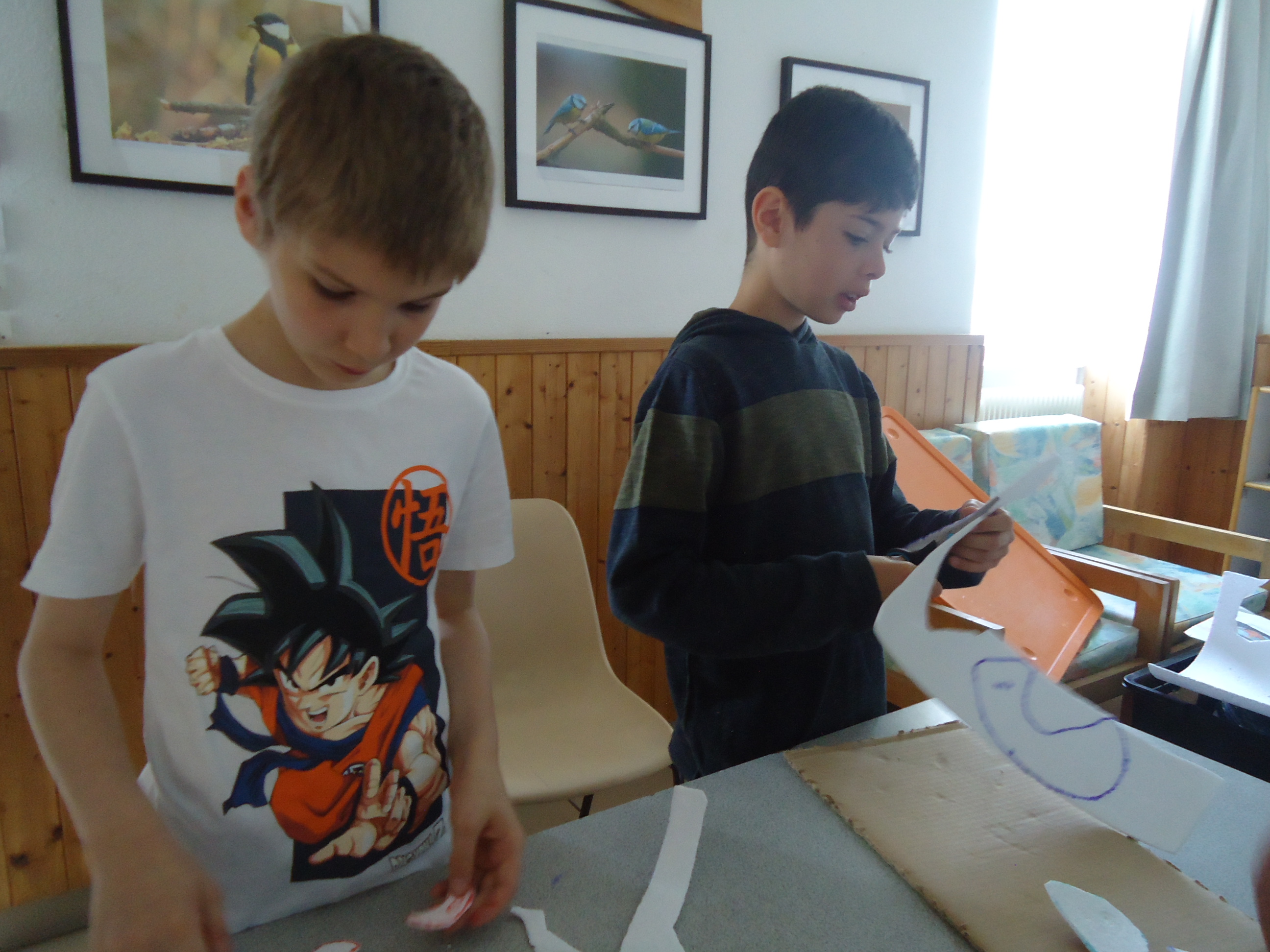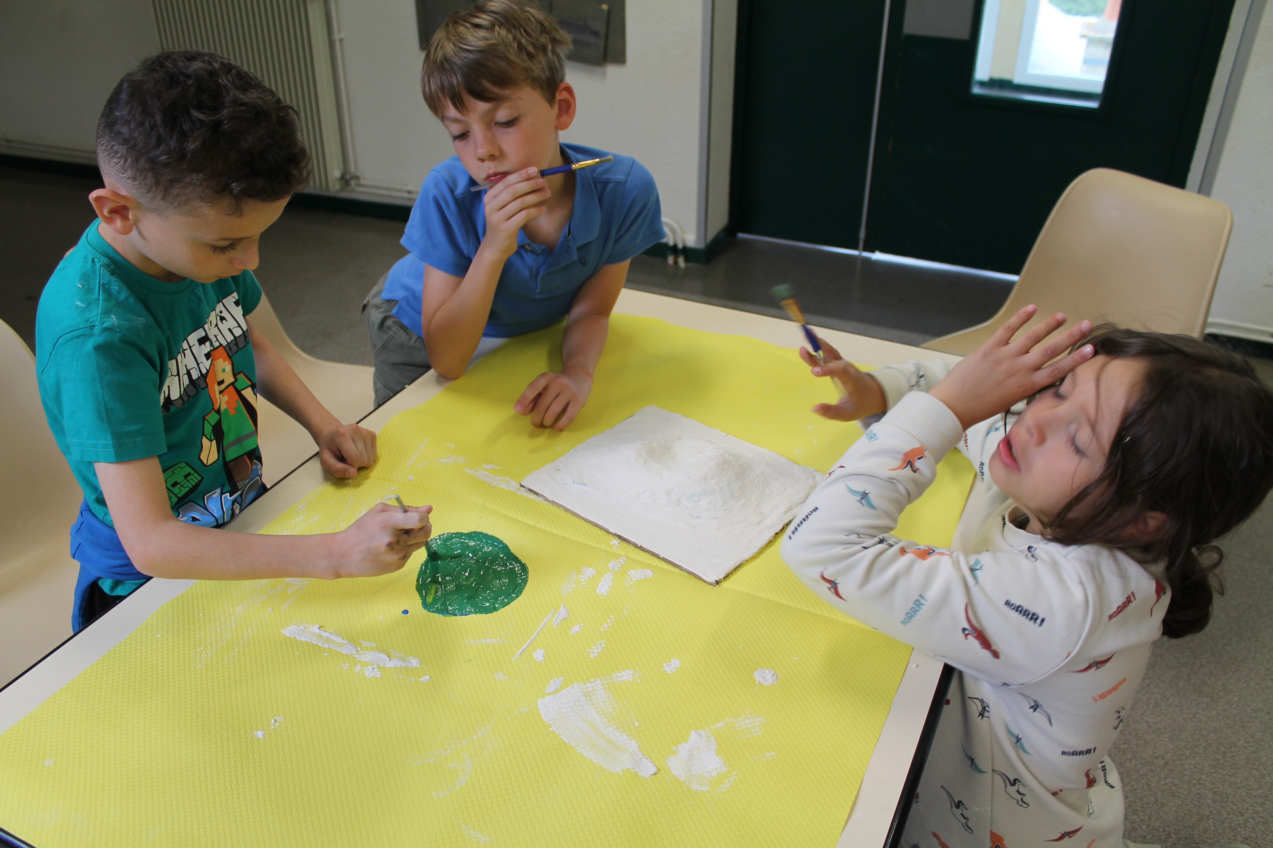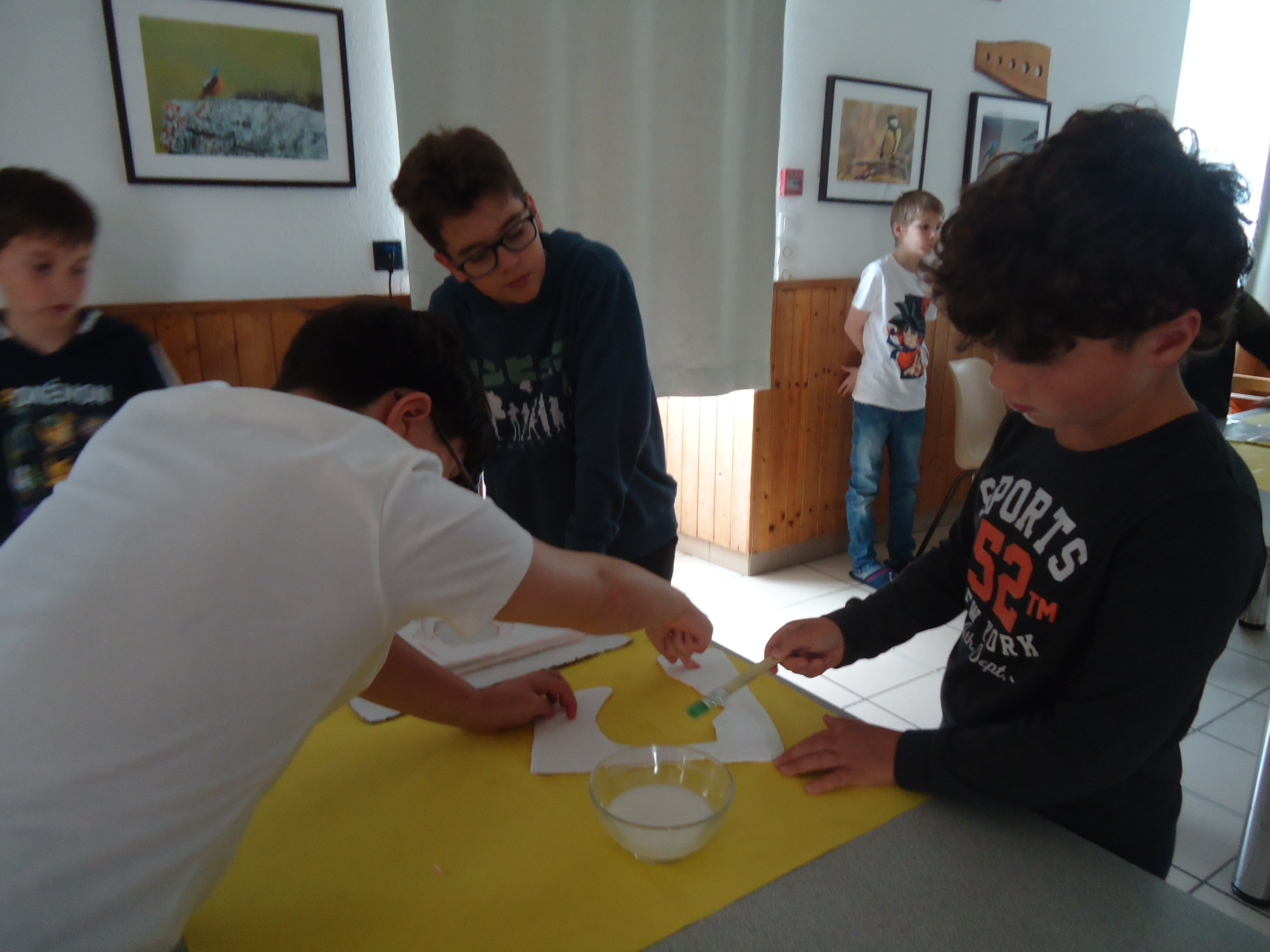 Aujourd’hui nous avons fait des maquettes sur les volcans. Nous, on a fait le Mont mézenc. On a sorti des bouts de plastique de l’enveloppe. Stan nous a donné du polystyrène ensuite nous avons découpé. Il nous a donné un carton, on a collé les morceaux de polystyrène qui formait le Mont Mézenc. Ensuite il a mis le plâtre et on l’a étalé, on a attendu qu’il sèche.