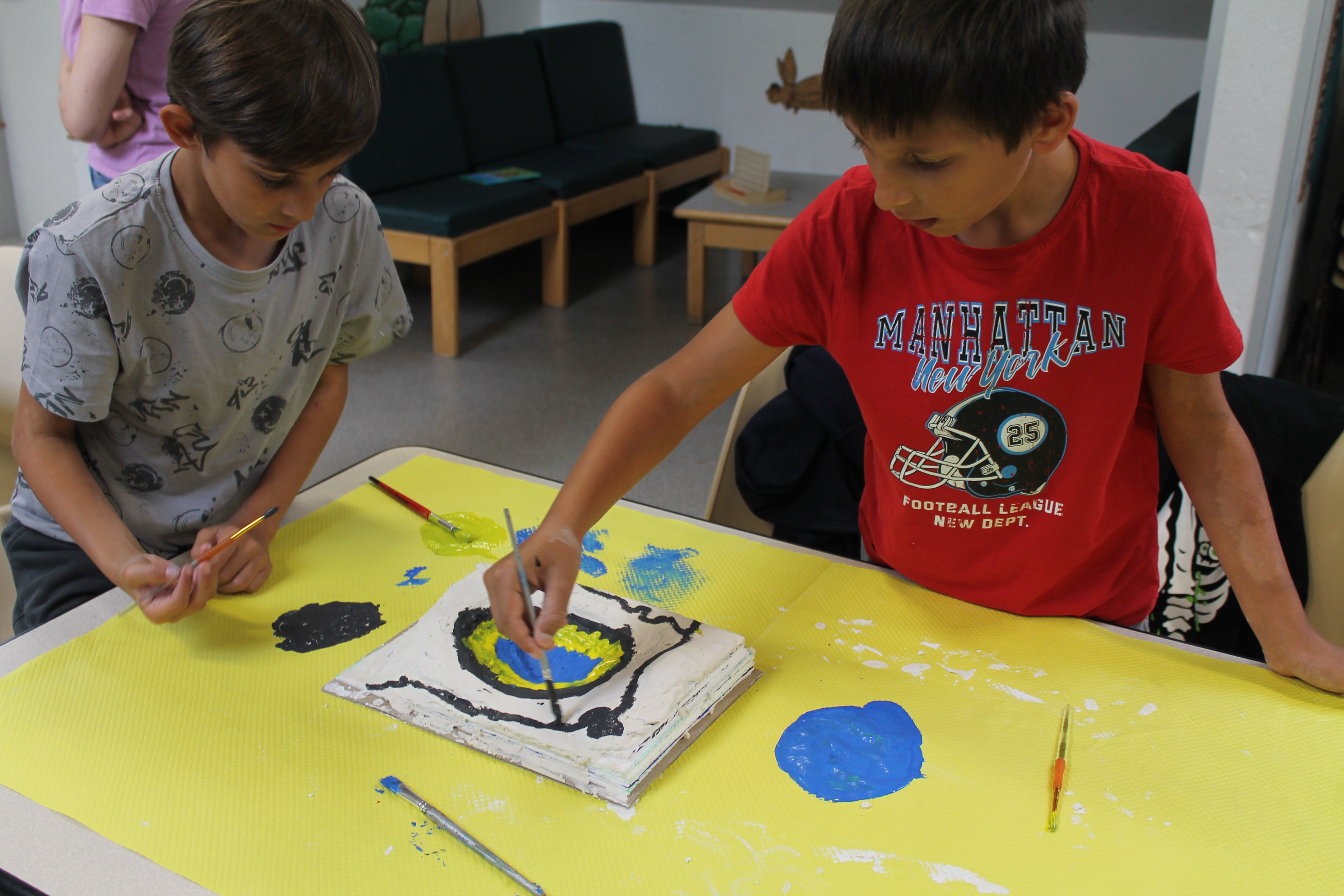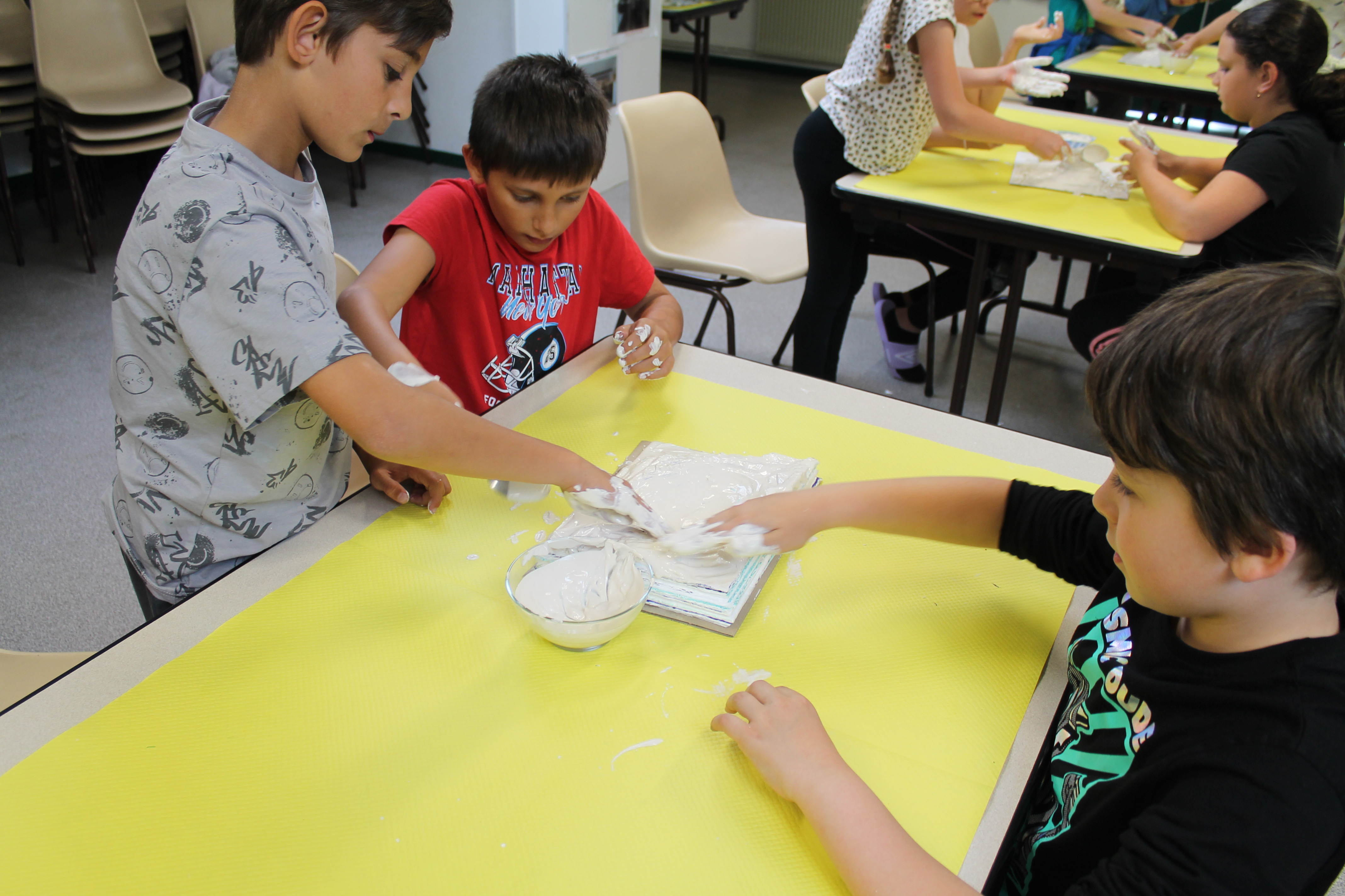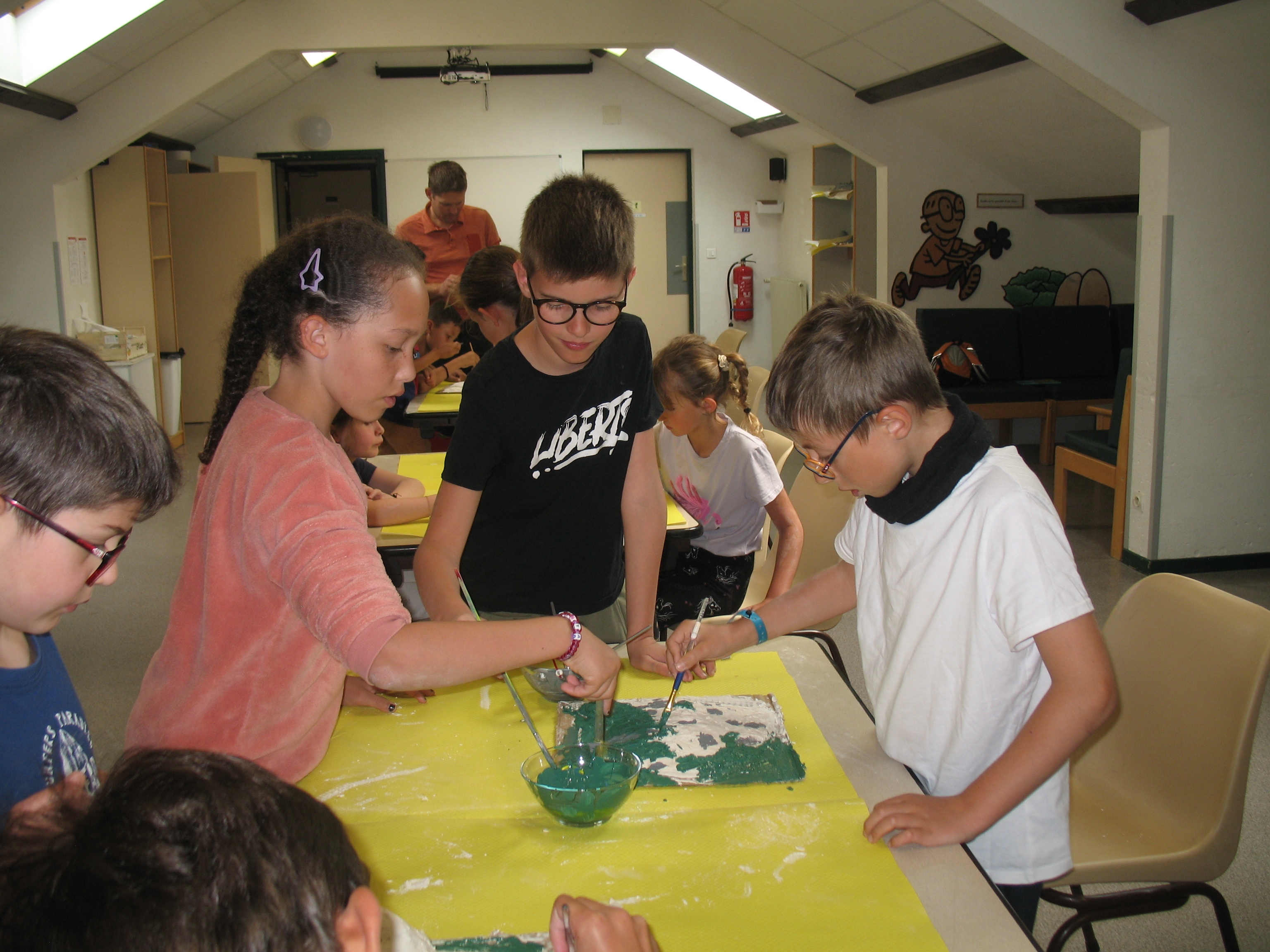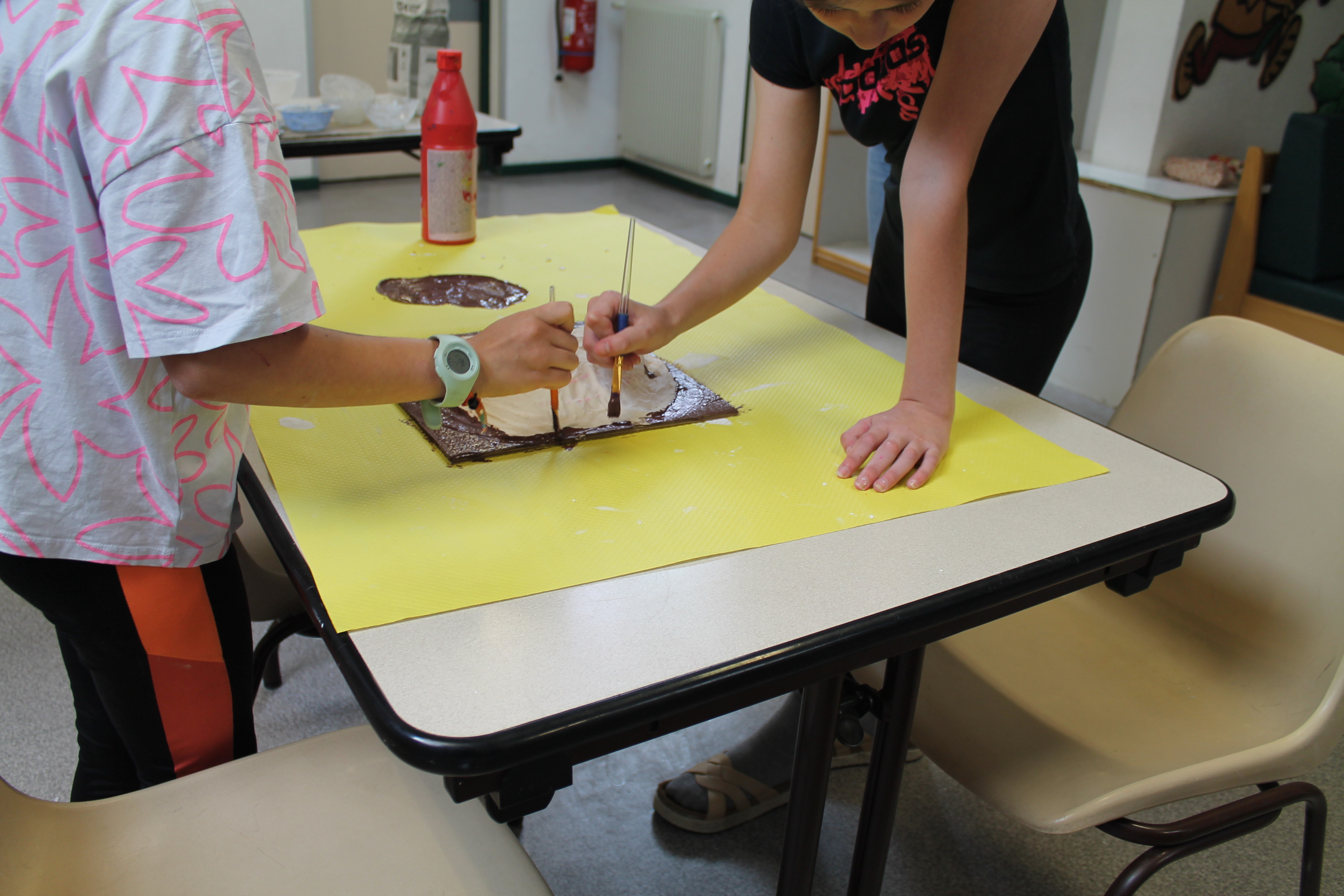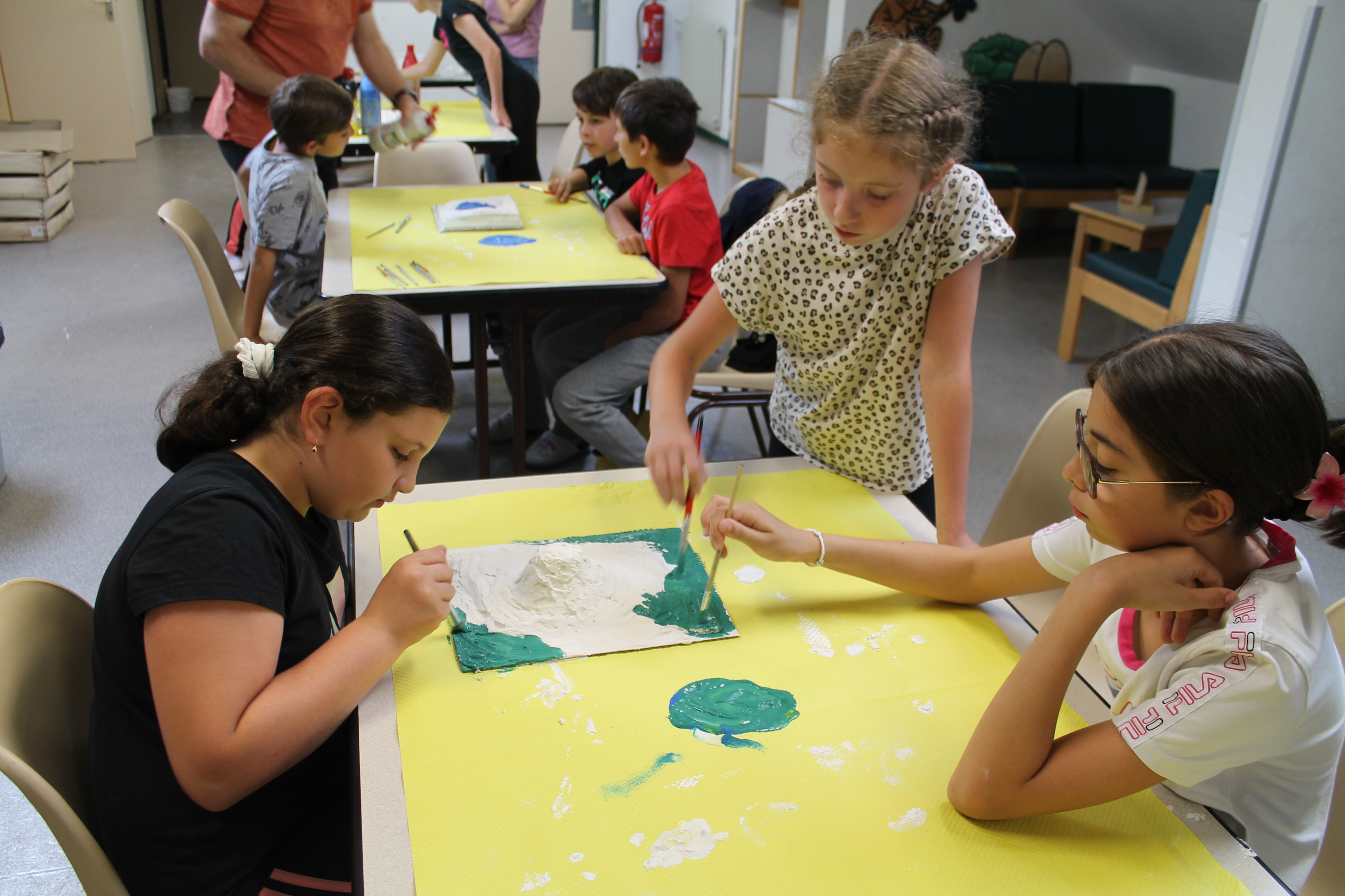 Aujourd’hui nous avons fait des maquettes sur les volcans. Nous, on a fait le Mont mézenc. On a sorti des bouts de plastique de l’enveloppe. Stan nous a donné du polystyrène ensuite nous avons découpé. Il nous a donné un carton, on a collé les morceaux de polystyrène qui formait le Mont Mézenc. Ensuite il a mis le plâtre et on l’a étalé, on a attendu qu’il sèche.