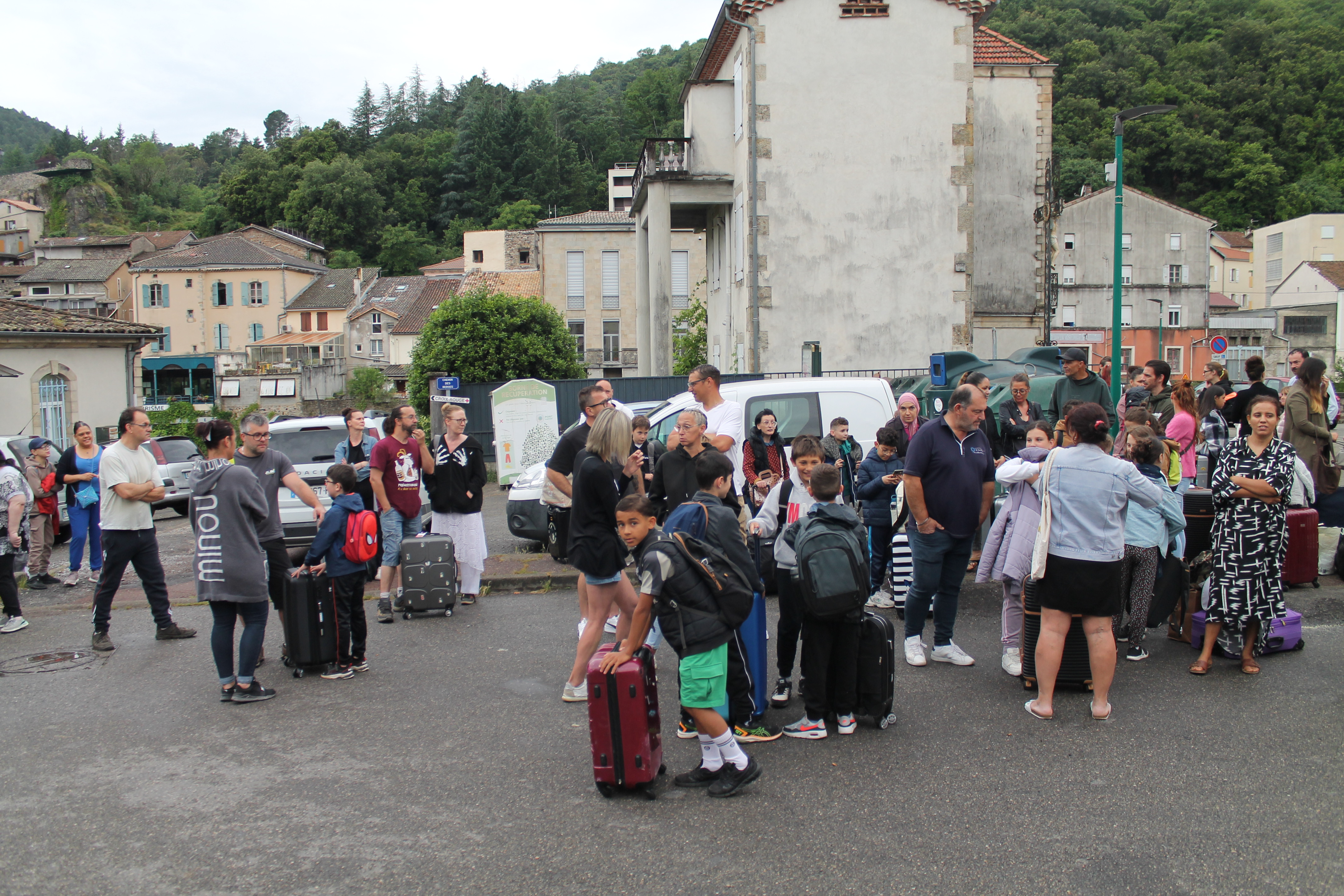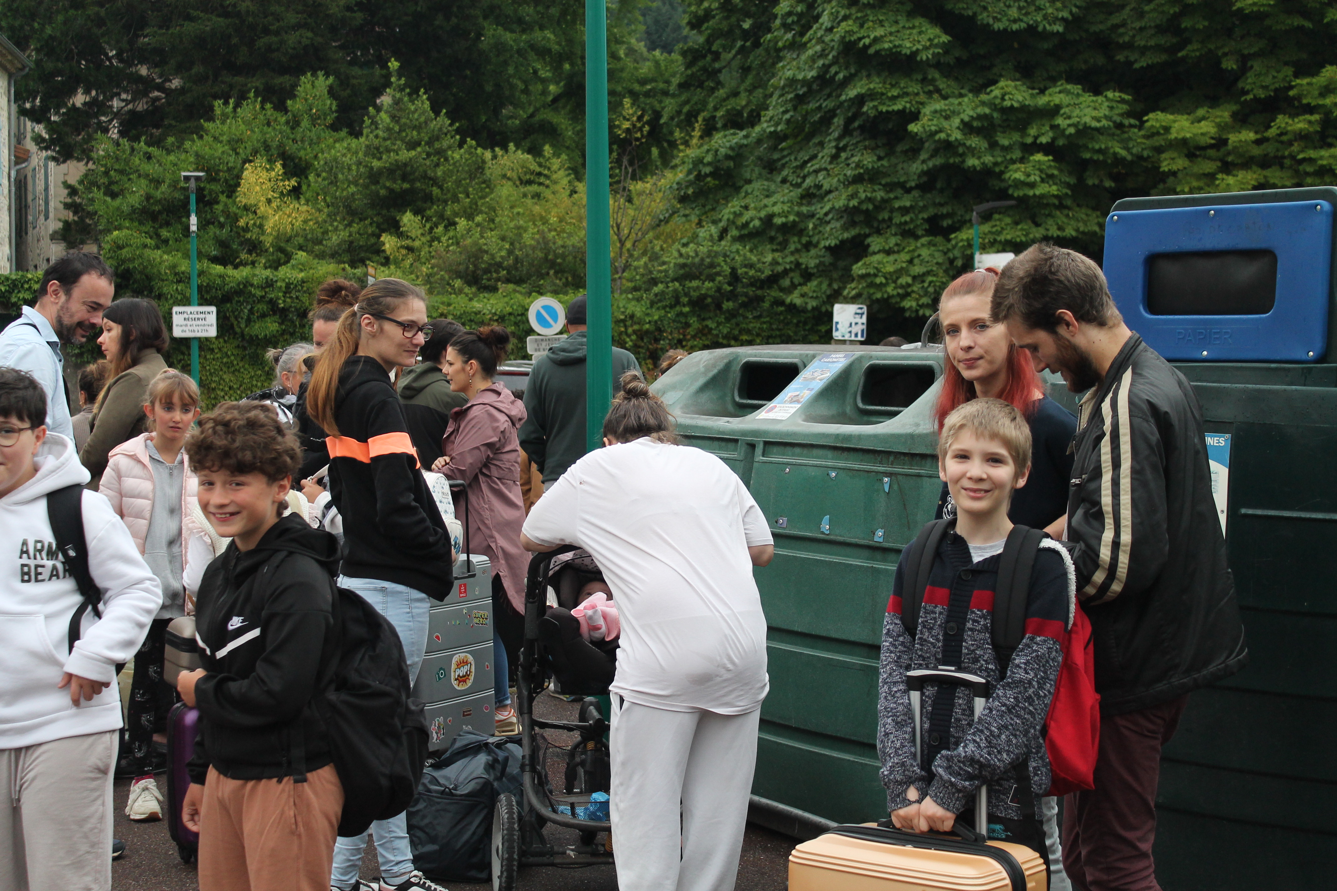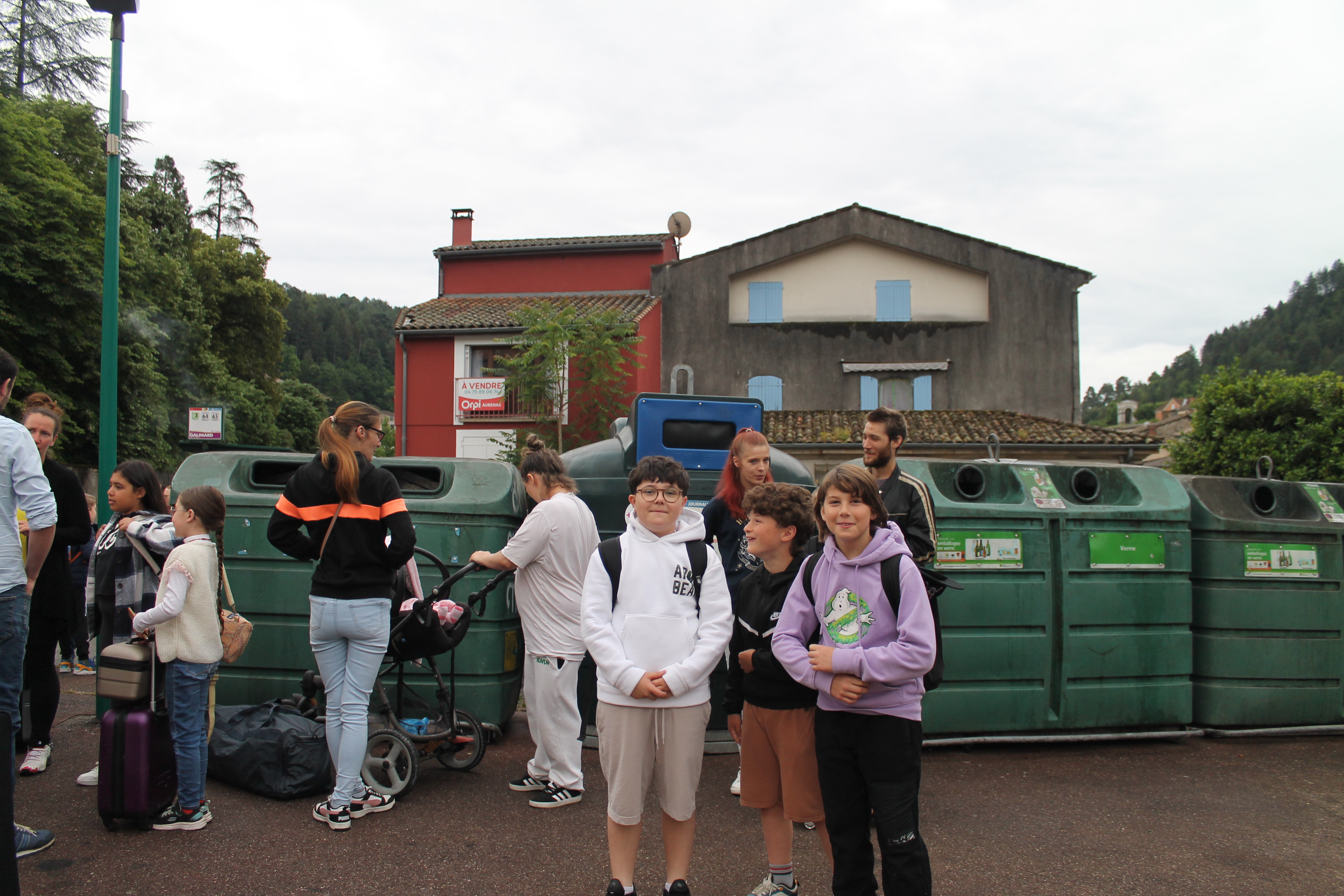 Au début nous avons pris nos valises pour les mettre dans le car. Puis après, nous avons attendu que les moniteurs mettent dans le car nos valises. Puis une fois dans le car, nous nous sommes assis pour le trajet. Arrivé à Vals-Les-Bains, les maîtres regardaient si il y avait nos parents pour sortir du car et rentrer chez nous.