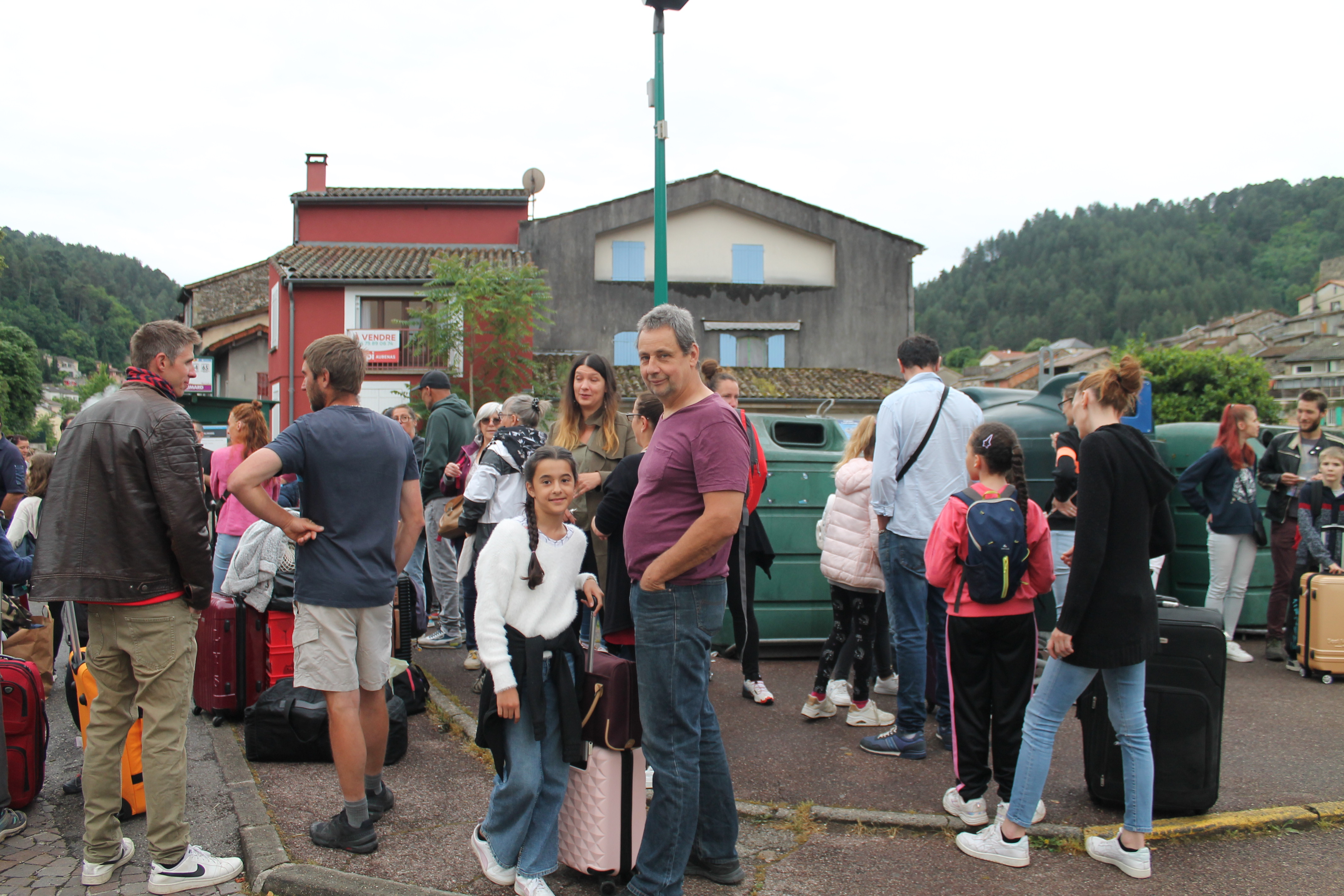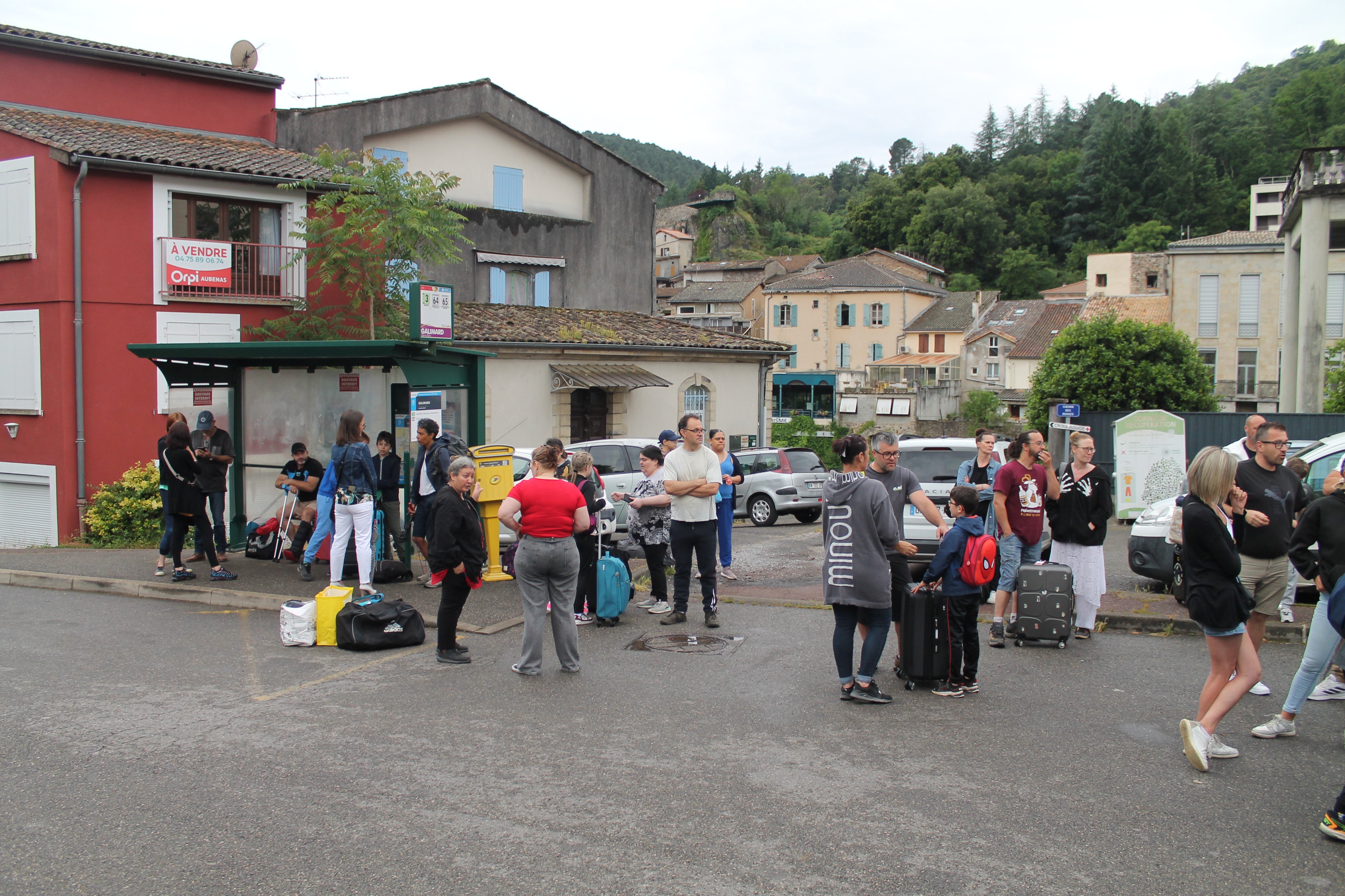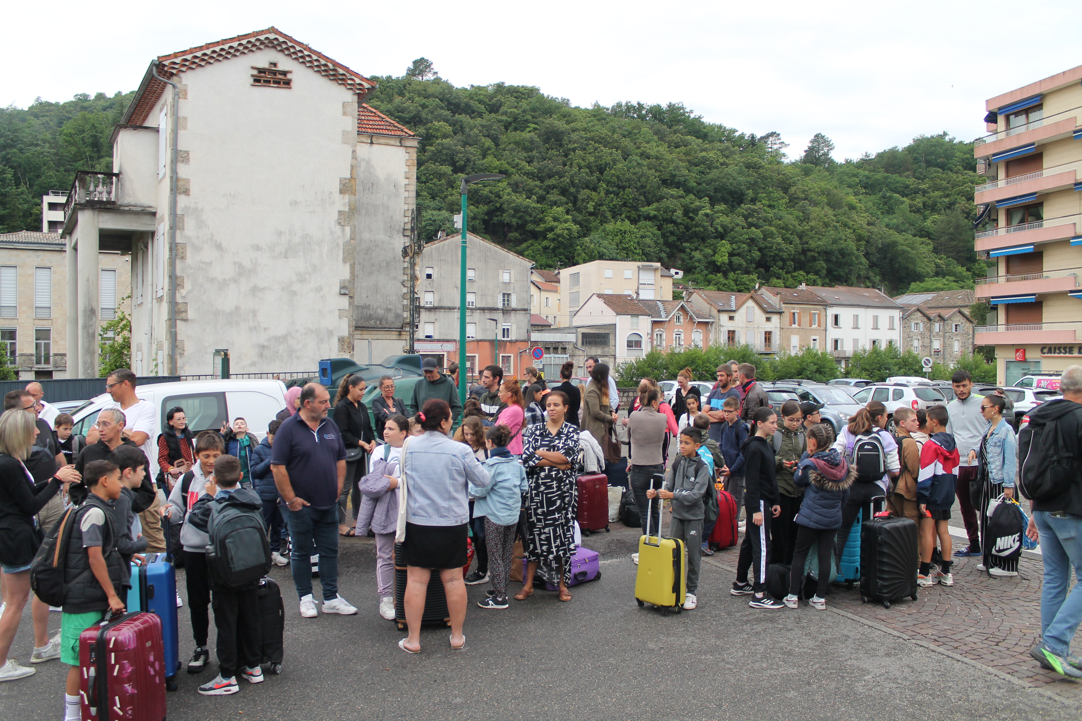 Au début nous avons pris nos valises pour les mettre dans le car. Puis après, nous avons attendu que les moniteurs mettent dans le car nos valises. Puis une fois dans le car, nous nous sommes assis pour le trajet. Arrivé à Vals-Les-Bains, les maîtres regardaient si il y avait nos parents pour sortir du car et rentrer chez nous.