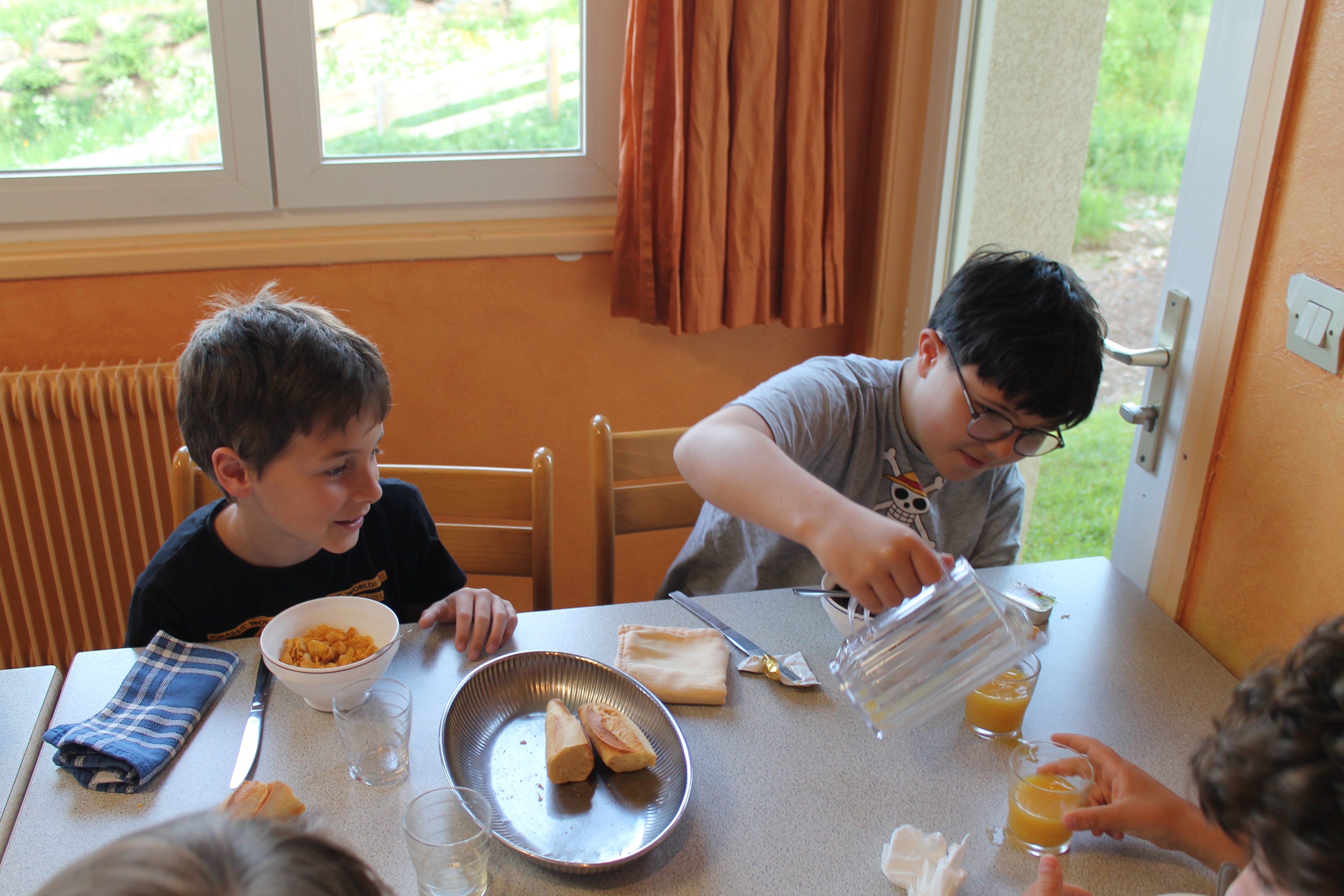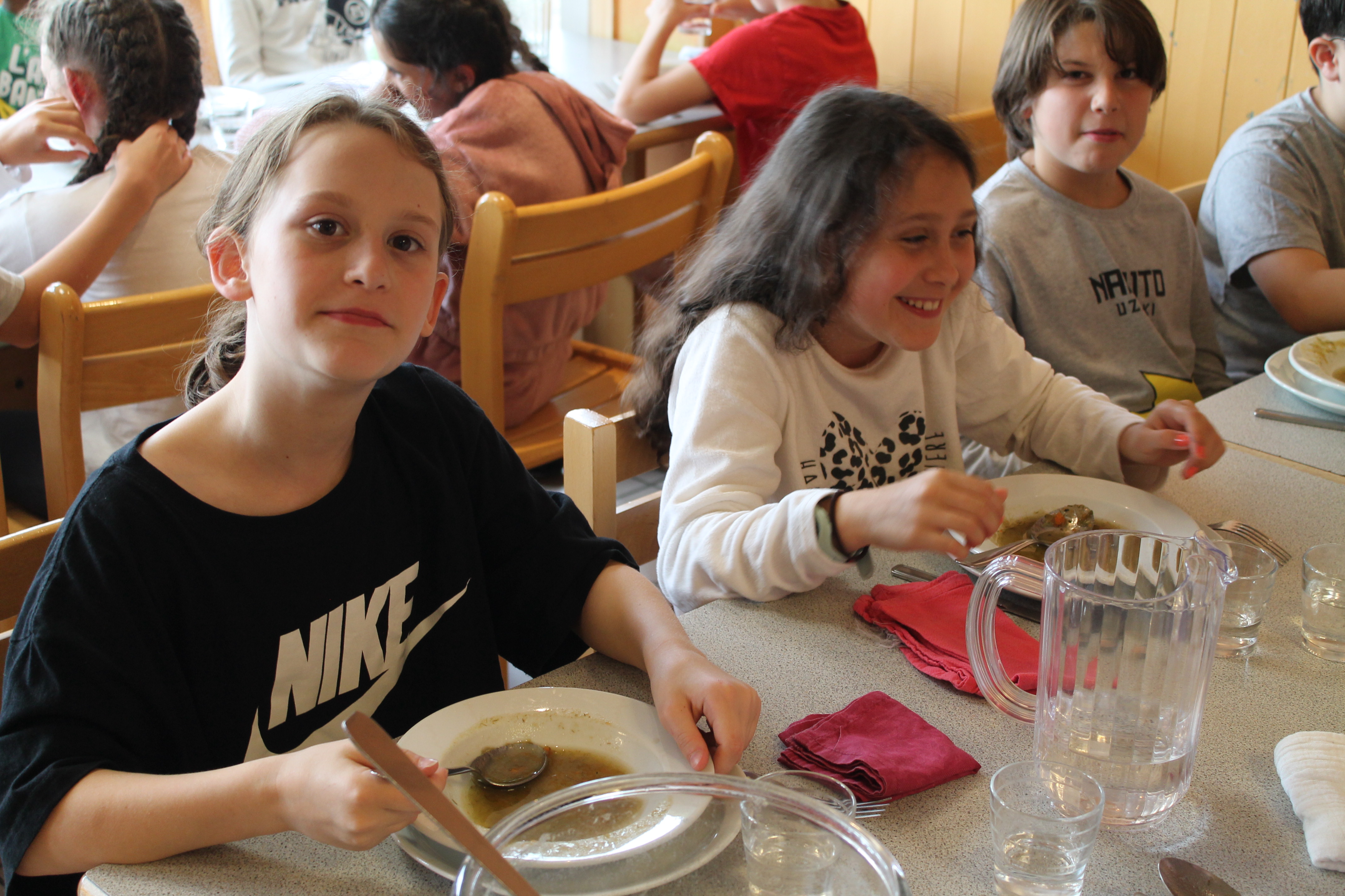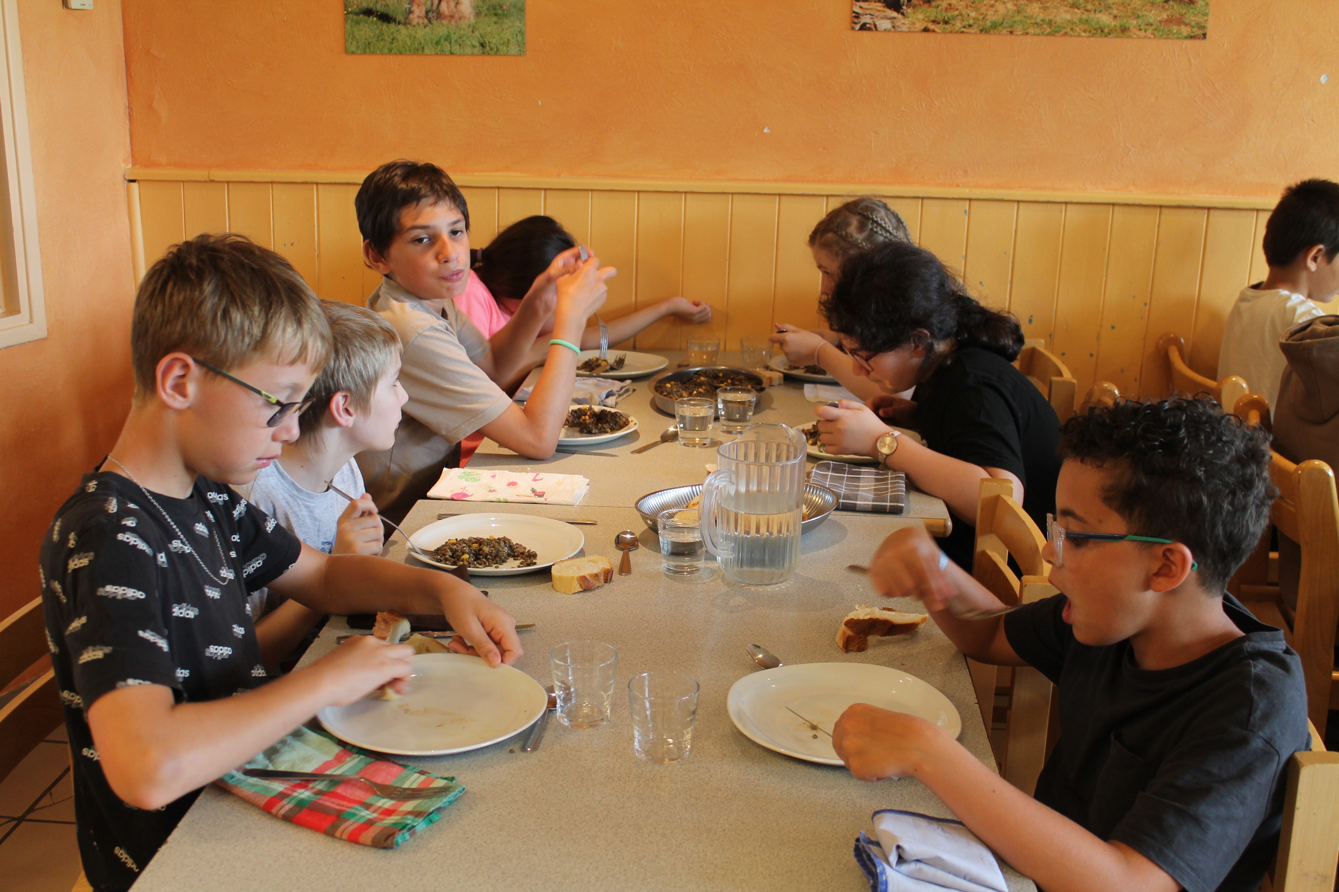 Alors moi j ai tout aimé, quand on mangeait j'ai tout mangé et j ai bien aimé vivre avec mes amis et parler au repas.