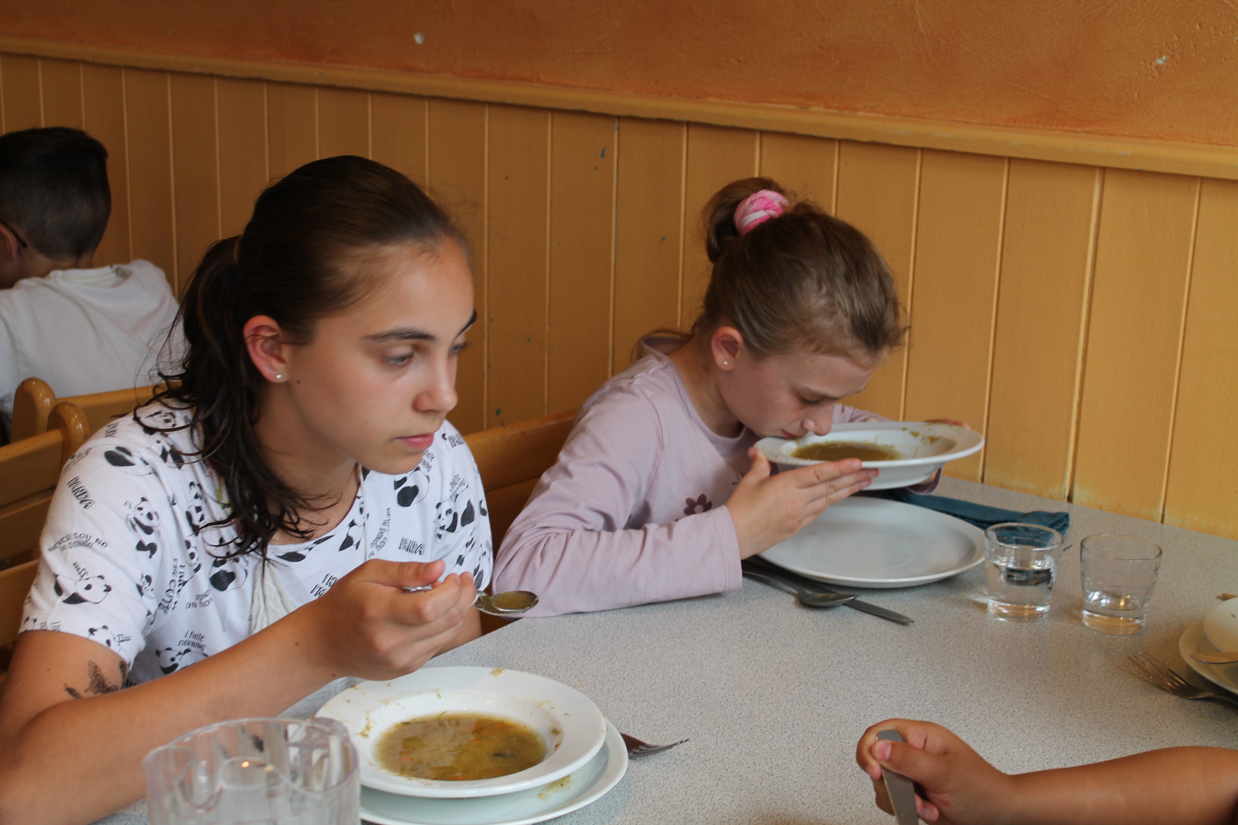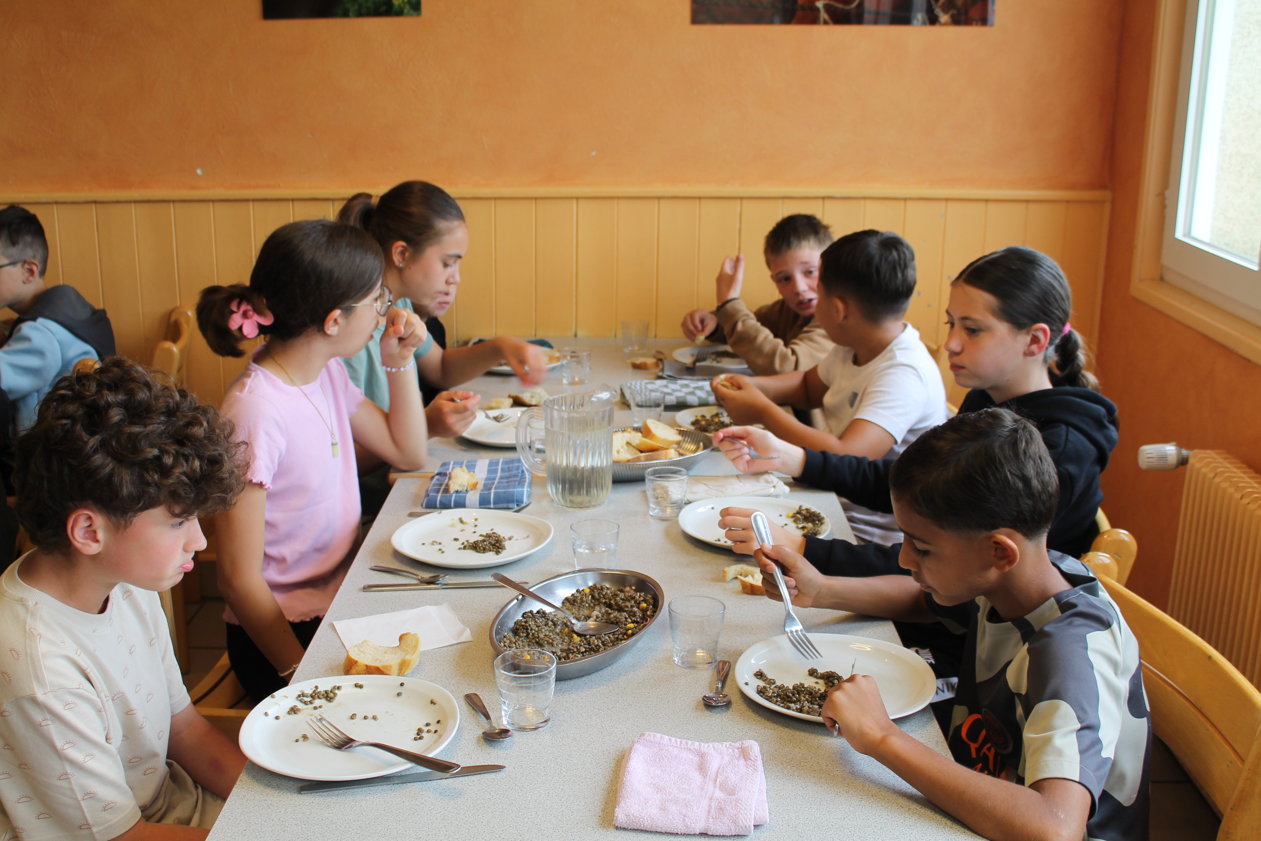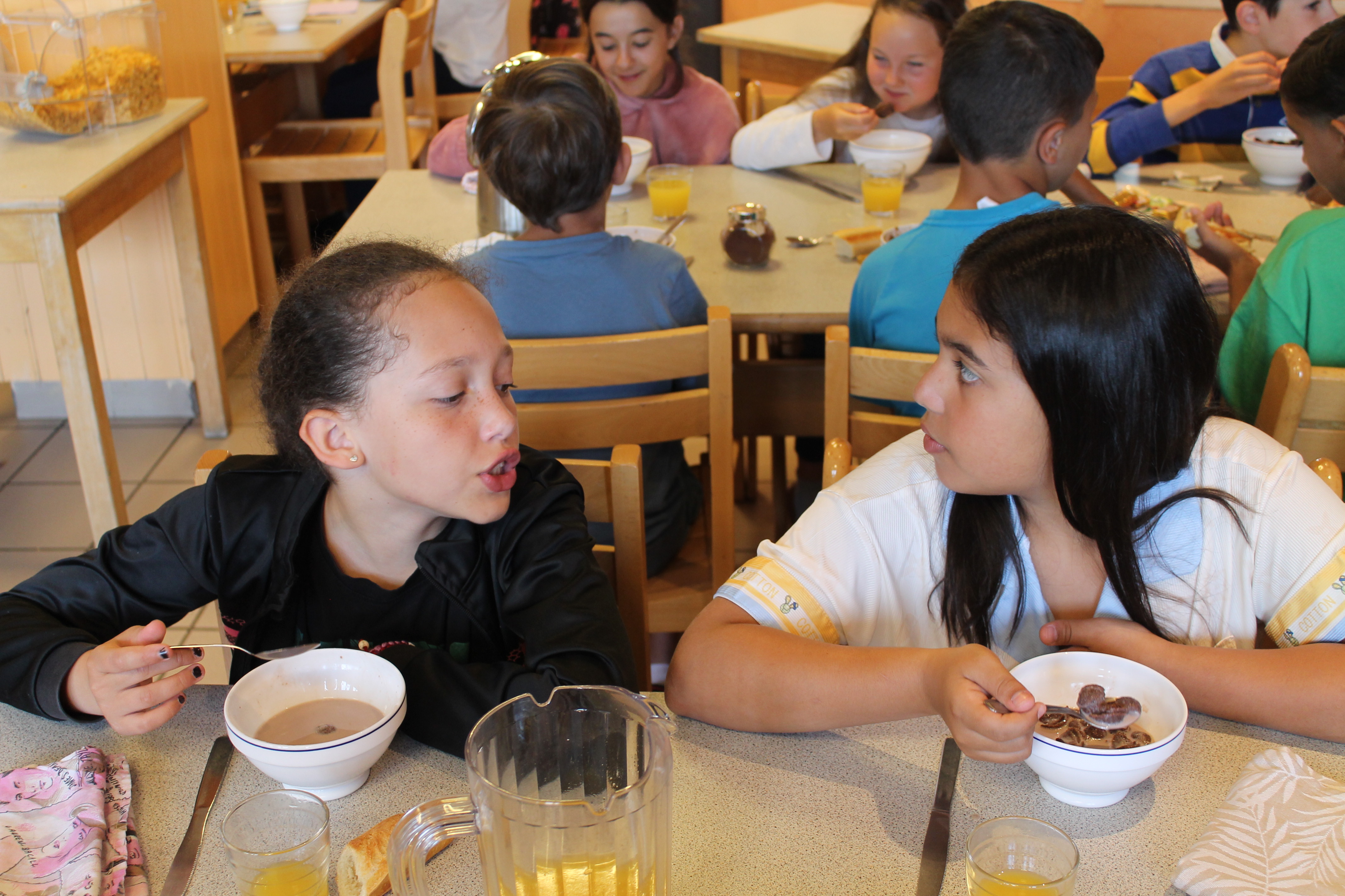 Alors moi j ai tout aimé, quand on mangeait j'ai tout mangé et j ai bien aimé vivre avec mes amis et parler au repas.