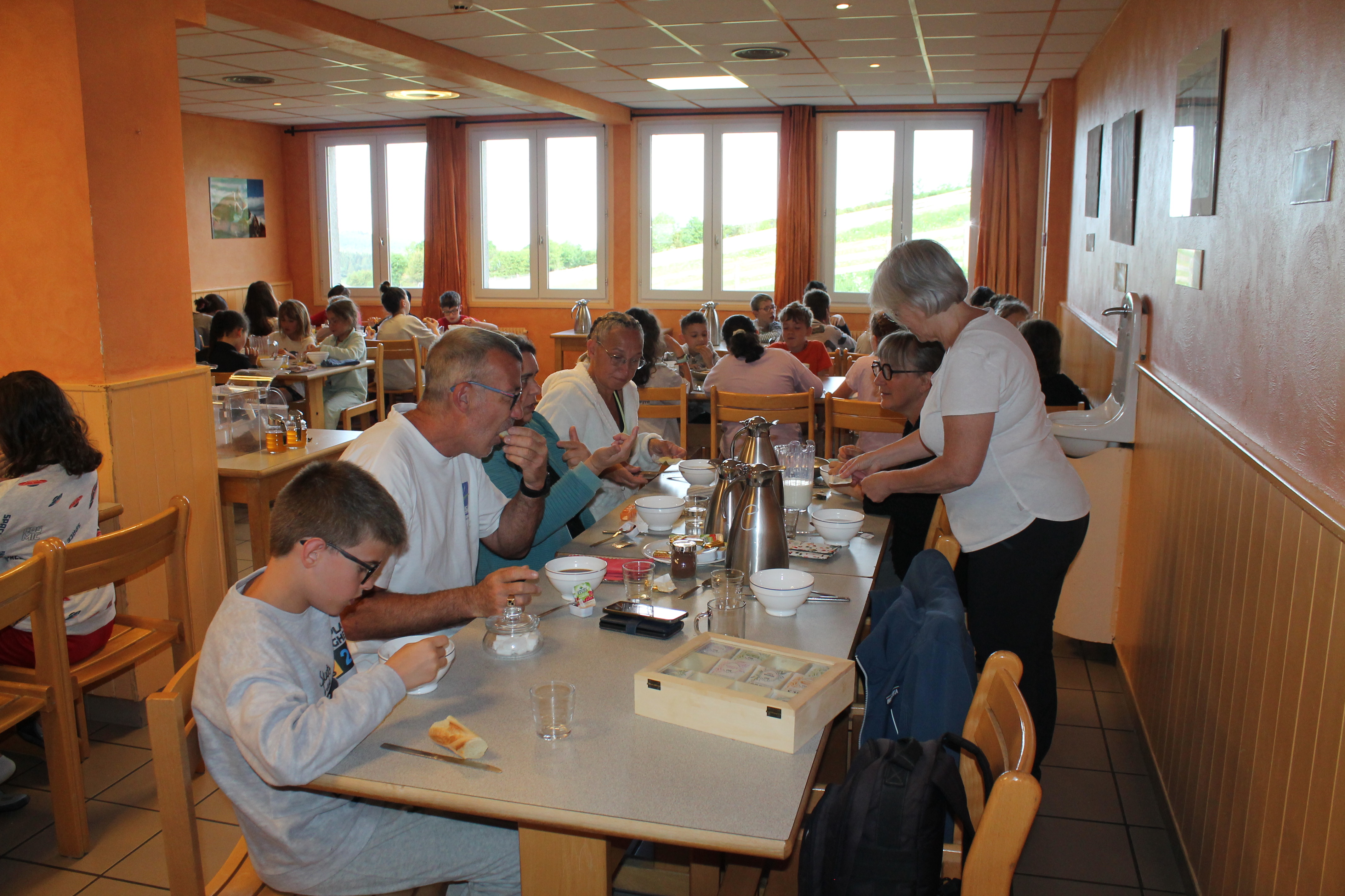 Après un petit déjeuner copieux les enfants ont été répartis en 3 groupes: escalade, course d'orientation et ascension du mont Mézenc. La journée s'est bien déroulée, sous le soleil!