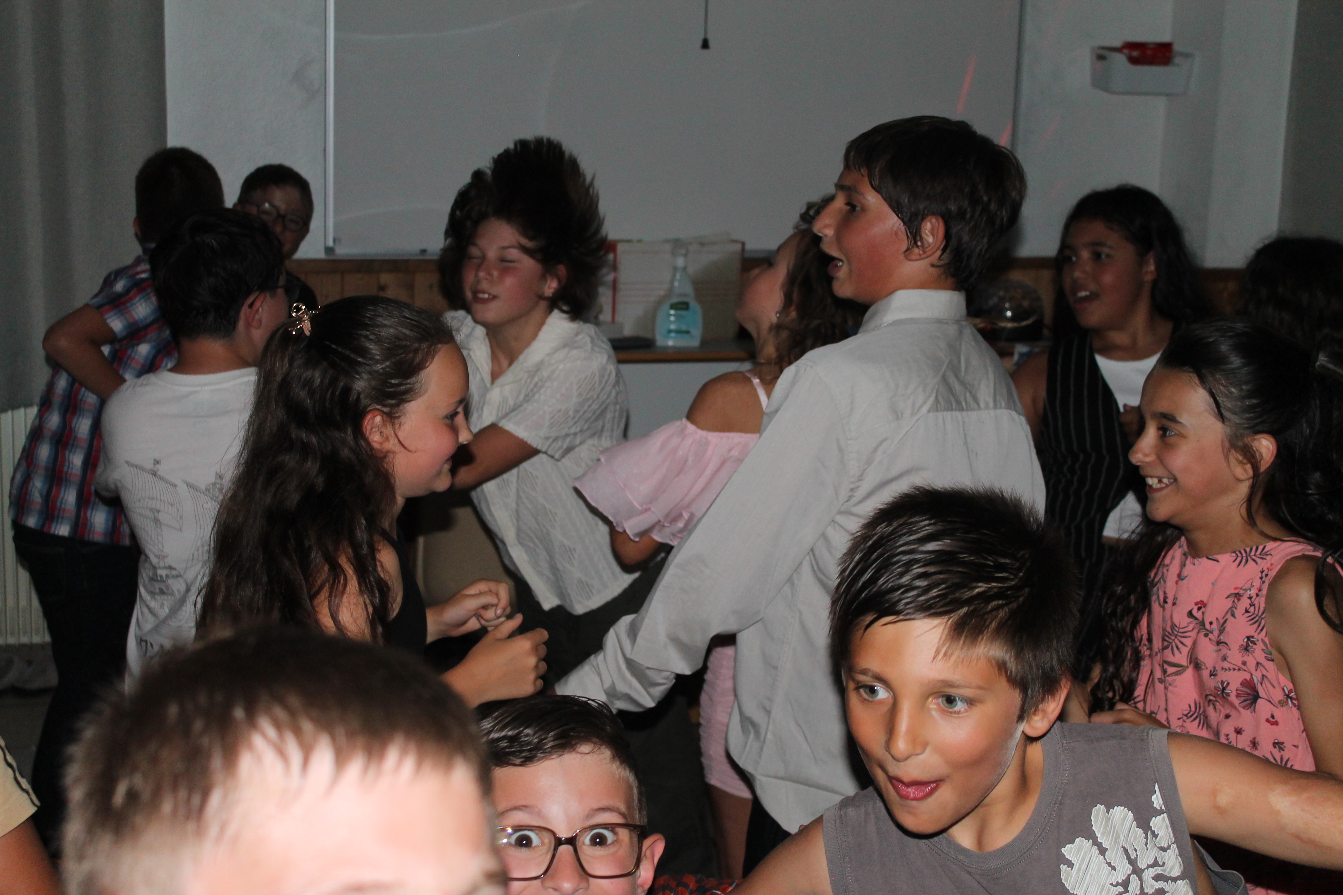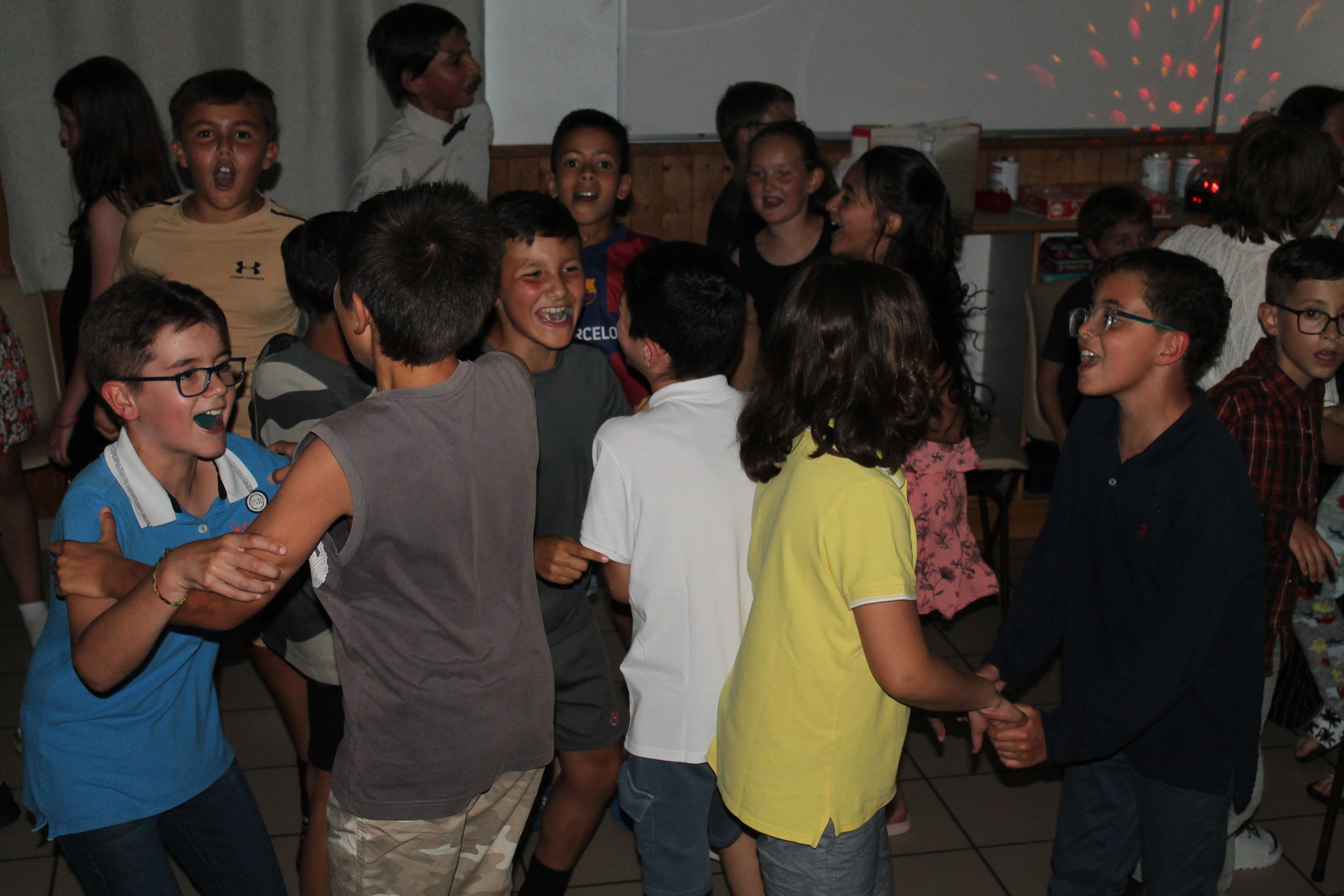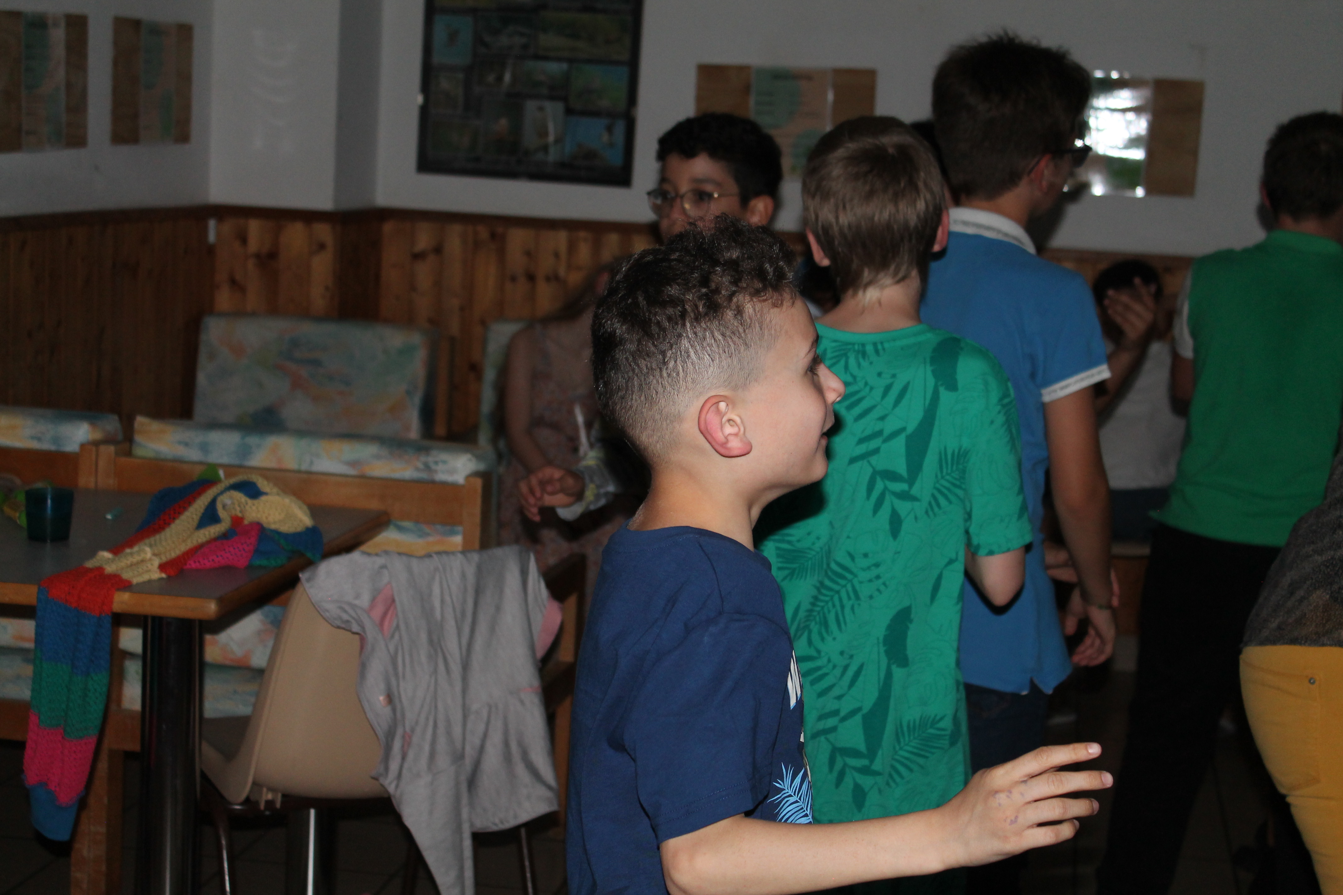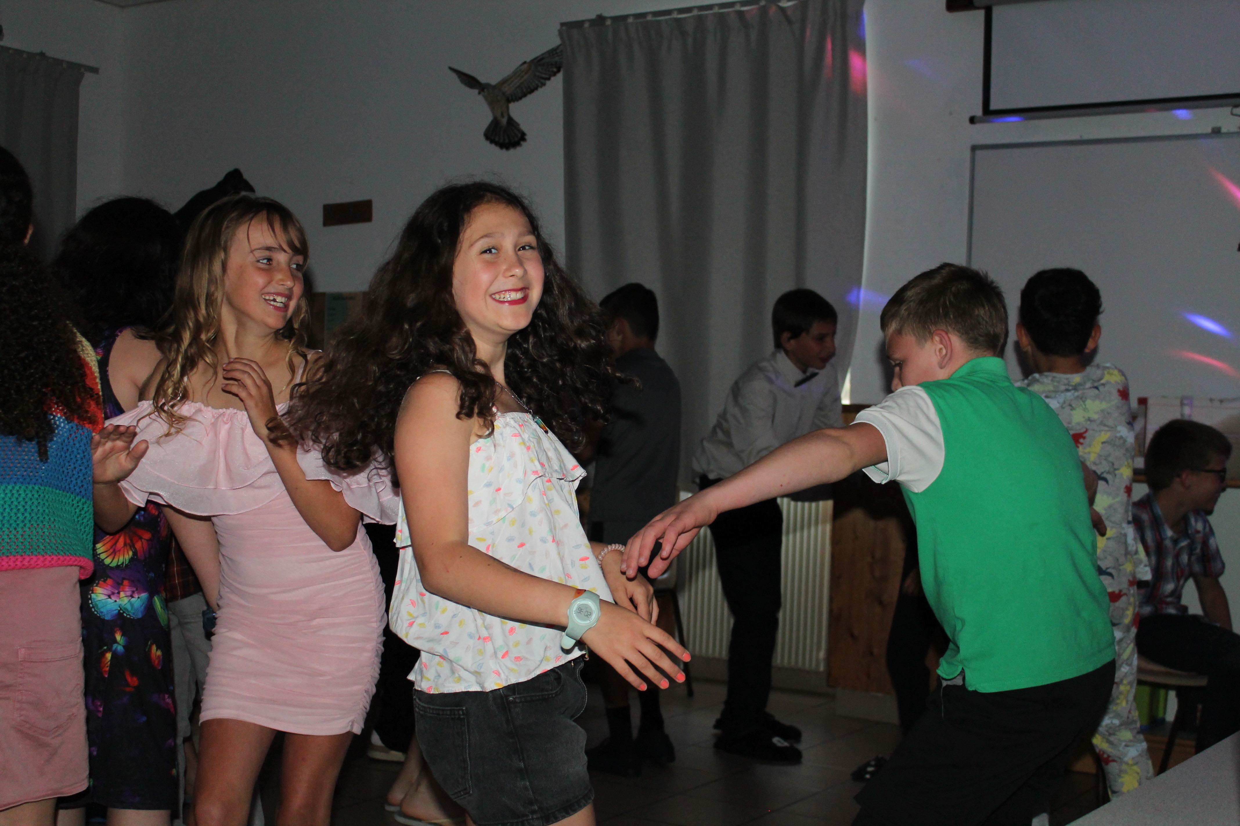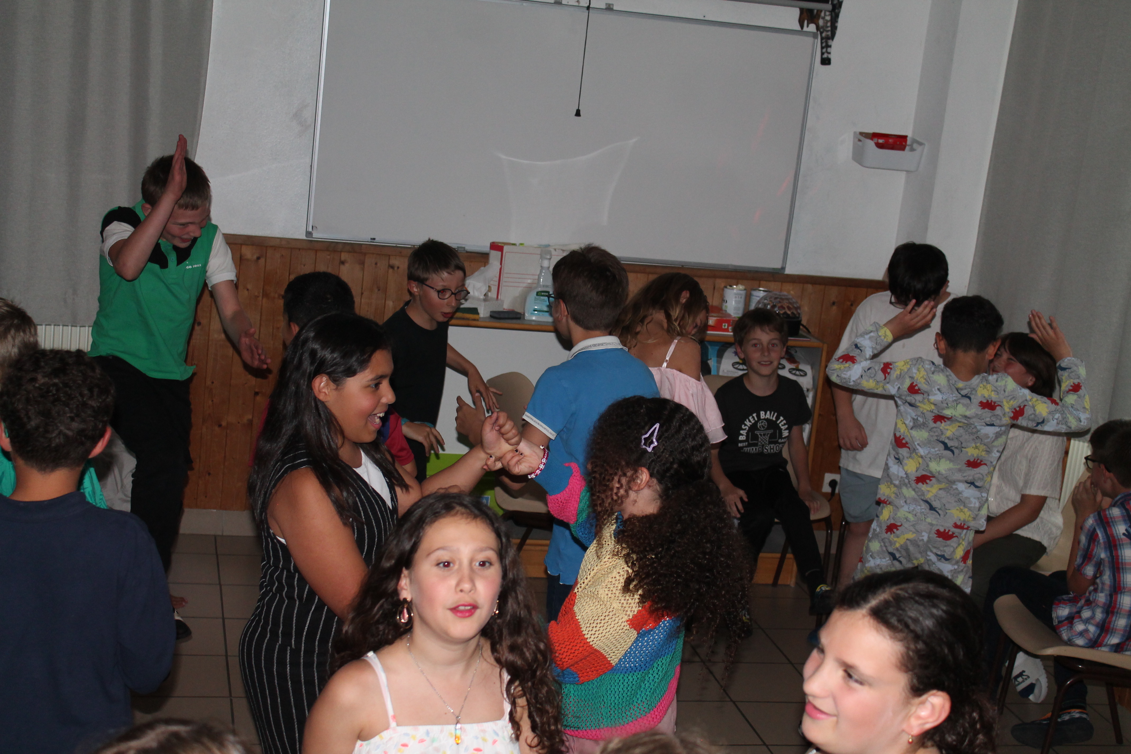 Pendant le repas du soir, Marc et Denis préparaient la boum pour pour mes camarades et moi. Après le repas nous sommes allé nous brosser les dents. Puis après notre brossage de dents nous sommes descendus dans le salle de la boum pour profiter. Aussi il y avait des bonbons, des boissons et de la musique. Et nous avons vraiment bien profité.