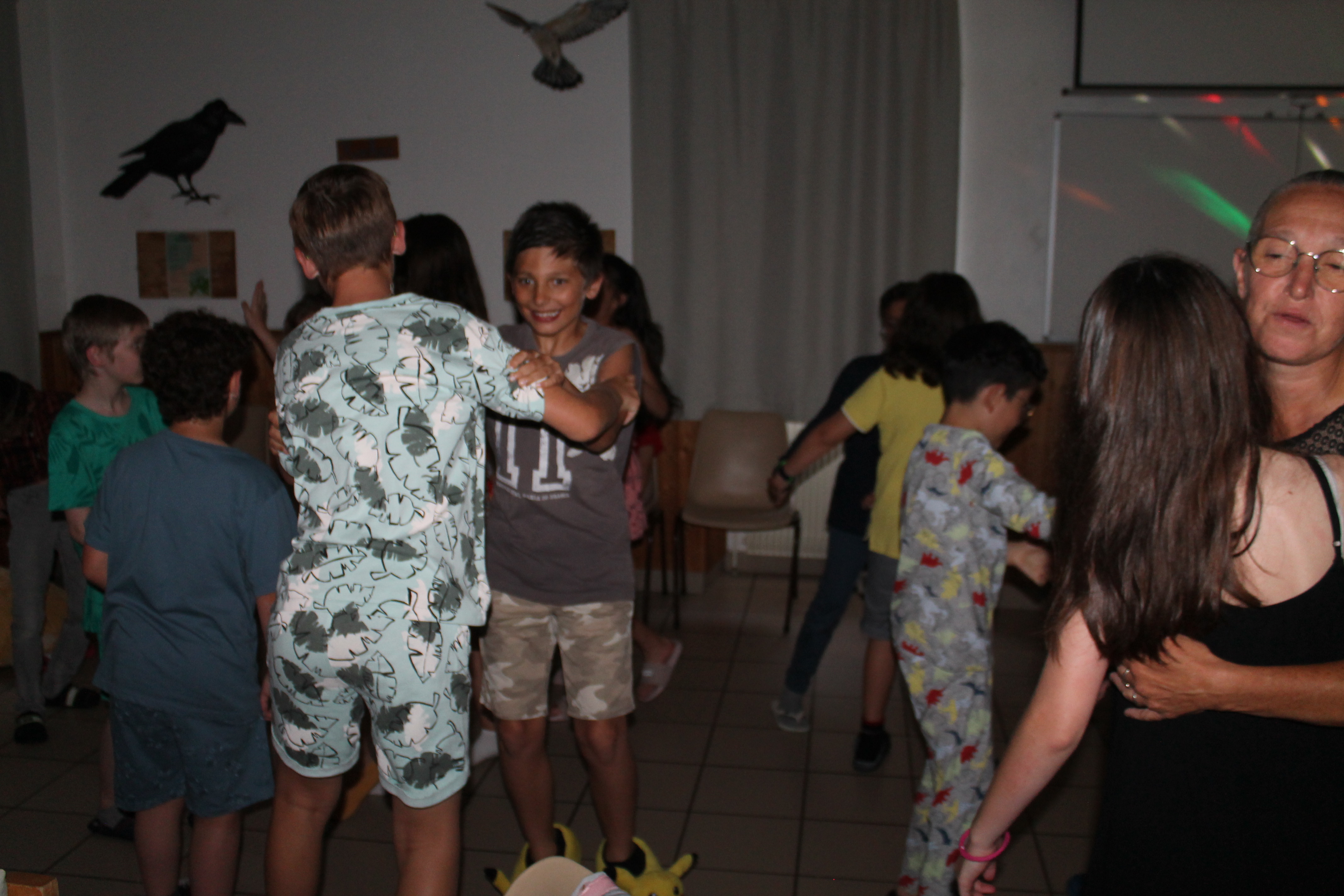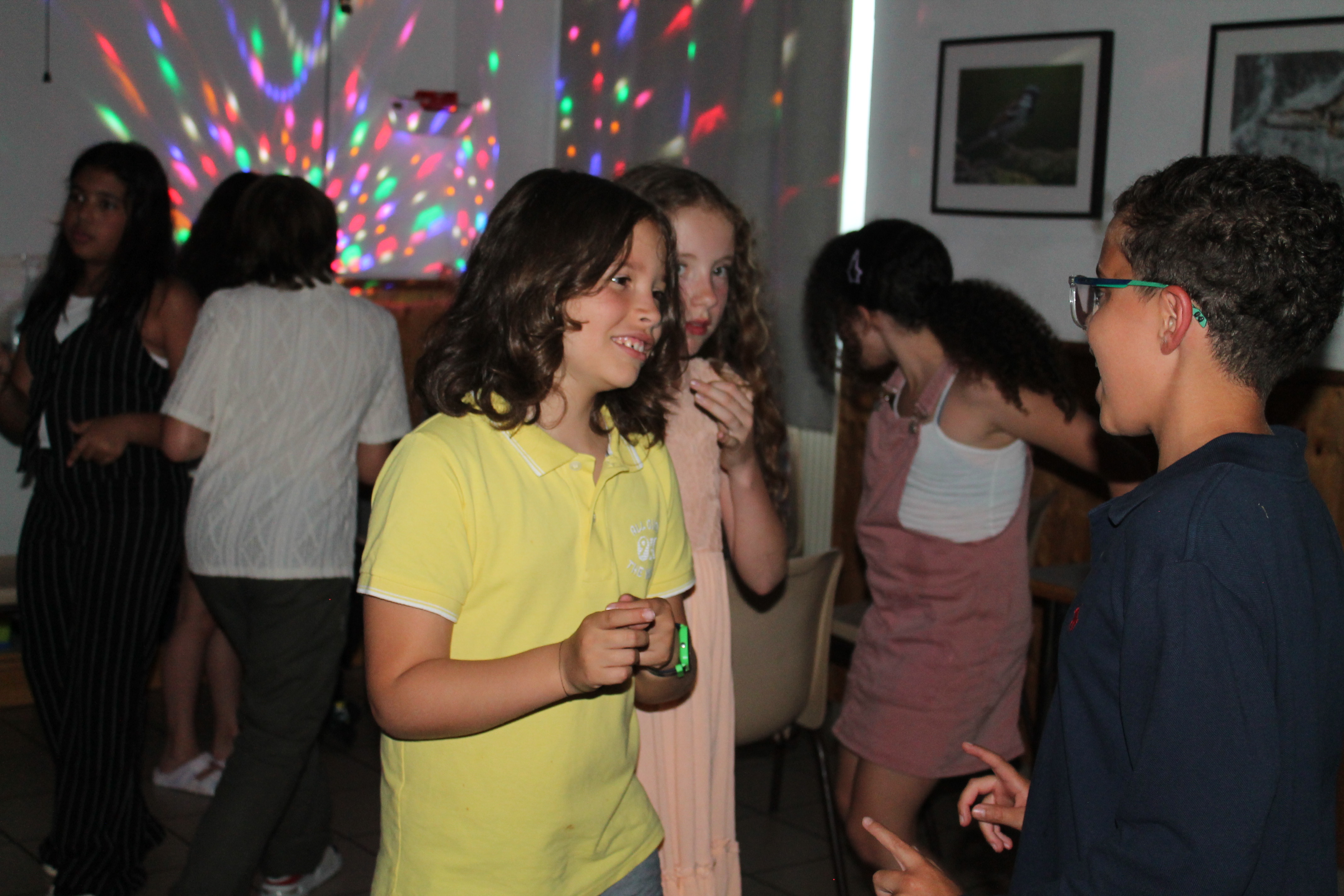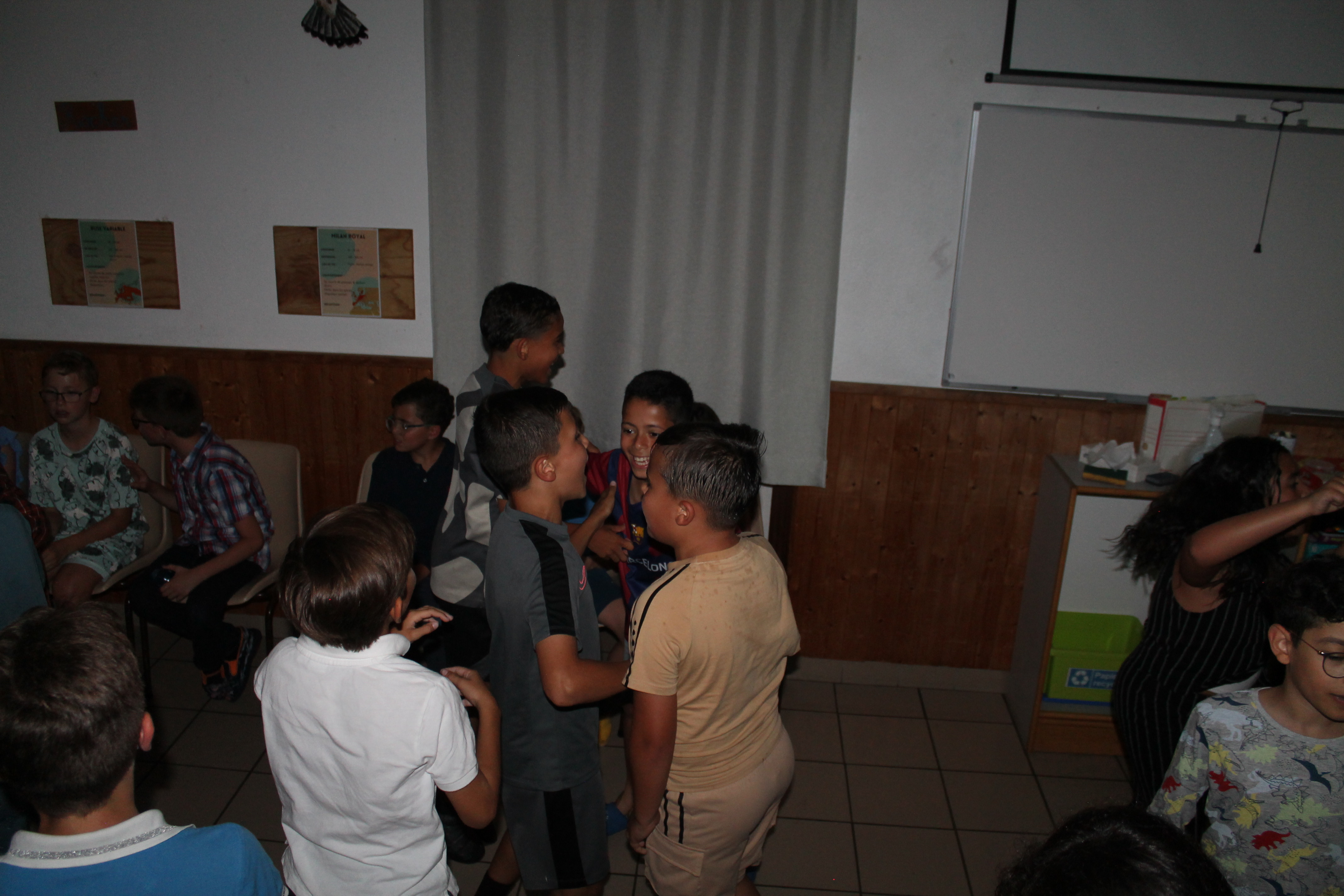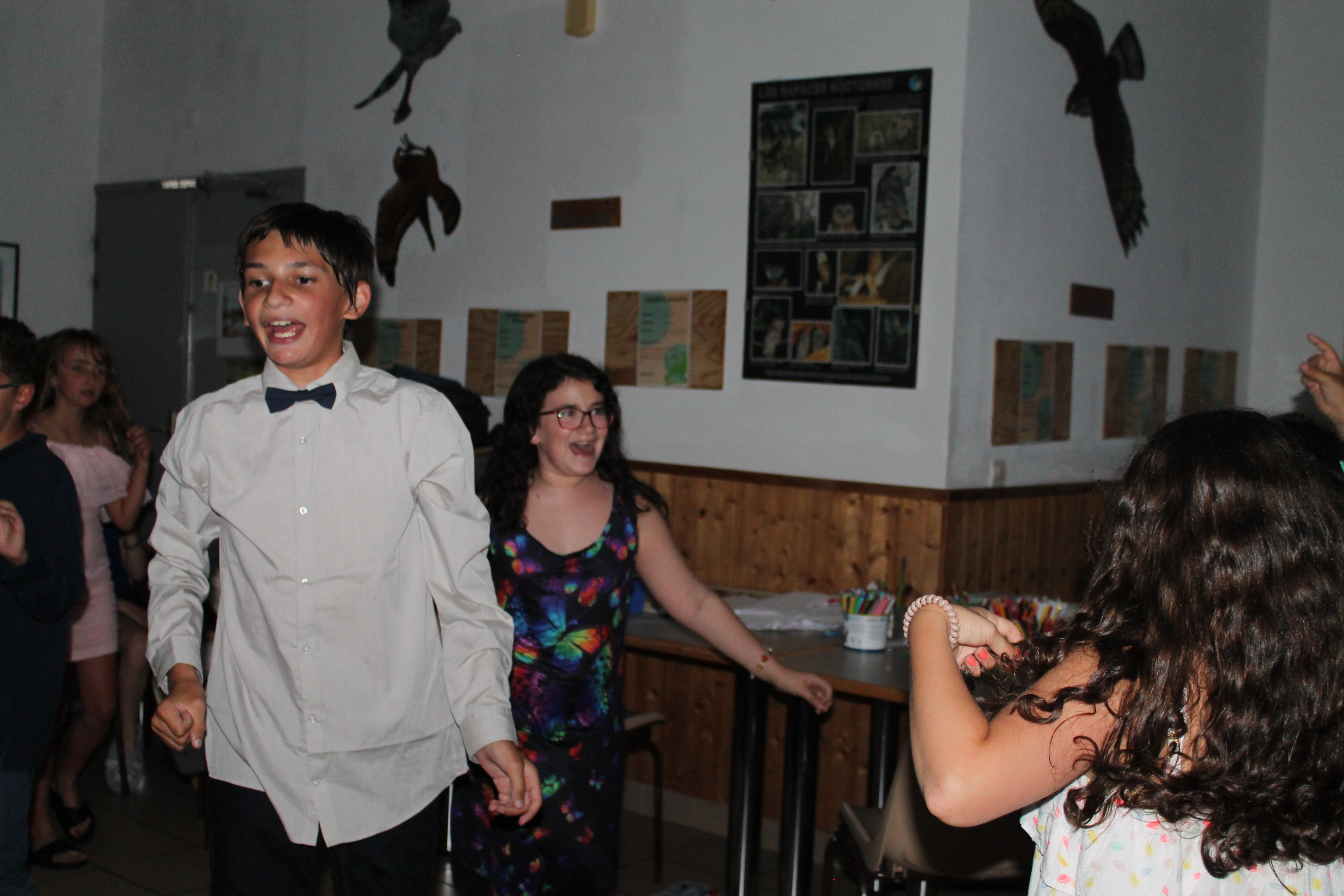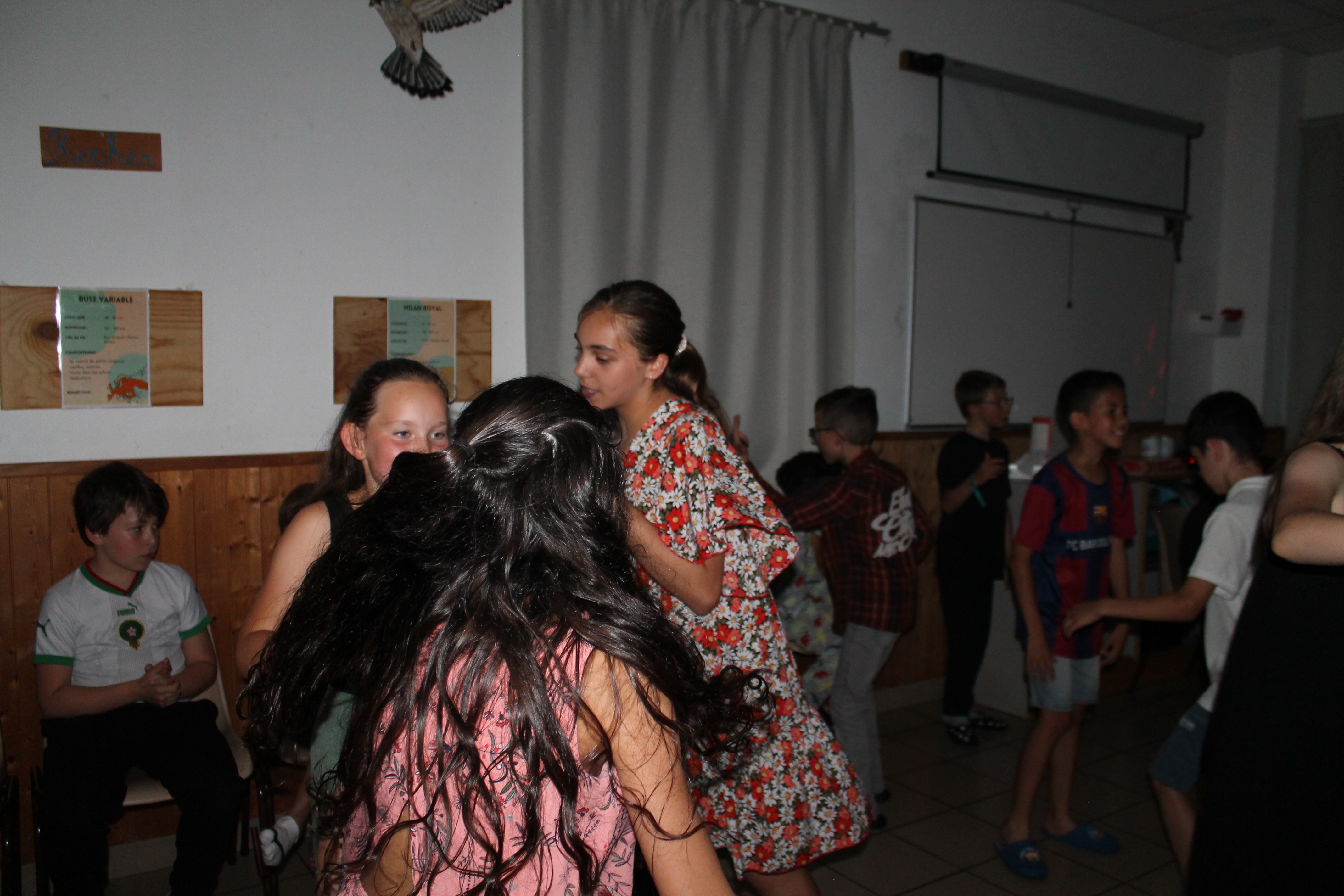 Pendant le repas du soir, Marc et Denis préparaient la boum pour pour mes camarades et moi. Après le repas nous sommes allé nous brosser les dents. Puis après notre brossage de dents nous sommes descendus dans le salle de la boum pour profiter. Aussi il y avait des bonbons, des boissons et de la musique. Et nous avons vraiment bien profité.