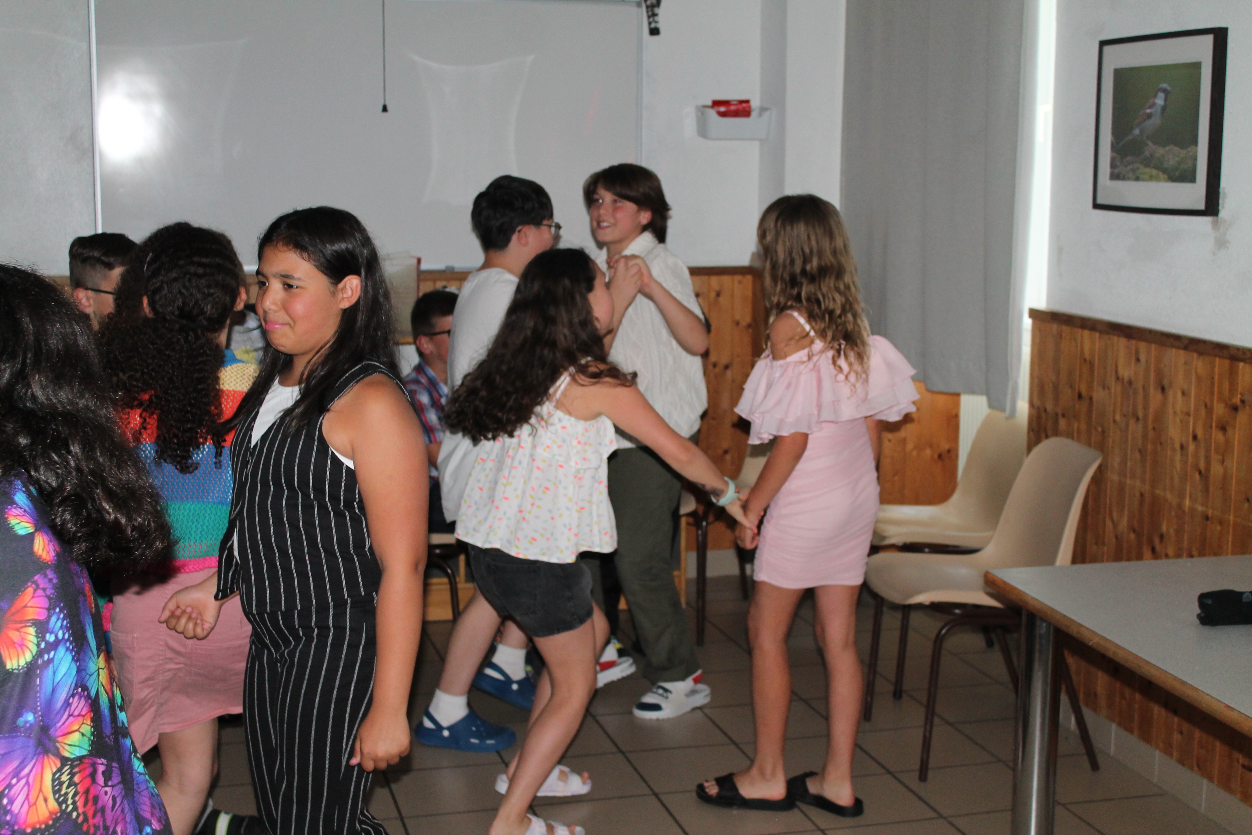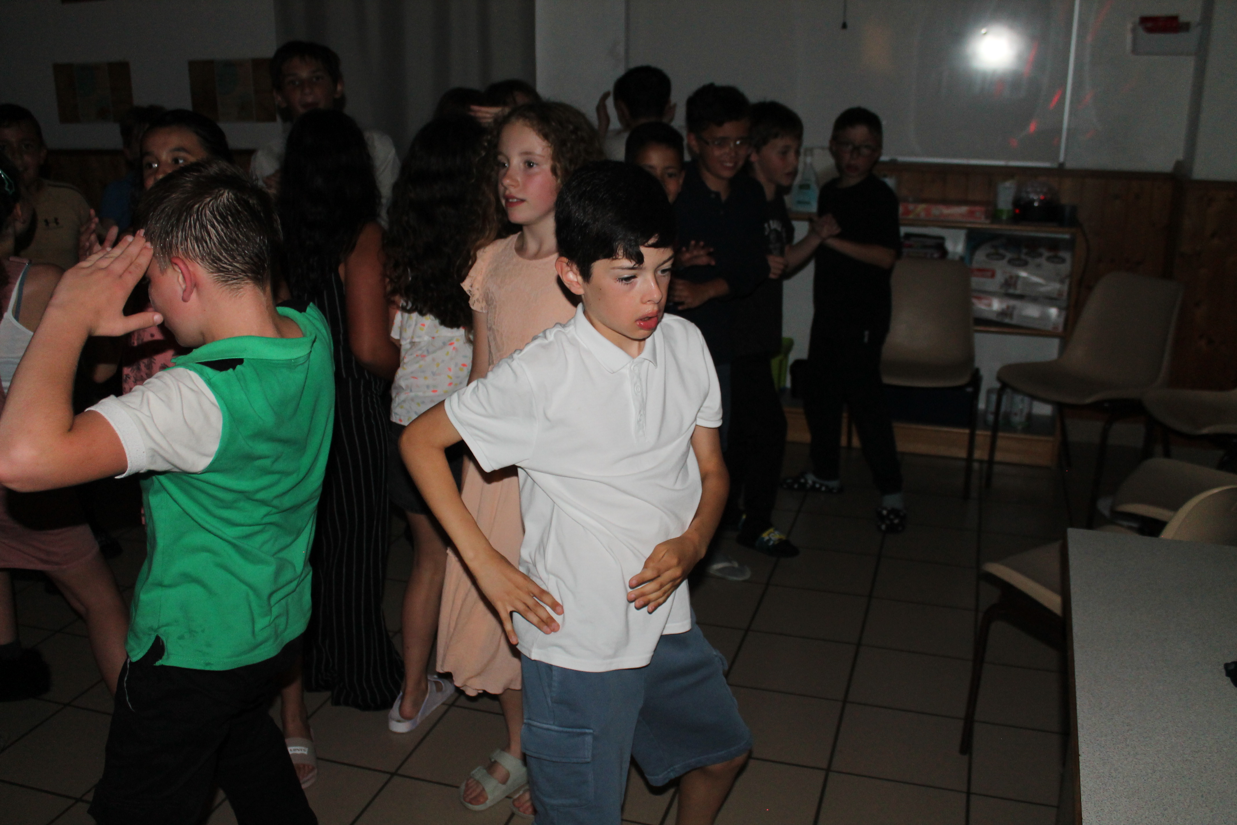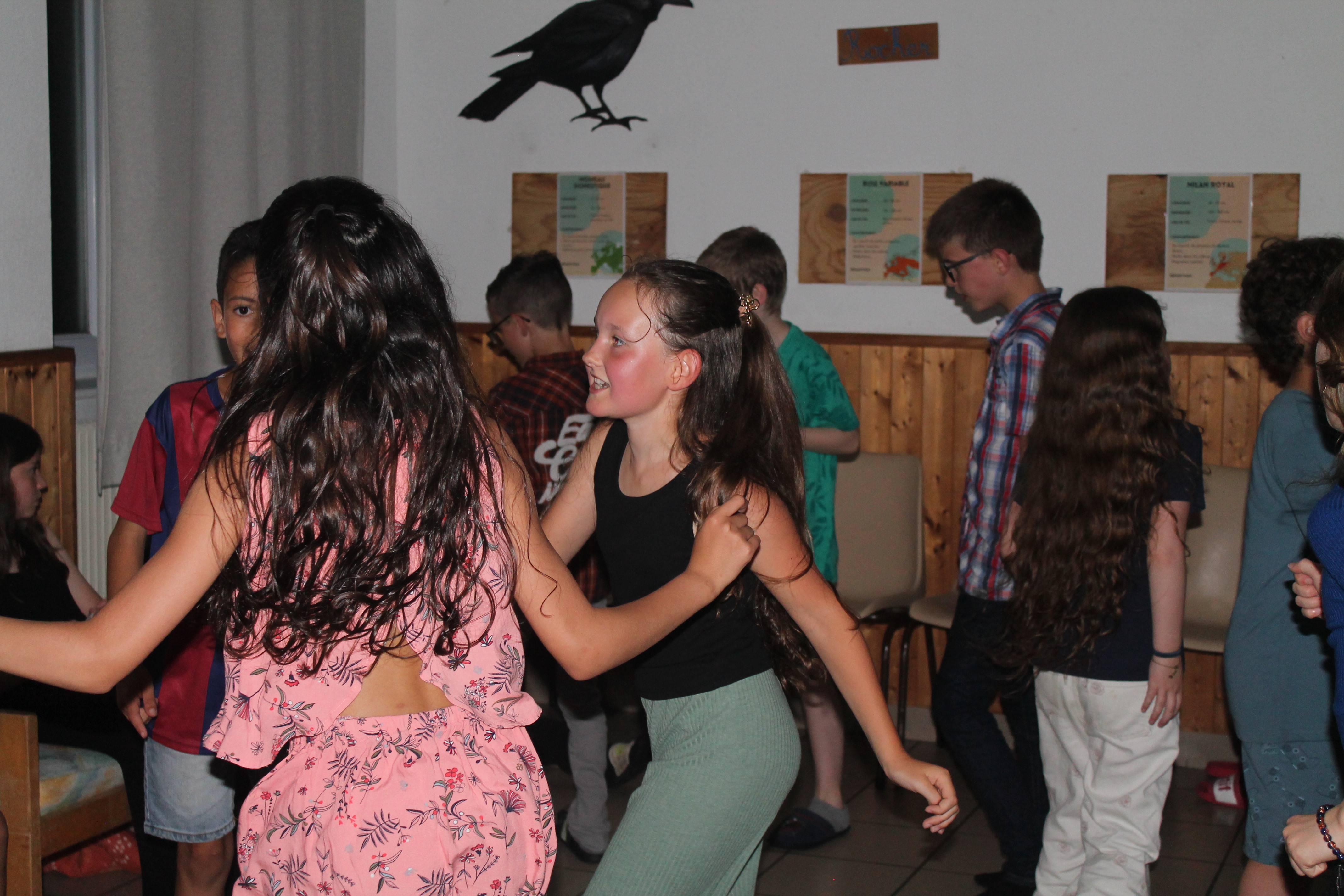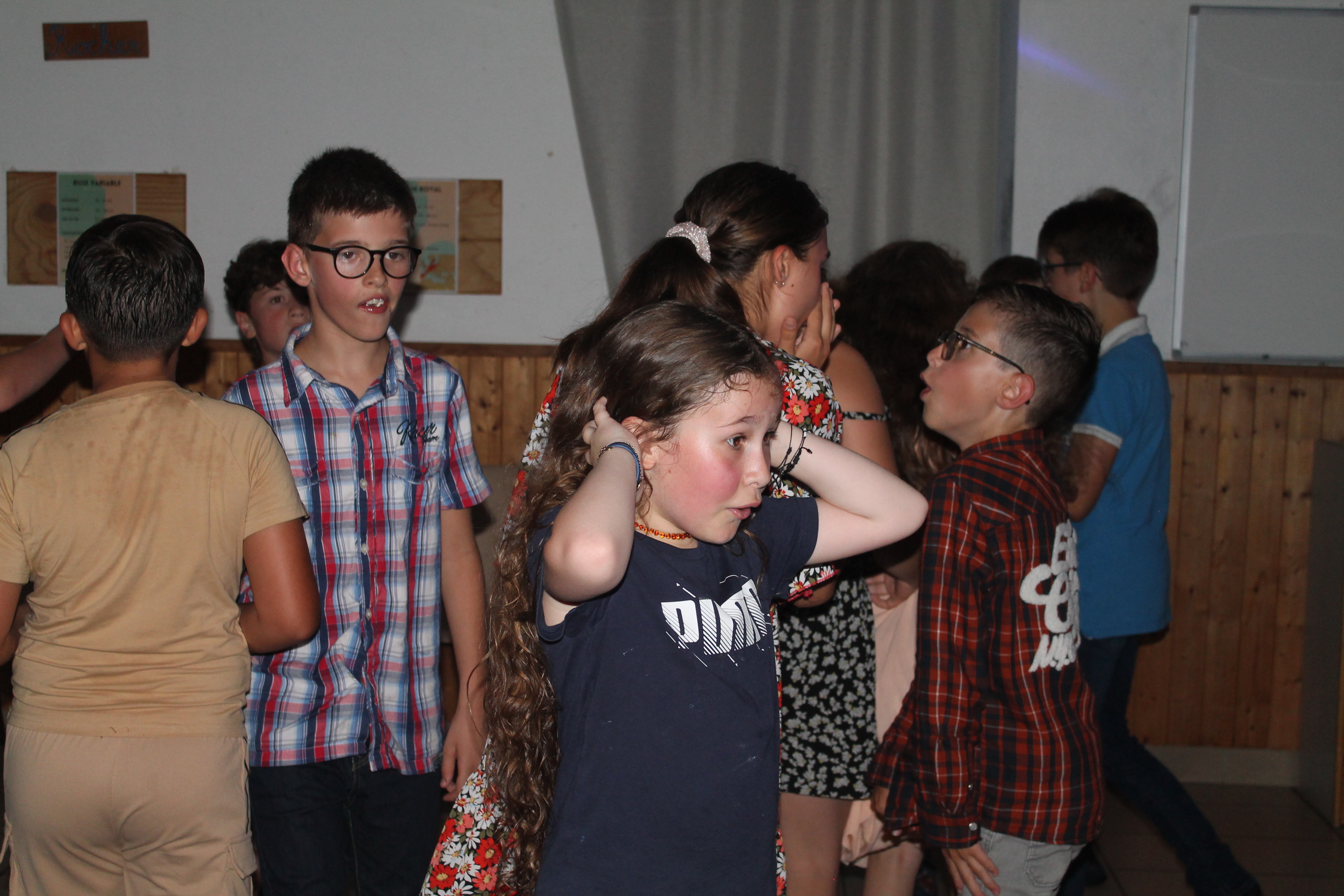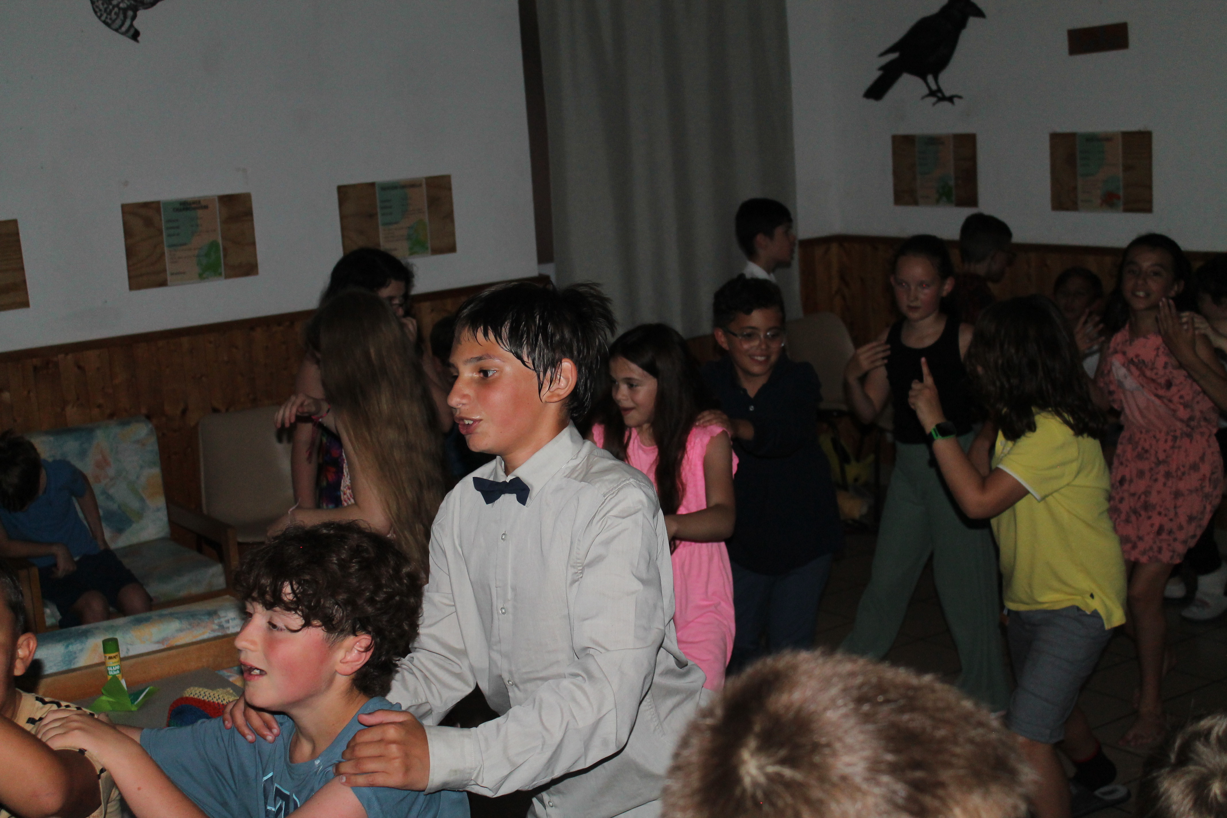 Pendant le repas du soir, Marc et Denis préparaient la boum pour pour mes camarades et moi. Après le repas nous sommes allé nous brosser les dents. Puis après notre brossage de dents nous sommes descendus dans le salle de la boum pour profiter. Aussi il y avait des bonbons, des boissons et de la musique. Et nous avons vraiment bien profité.