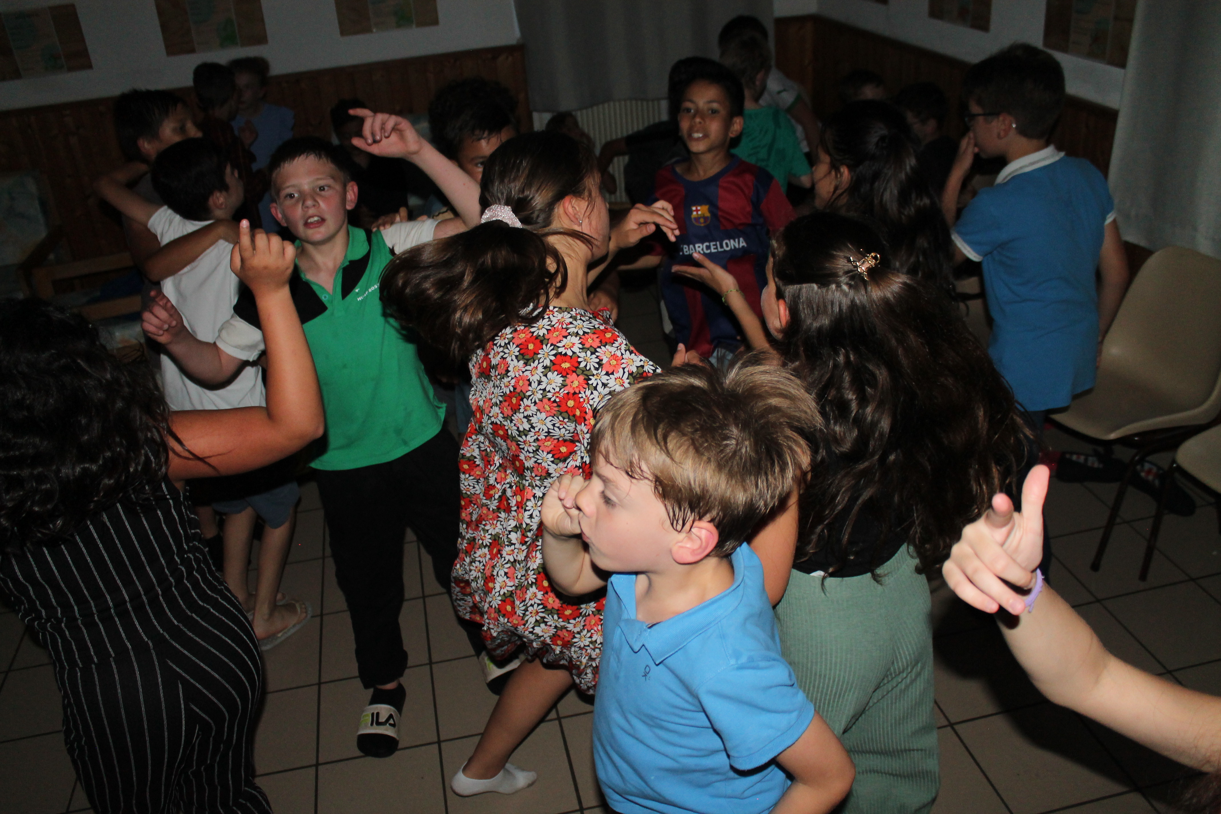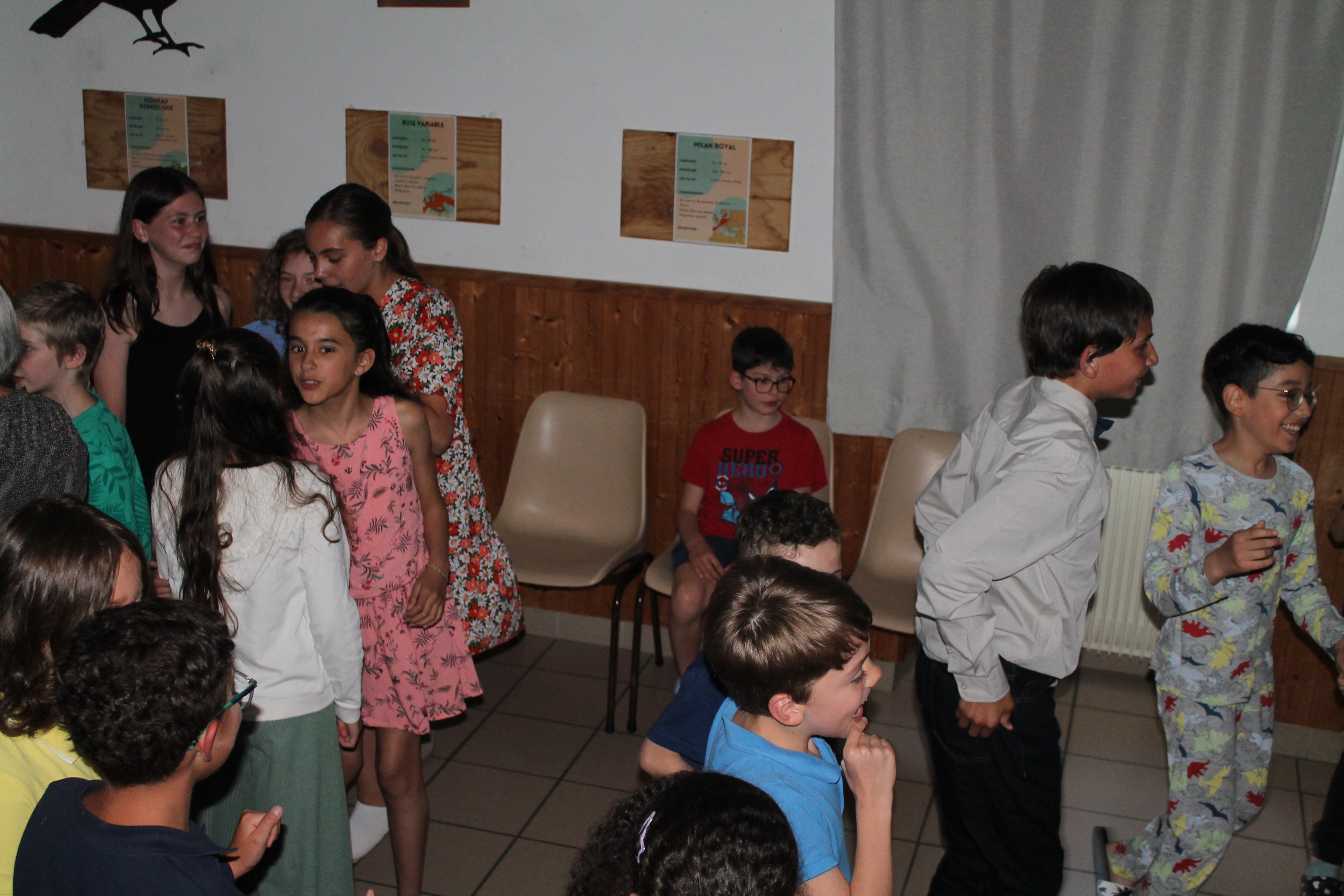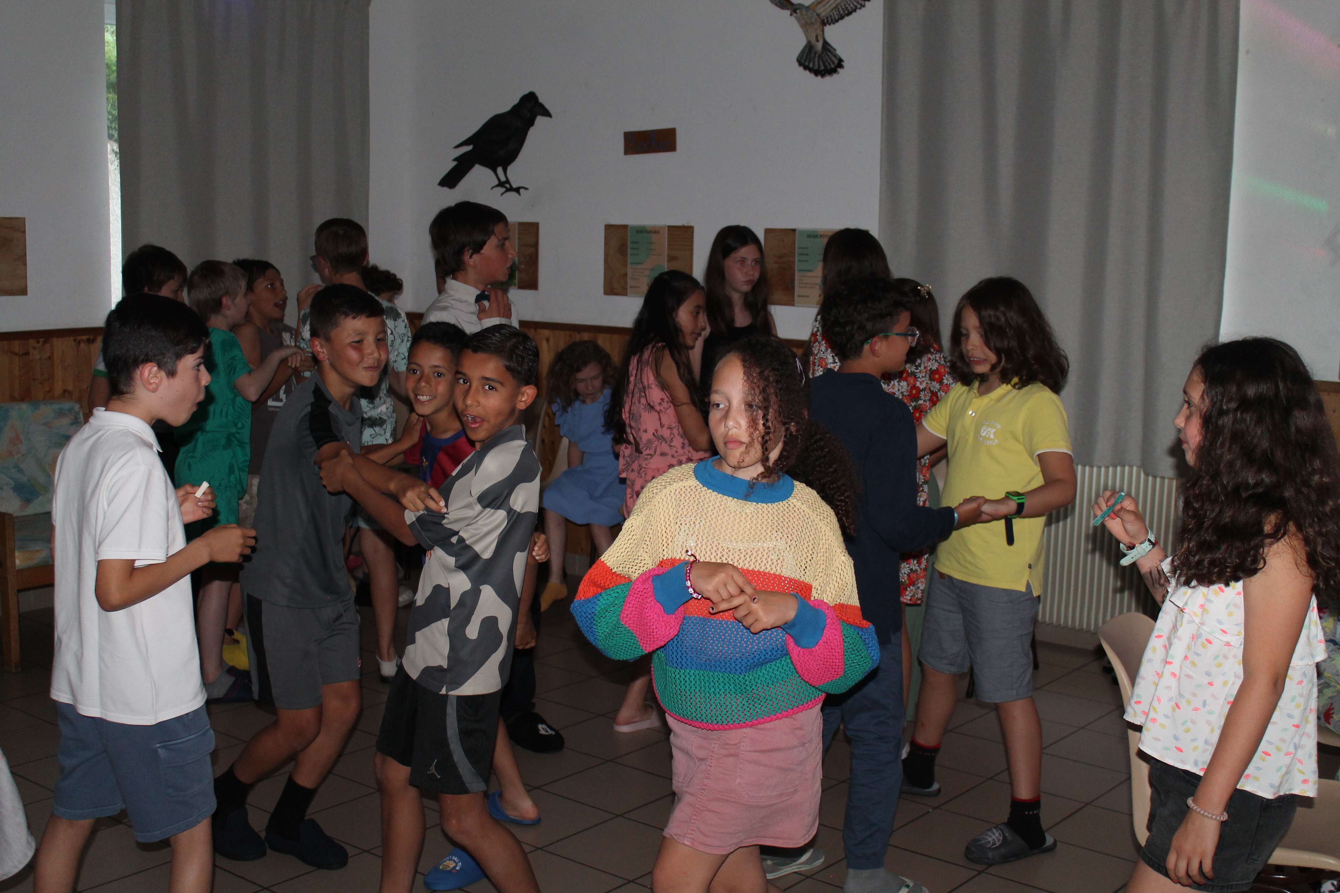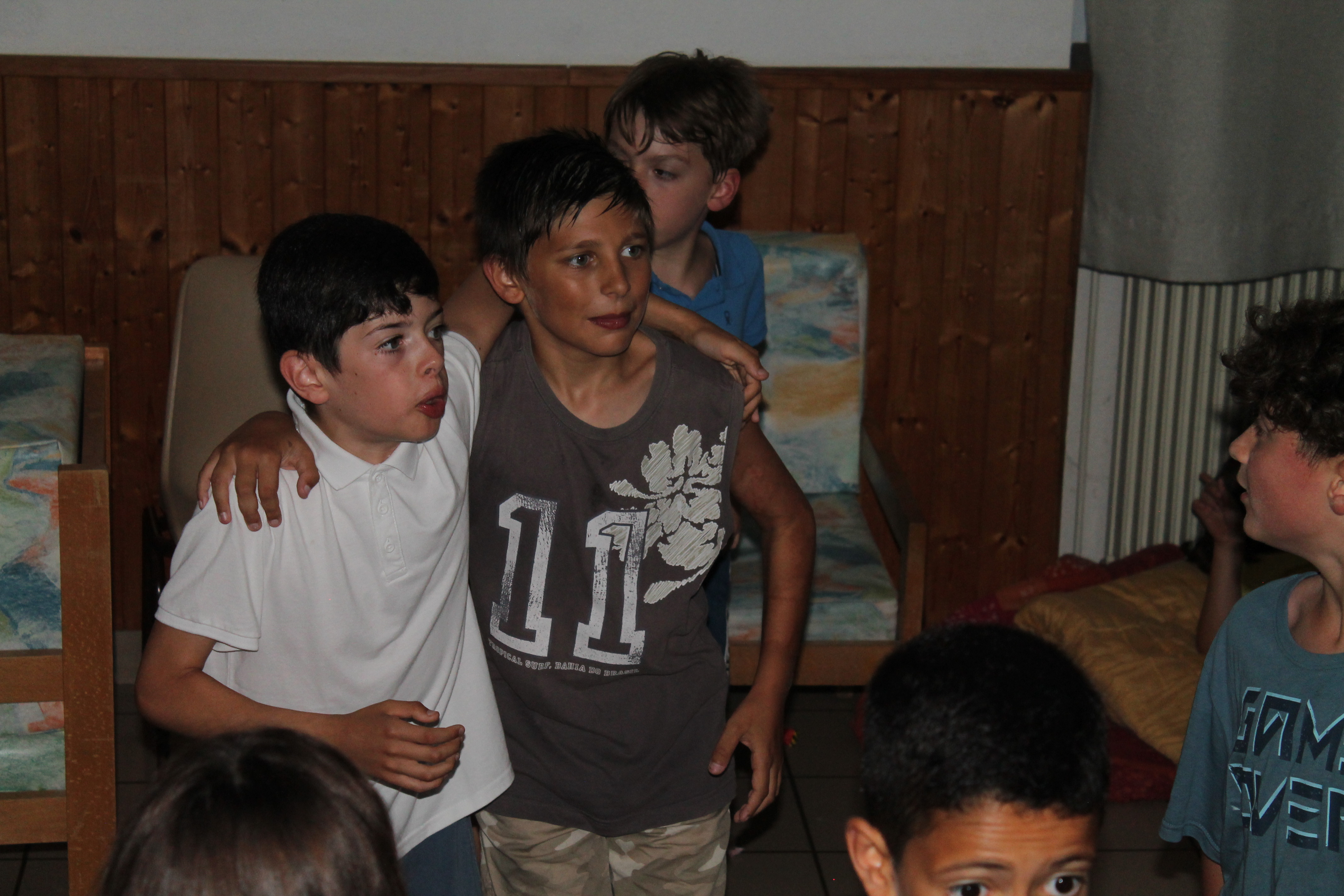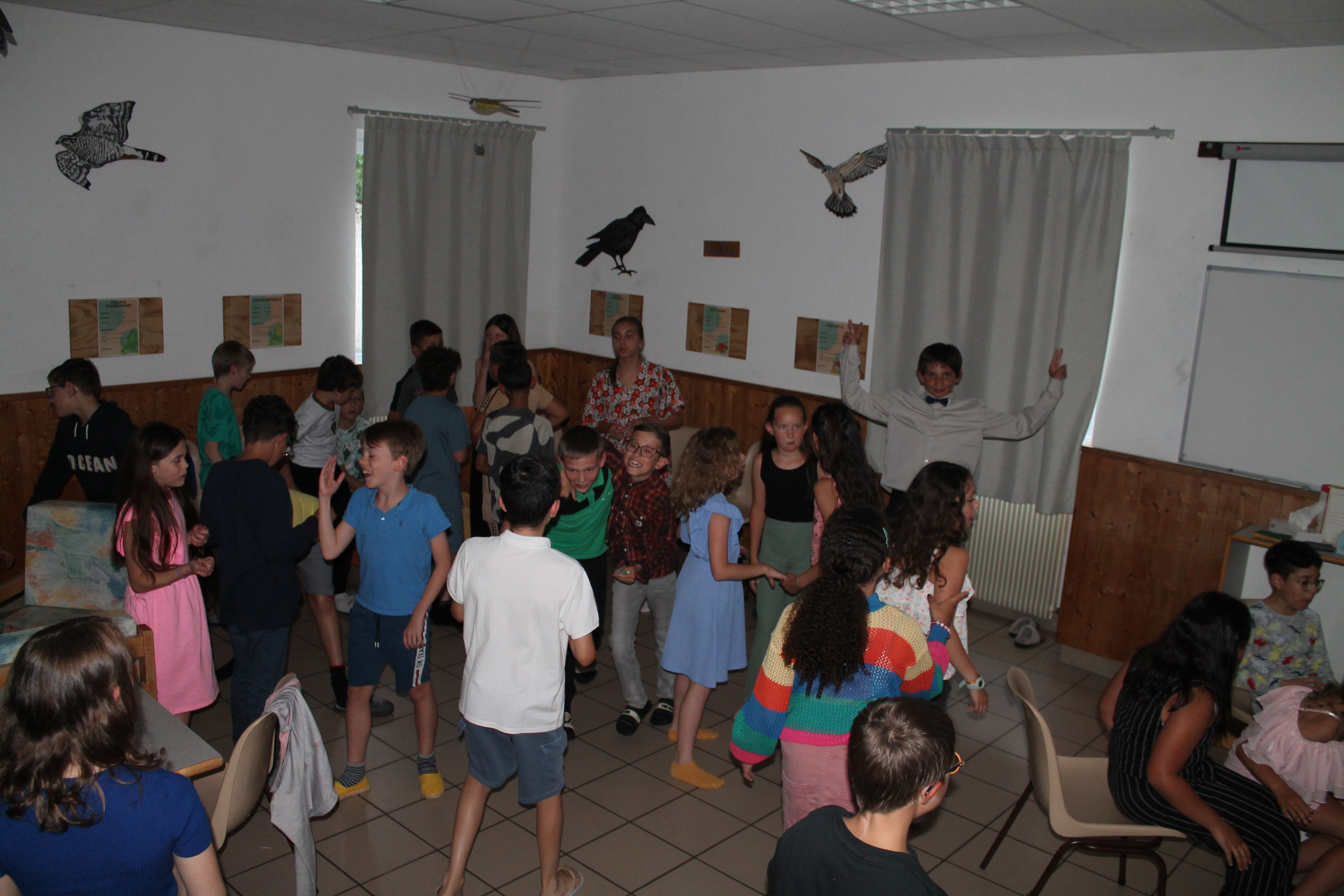 Pendant le repas du soir, Marc et Denis préparaient la boum pour pour mes camarades et moi. Après le repas nous sommes allé nous brosser les dents. Puis après notre brossage de dents nous sommes descendus dans le salle de la boum pour profiter. Aussi il y avait des bonbons, des boissons et de la musique. Et nous avons vraiment bien profité.