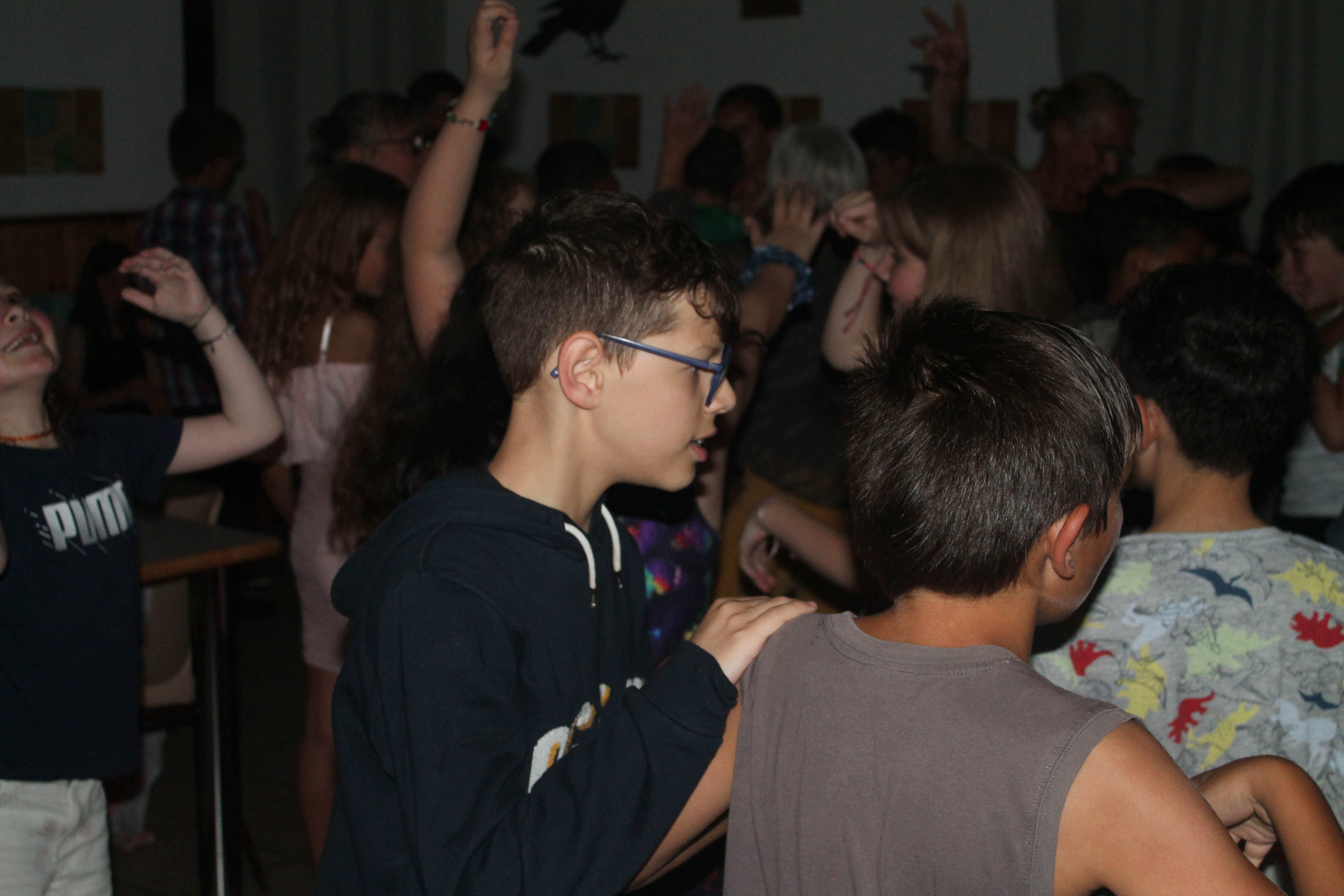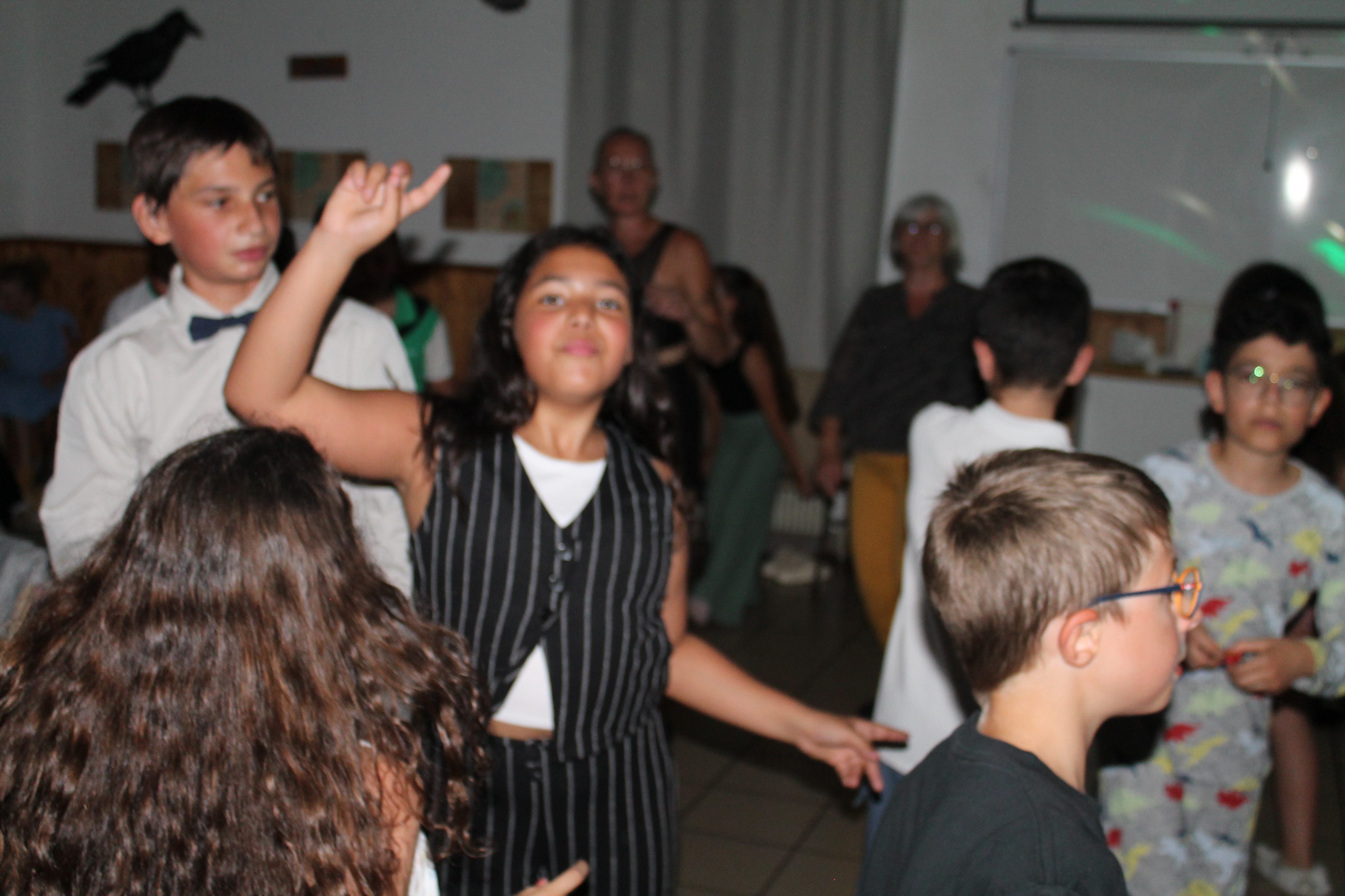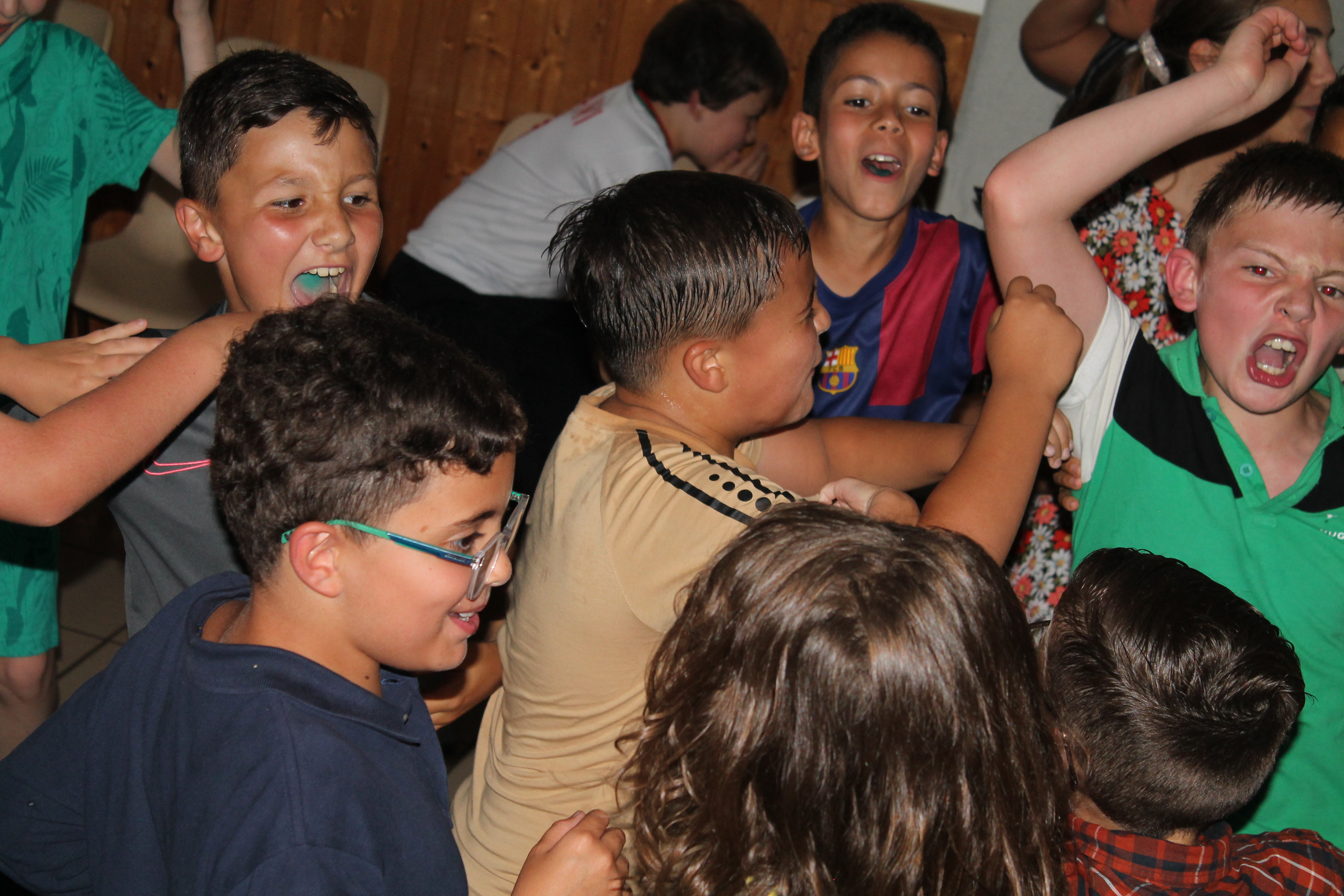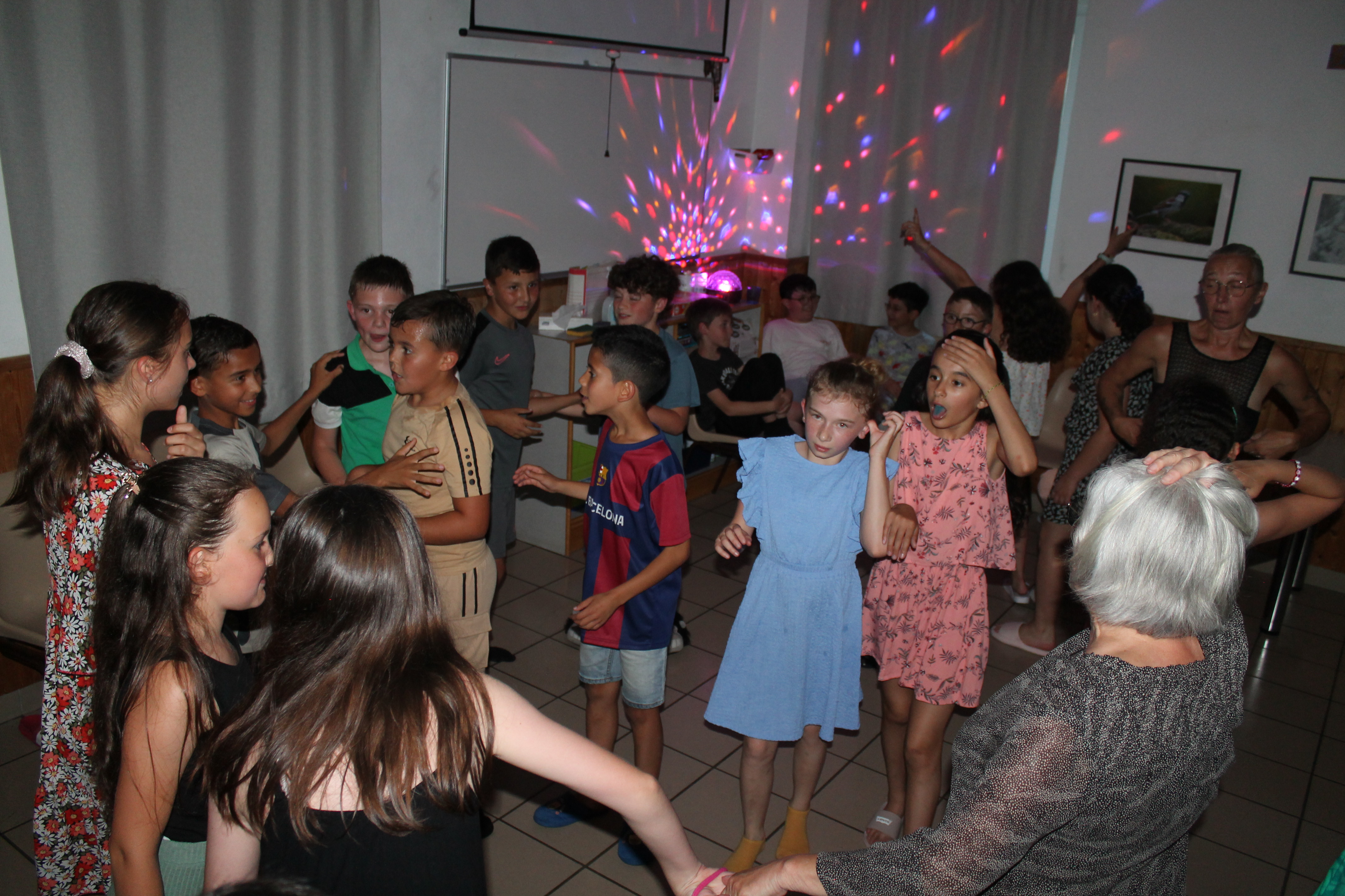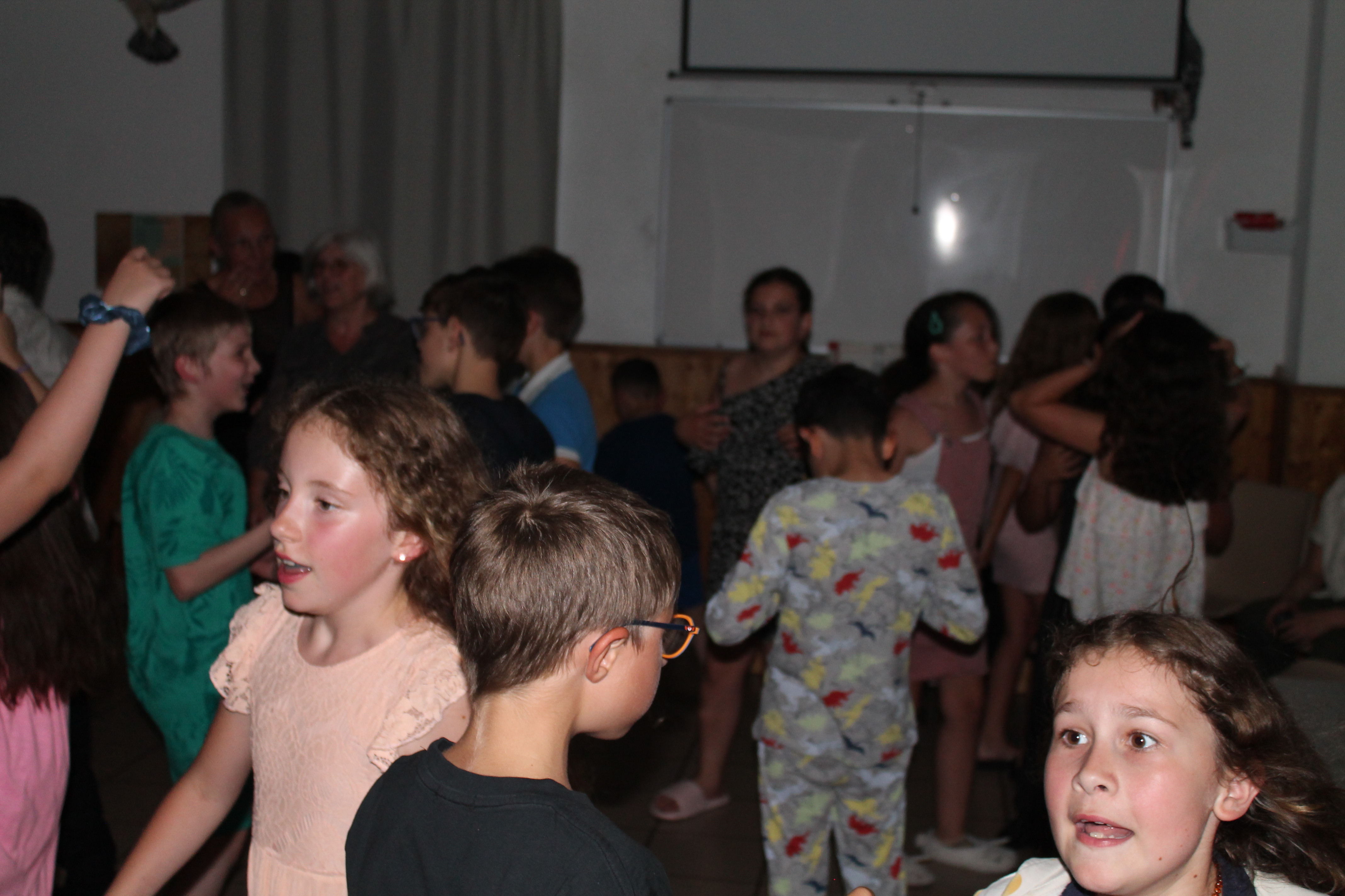 Pendant le repas du soir, Marc et Denis préparaient la boum pour pour mes camarades et moi. Après le repas nous sommes allé nous brosser les dents. Puis après notre brossage de dents nous sommes descendus dans le salle de la boum pour profiter. Aussi il y avait des bonbons, des boissons et de la musique. Et nous avons vraiment bien profité.
