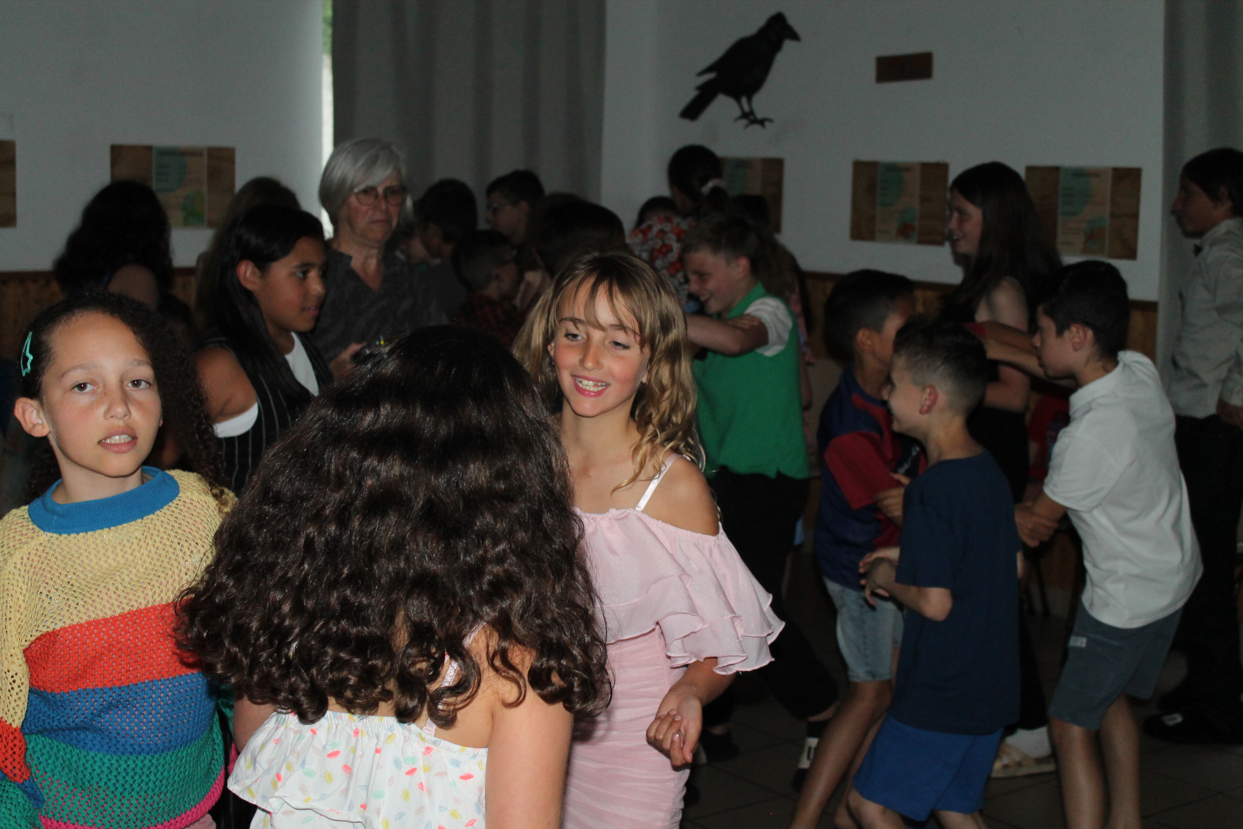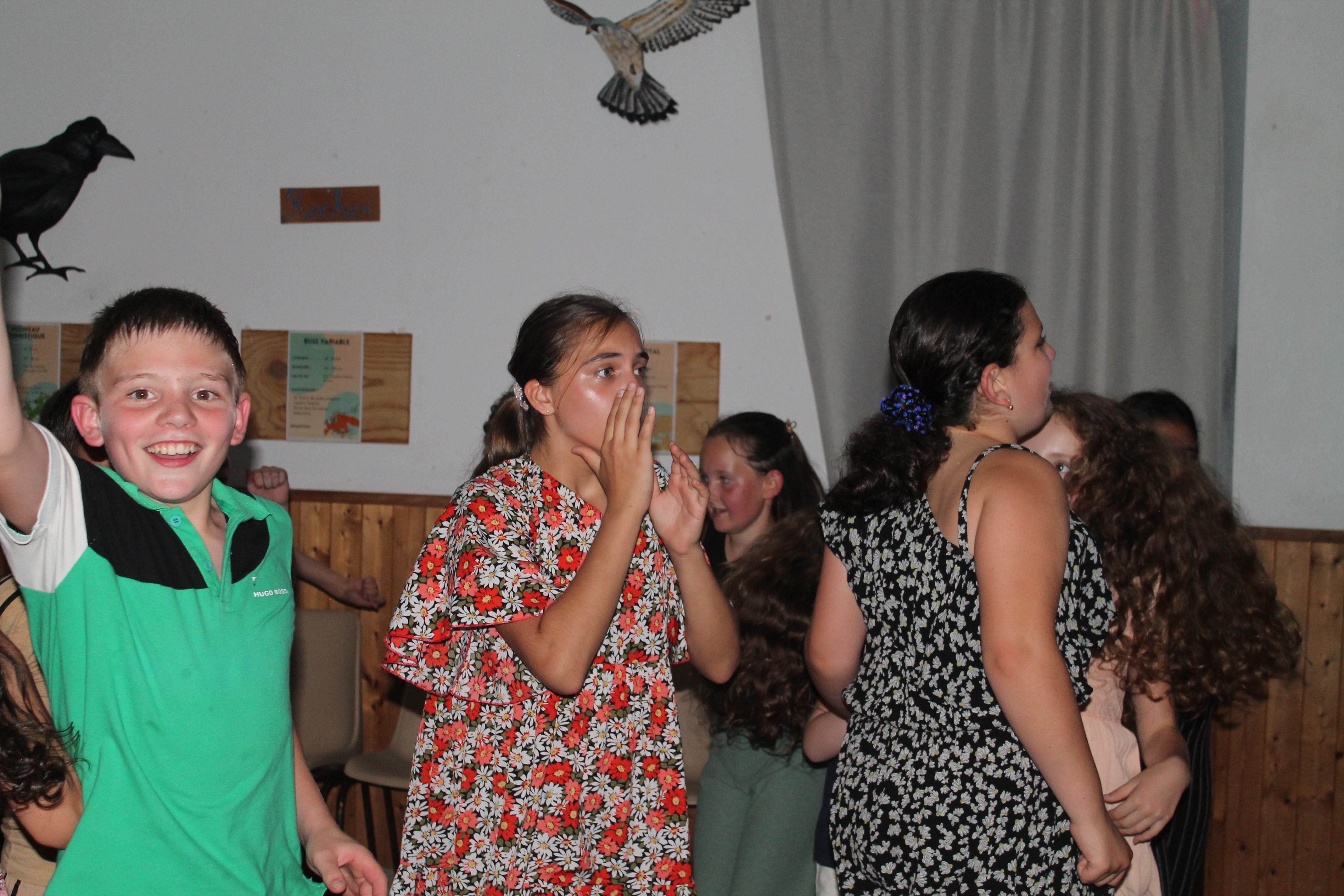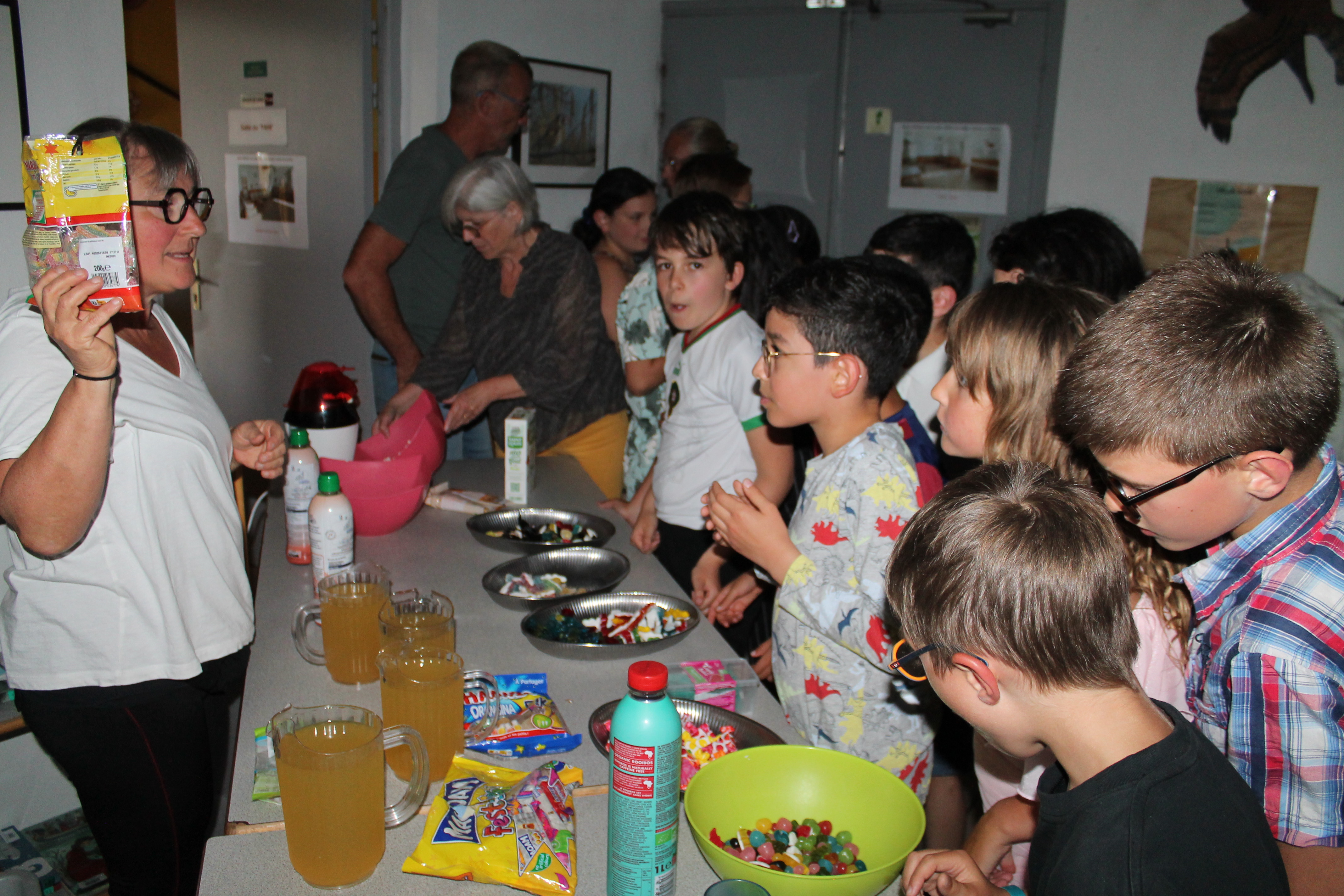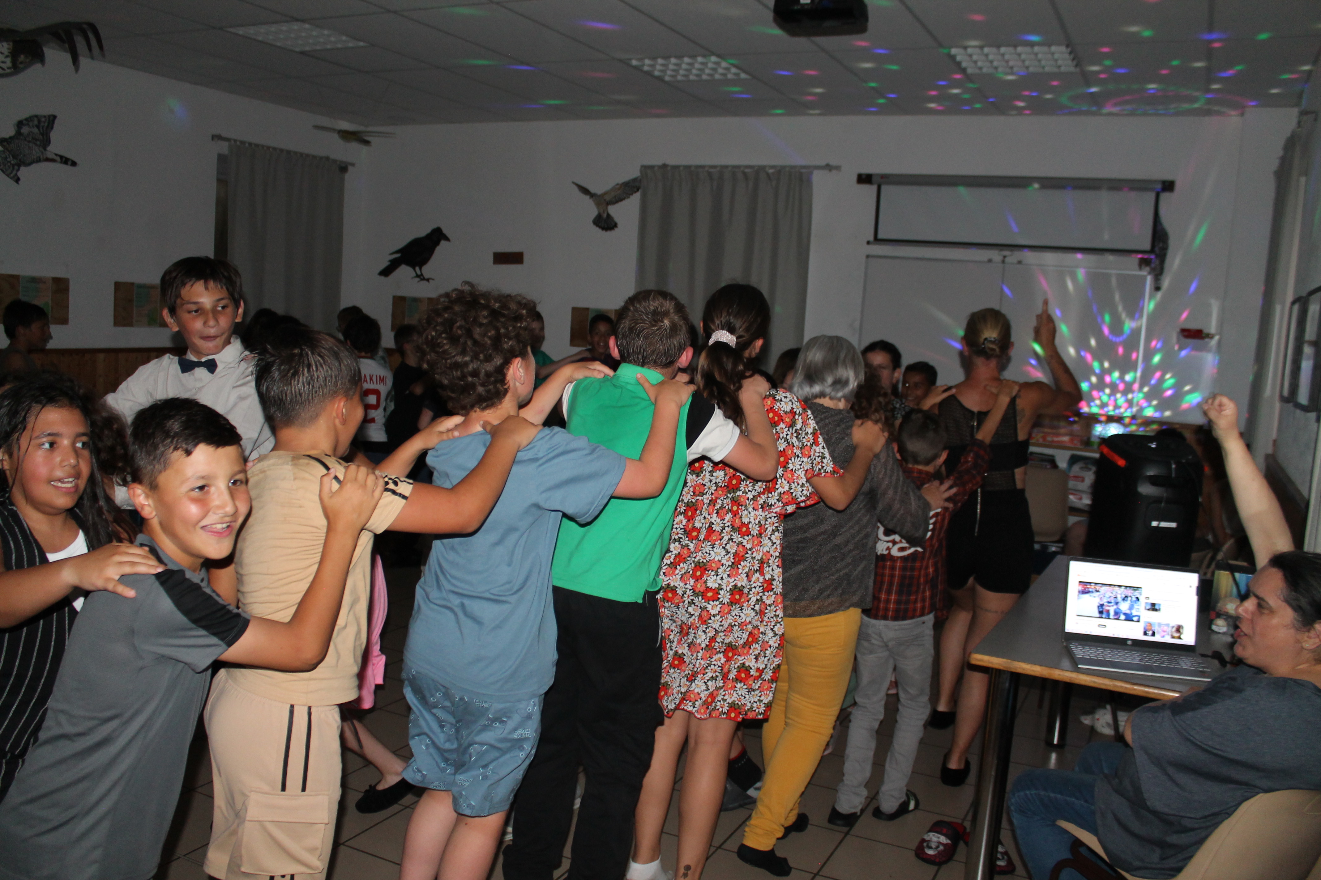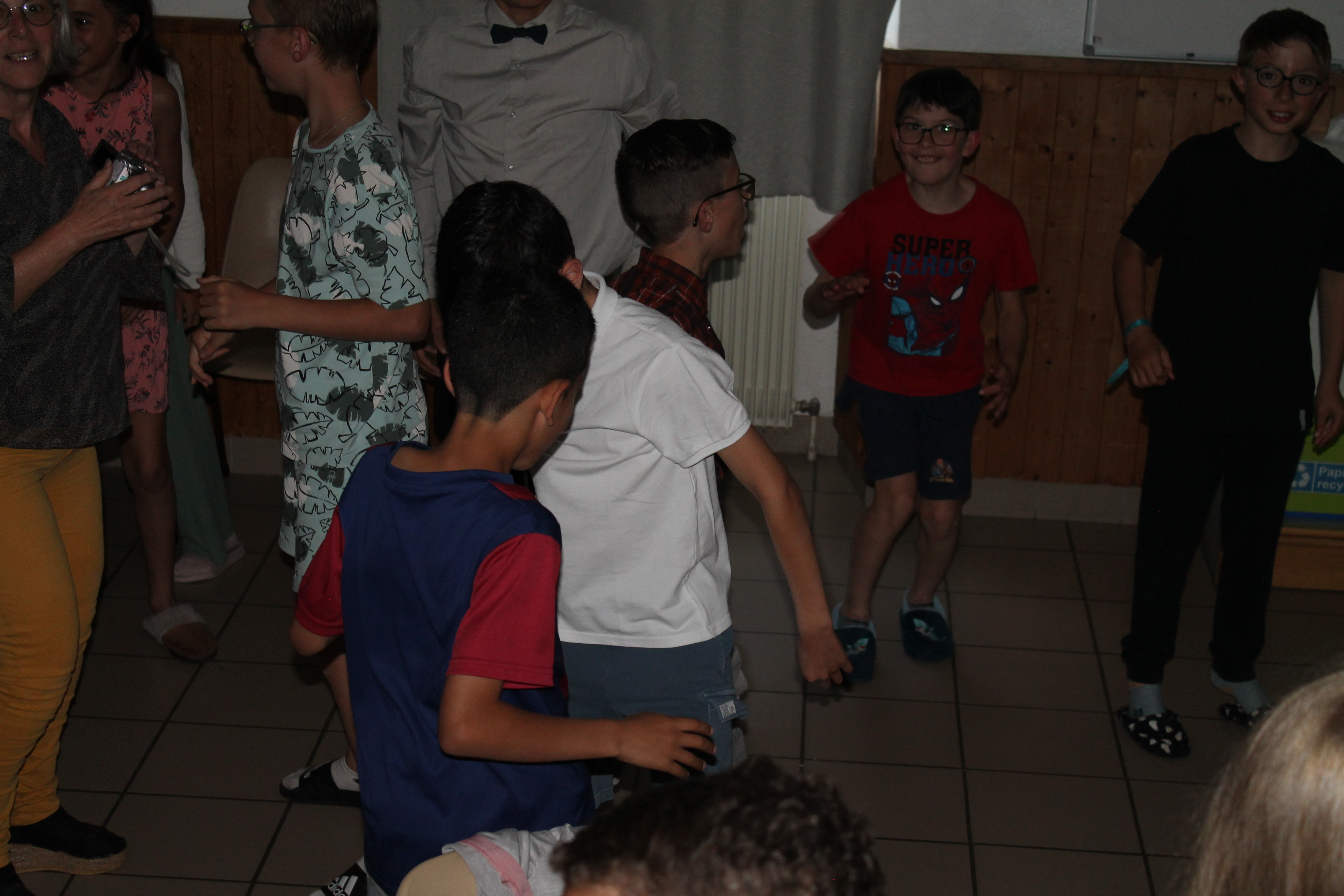 Pendant le repas du soir, Marc et Denis préparaient la boum pour pour mes camarades et moi. Après le repas nous sommes allé nous brosser les dents. Puis après notre brossage de dents nous sommes descendus dans le salle de la boum pour profiter. Aussi il y avait des bonbons, des boissons et de la musique. Et nous avons vraiment bien profité.