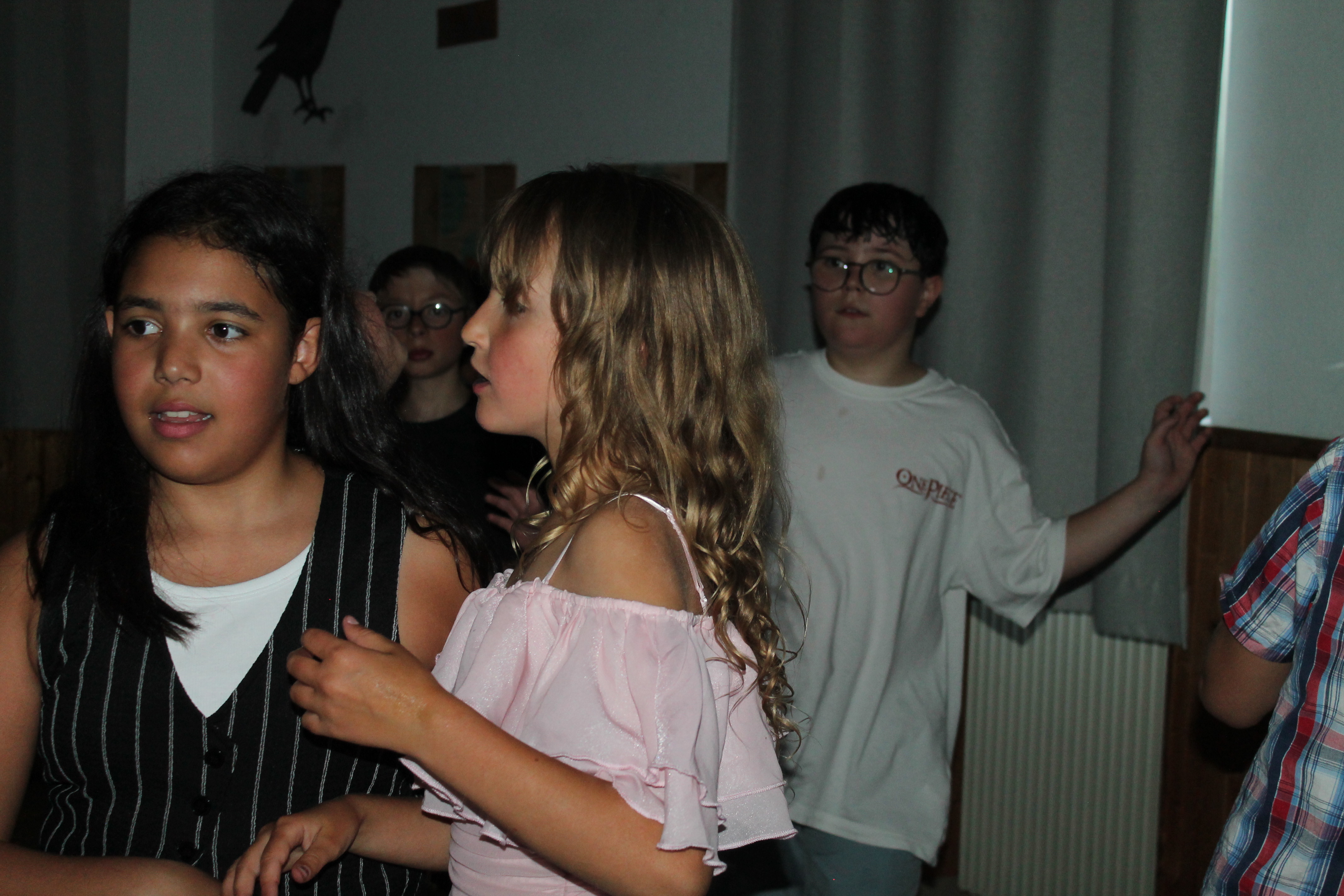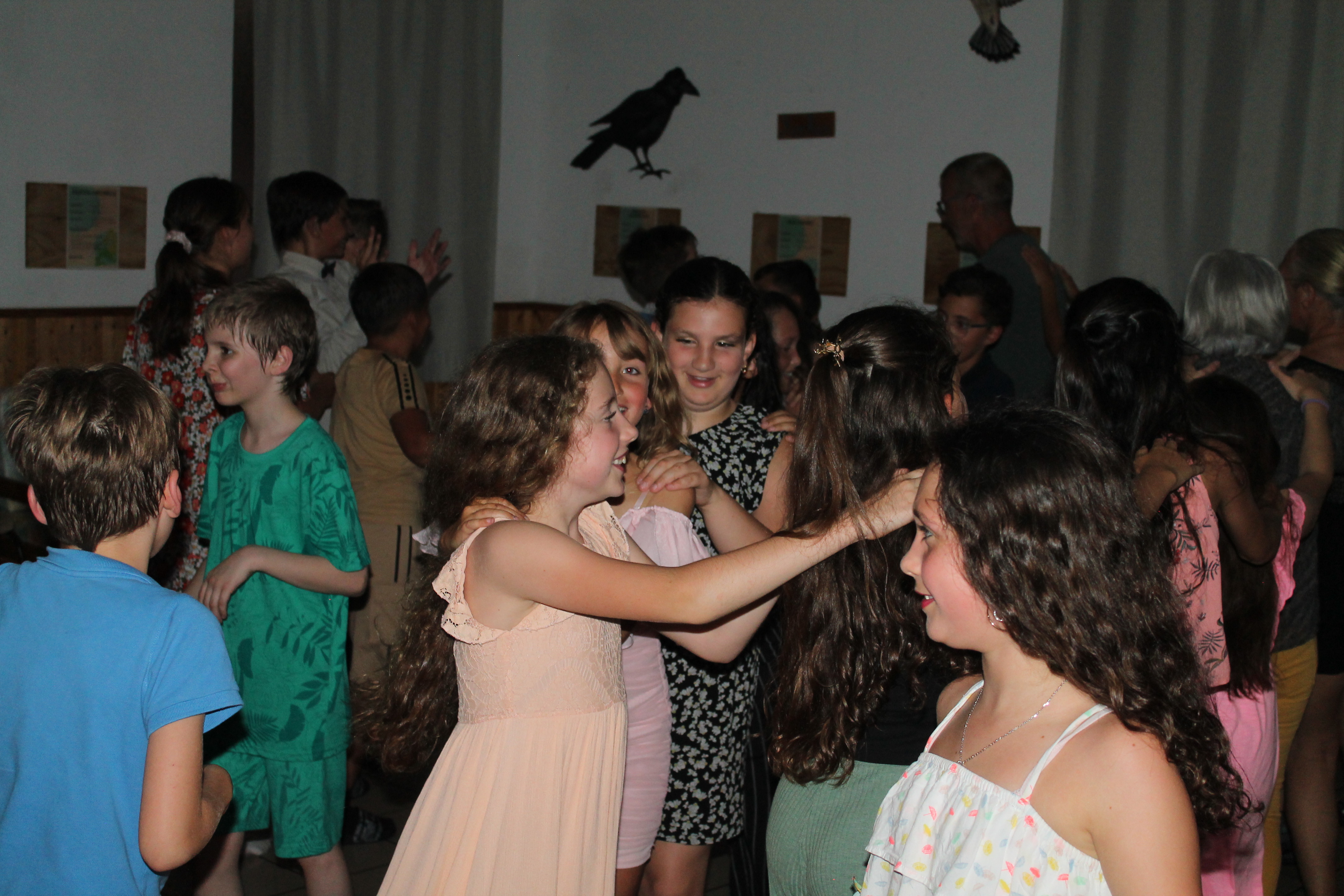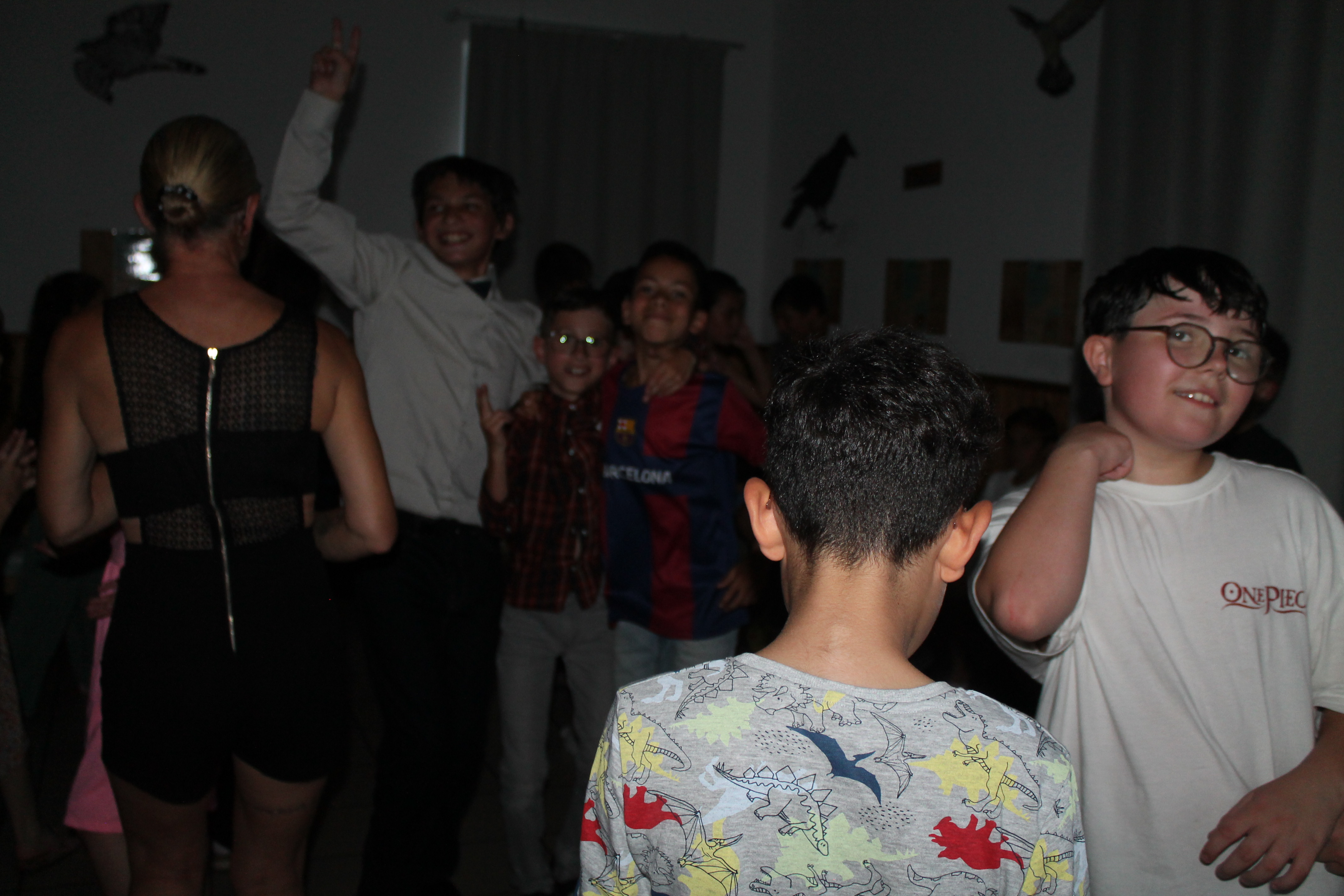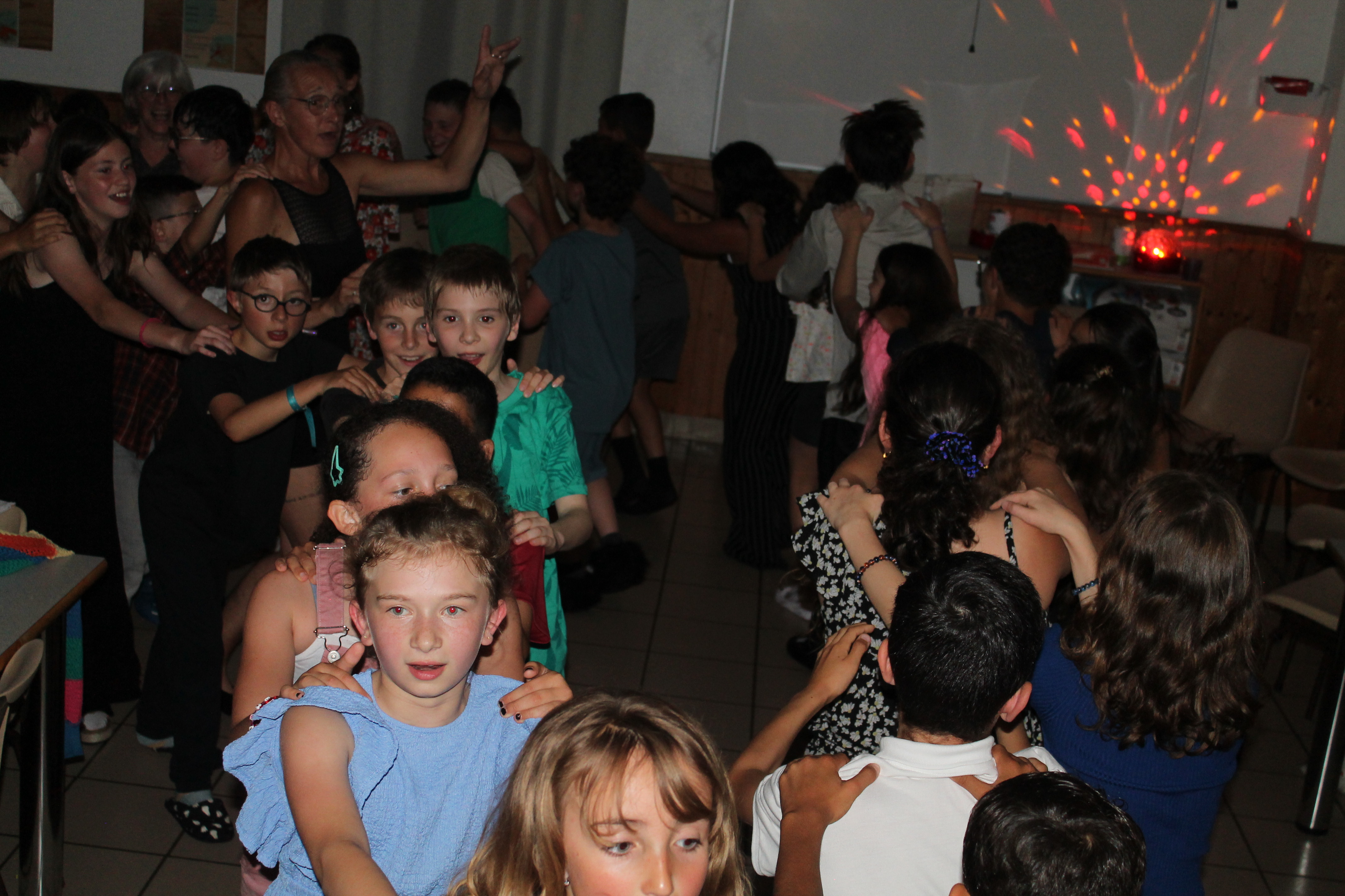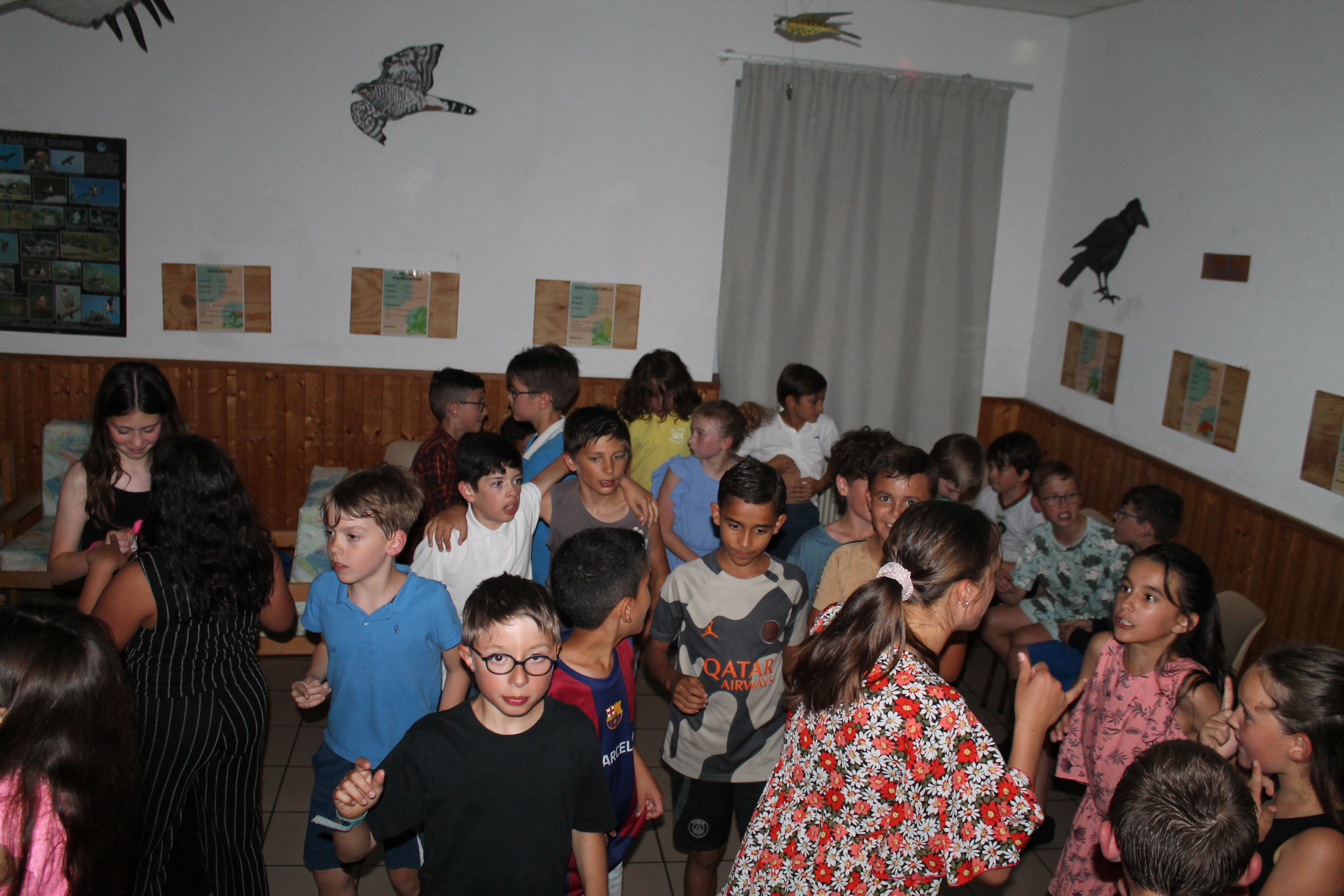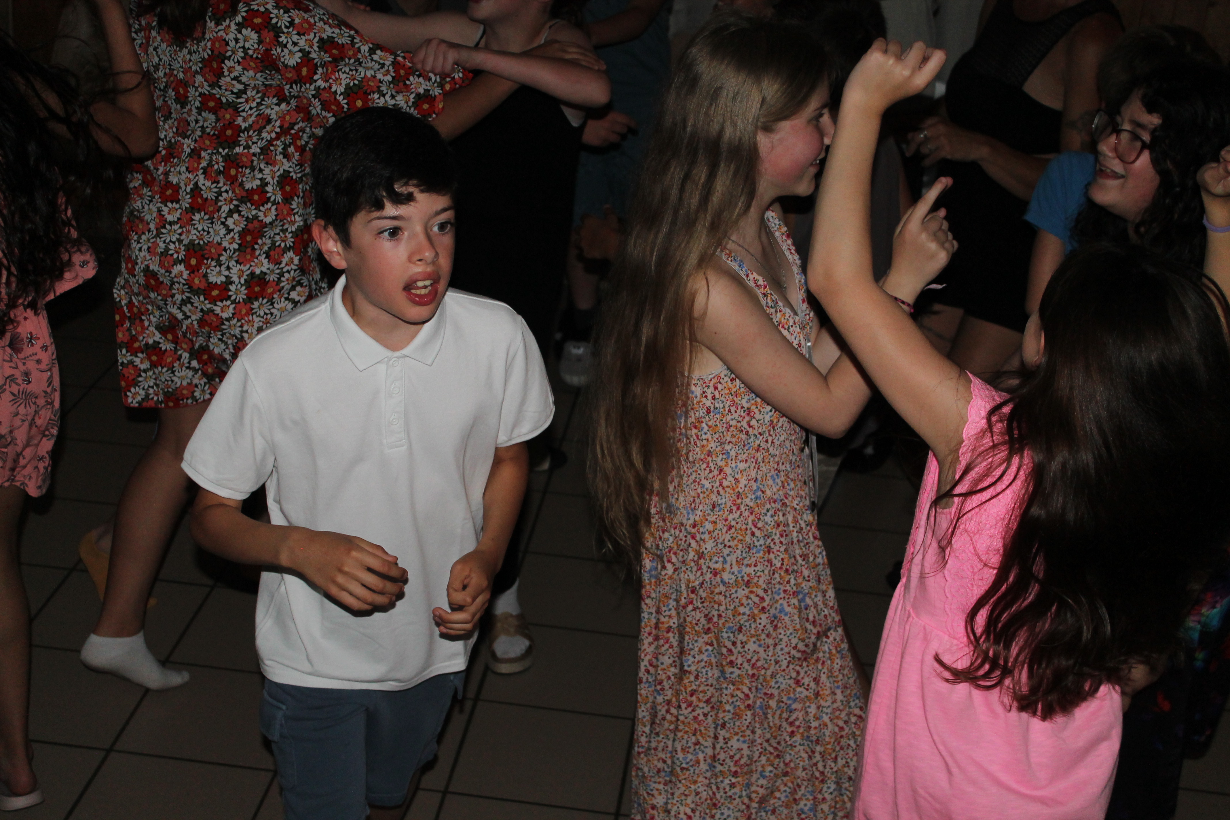 Pendant le repas du soir, Marc et Denis préparaient la boum pour pour mes camarades et moi. Après le repas nous sommes allé nous brosser les dents. Puis après notre brossage de dents nous sommes descendus dans le salle de la boum pour profiter. Aussi il y avait des bonbons, des boissons et de la musique. Et nous avons vraiment bien profité.