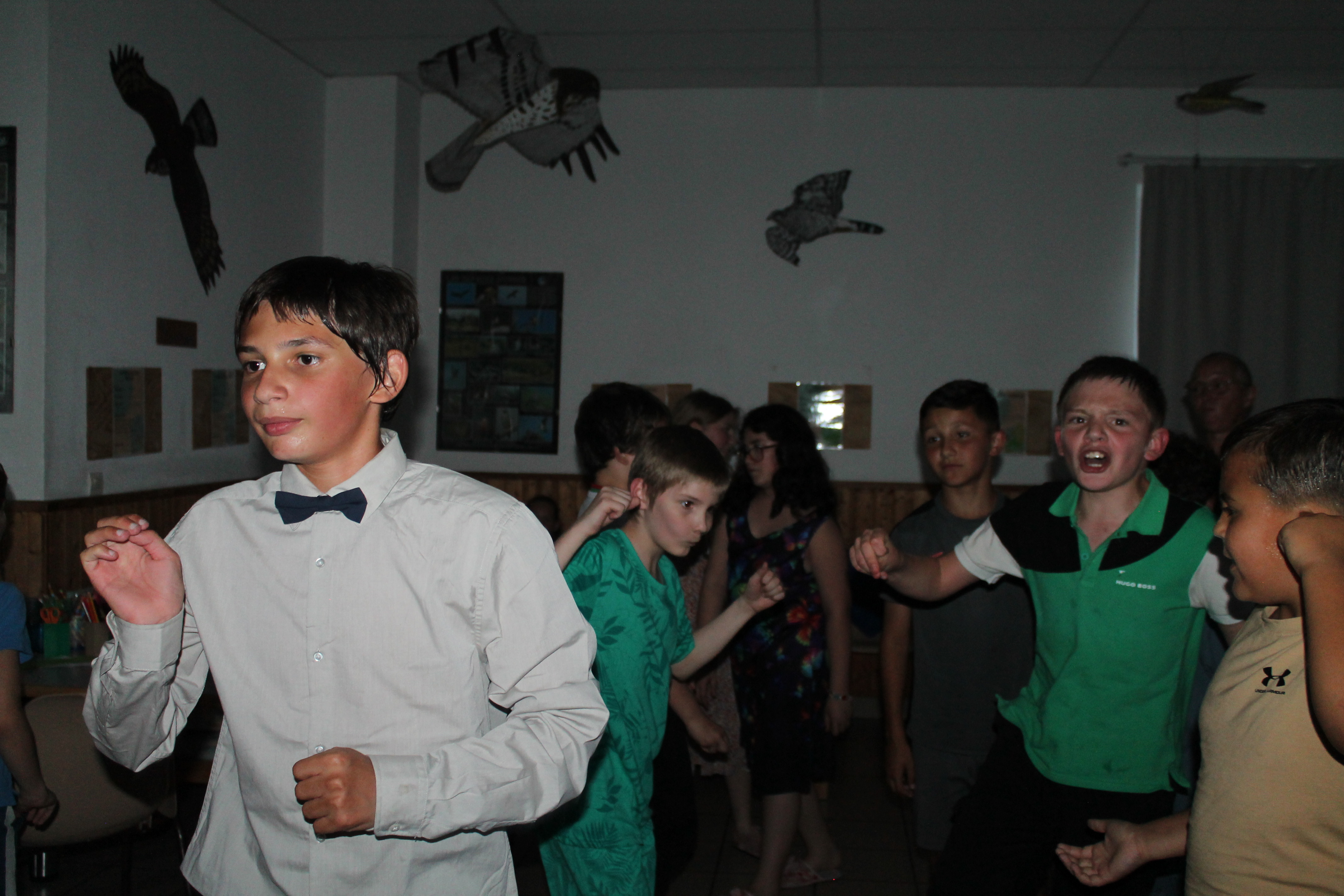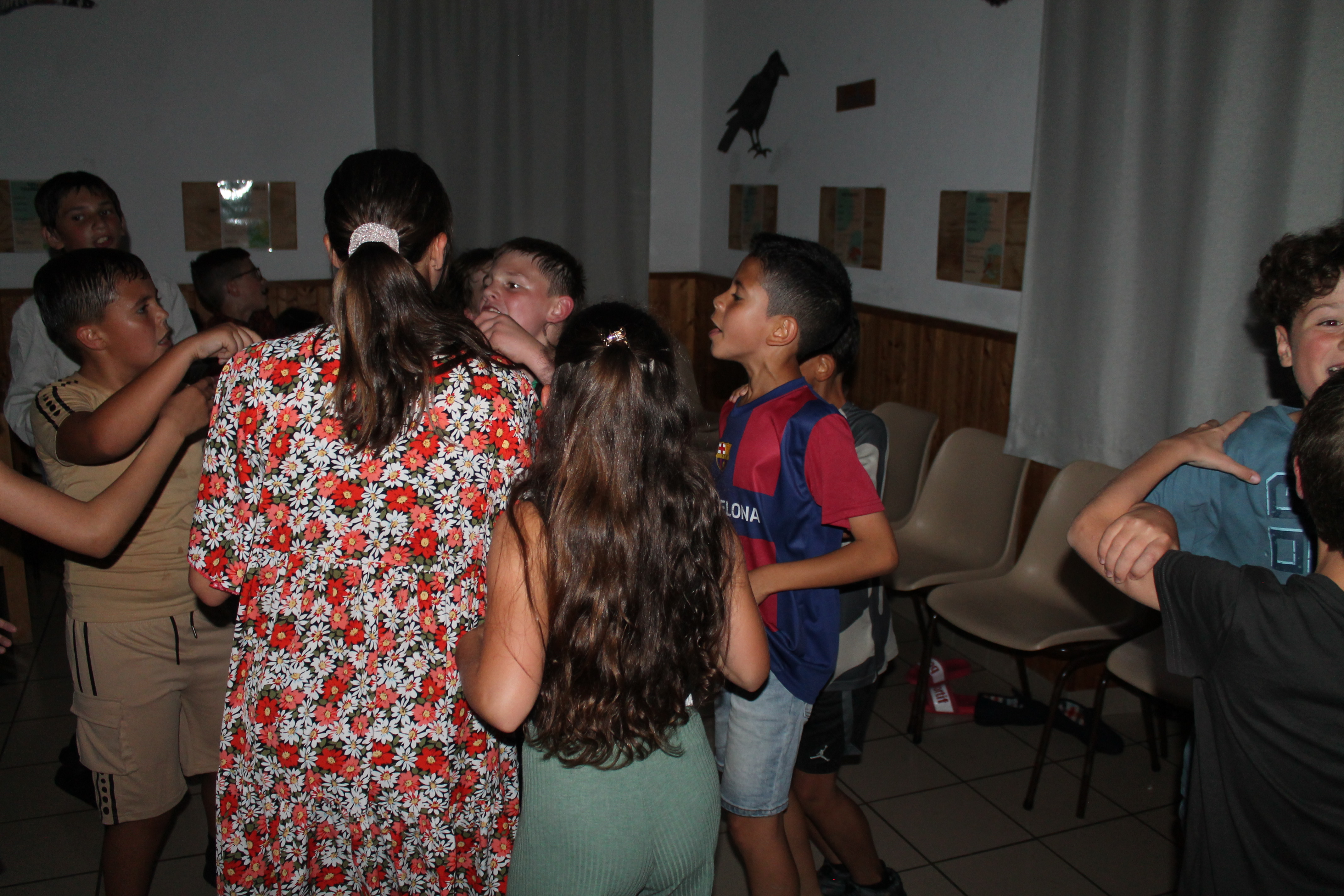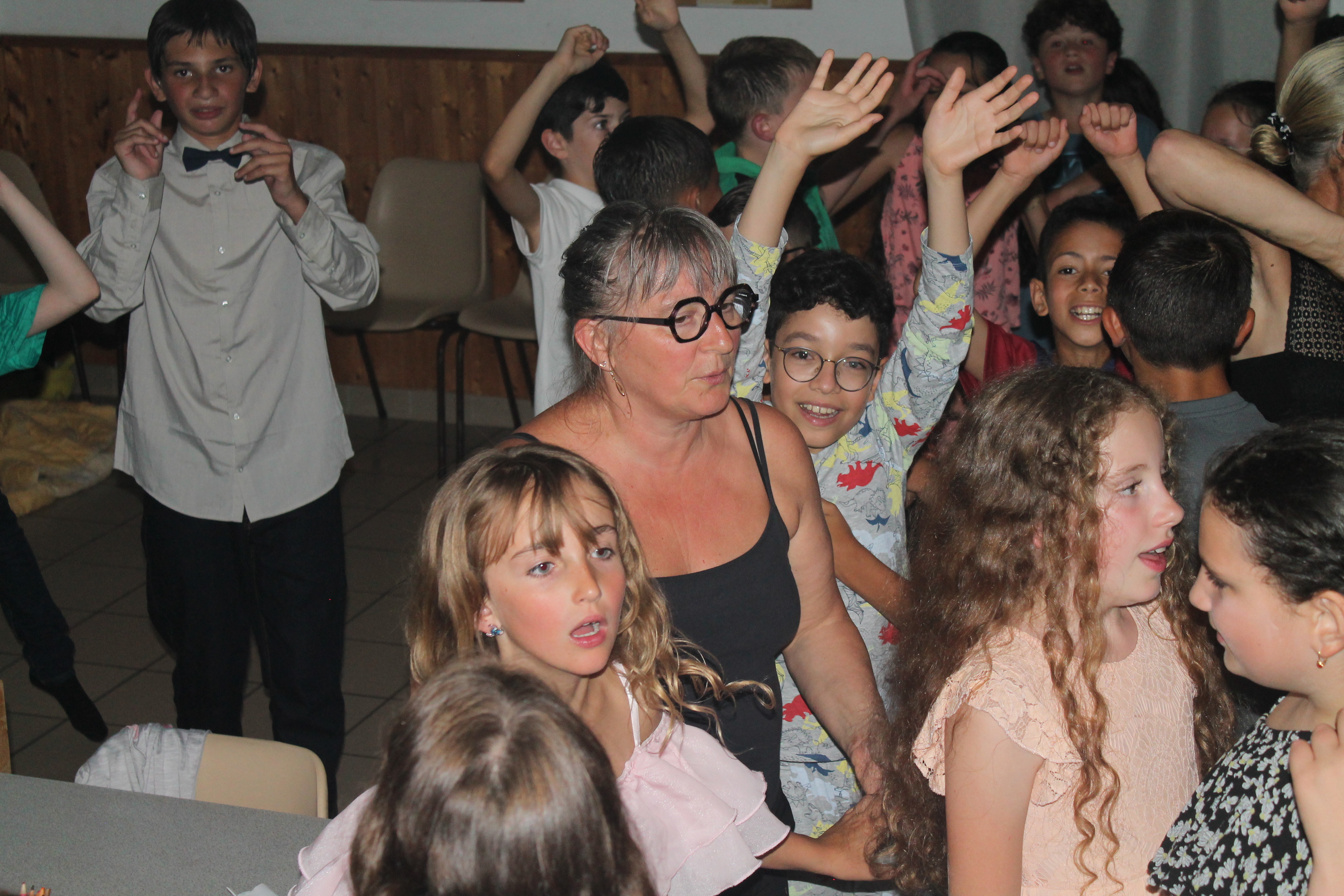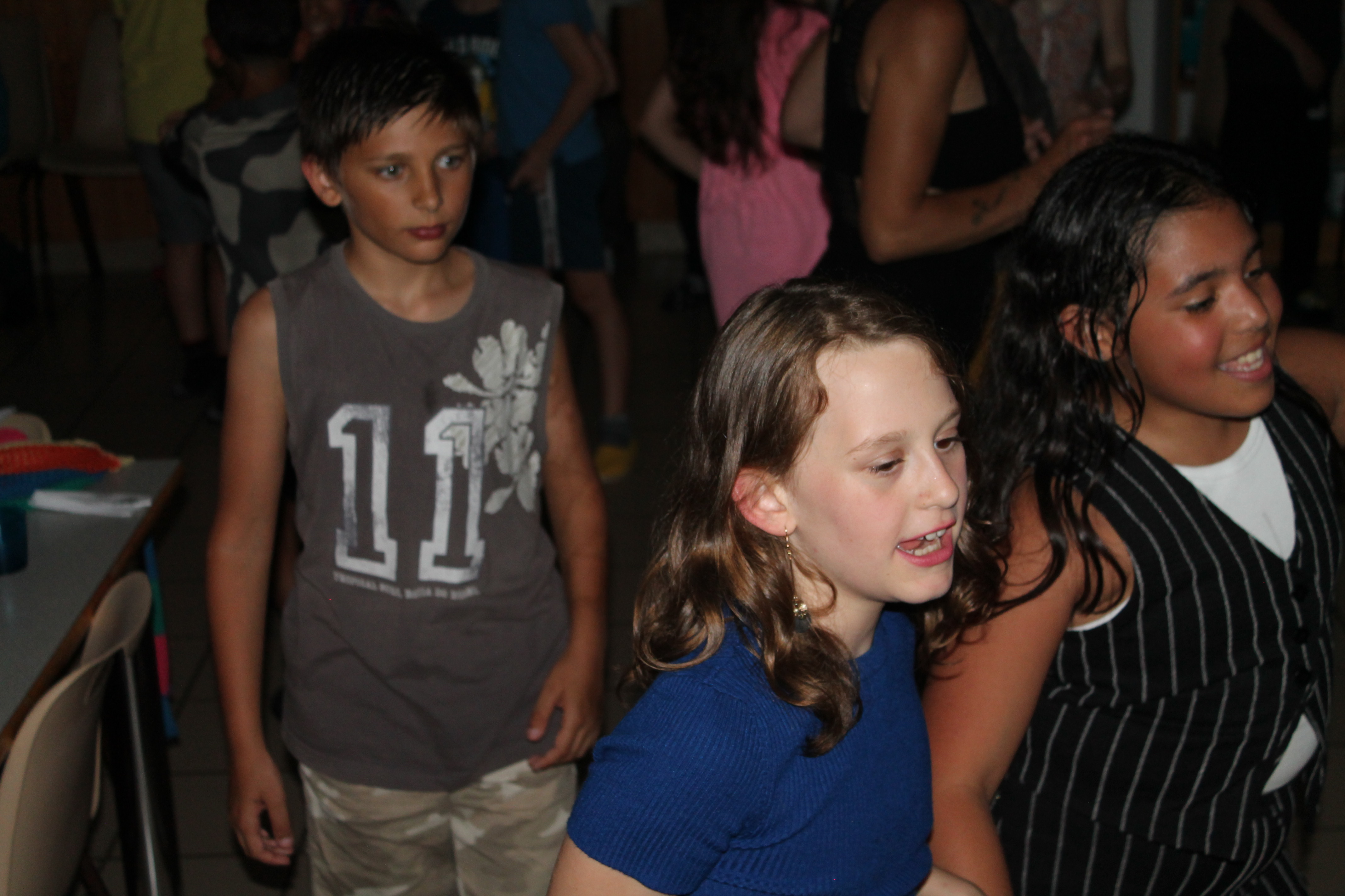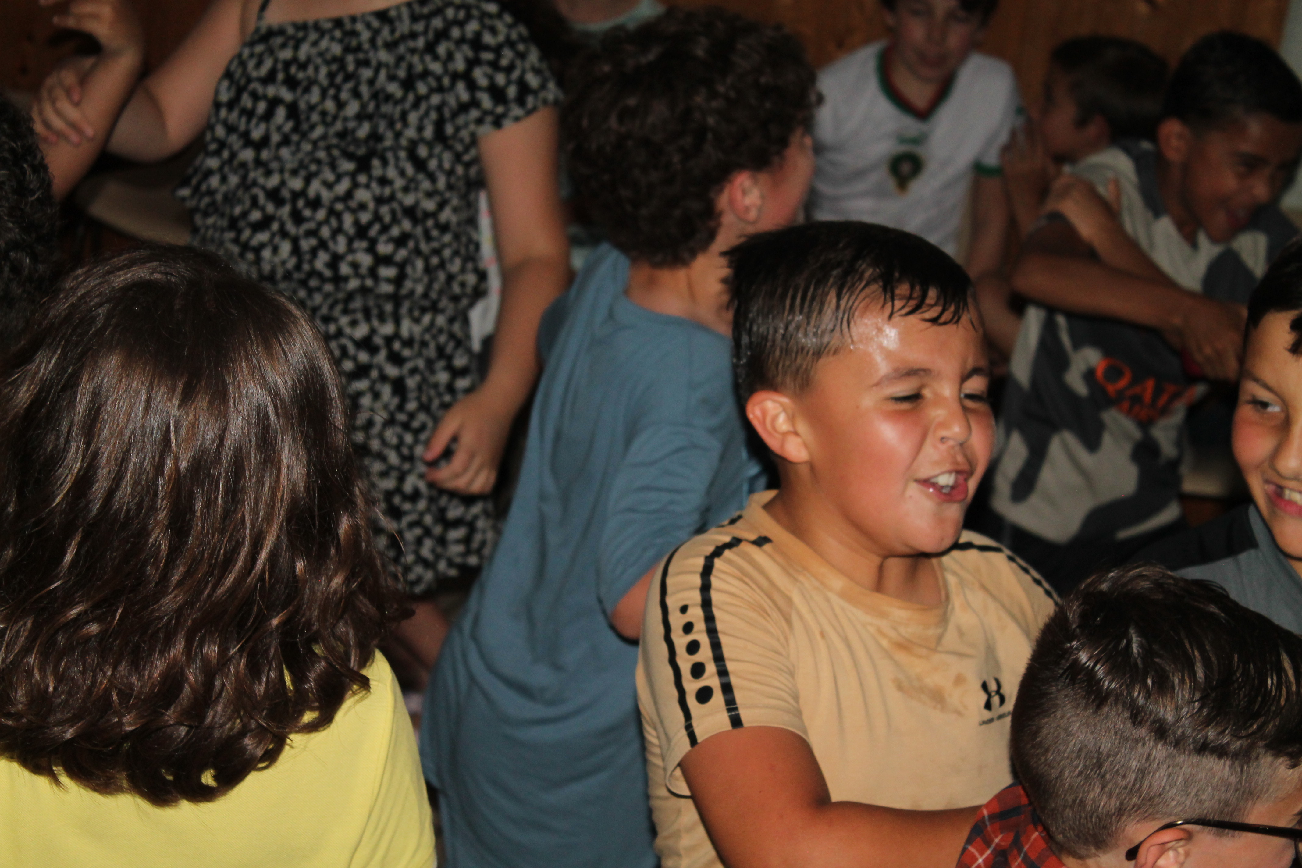 Pendant le repas du soir, Marc et Denis préparaient la boum pour pour mes camarades et moi. Après le repas nous sommes allé nous brosser les dents. Puis après notre brossage de dents nous sommes descendus dans le salle de la boum pour profiter. Aussi il y avait des bonbons, des boissons et de la musique. Et nous avons vraiment bien profité.