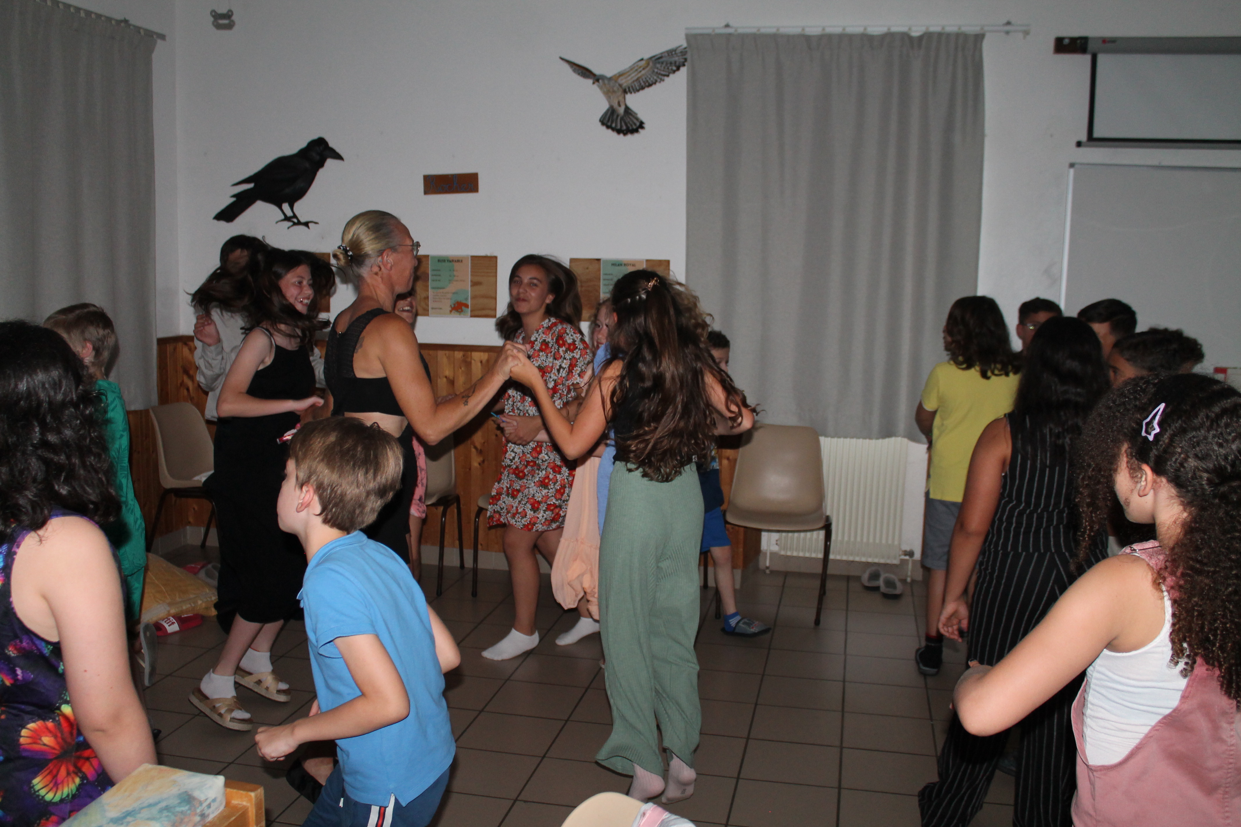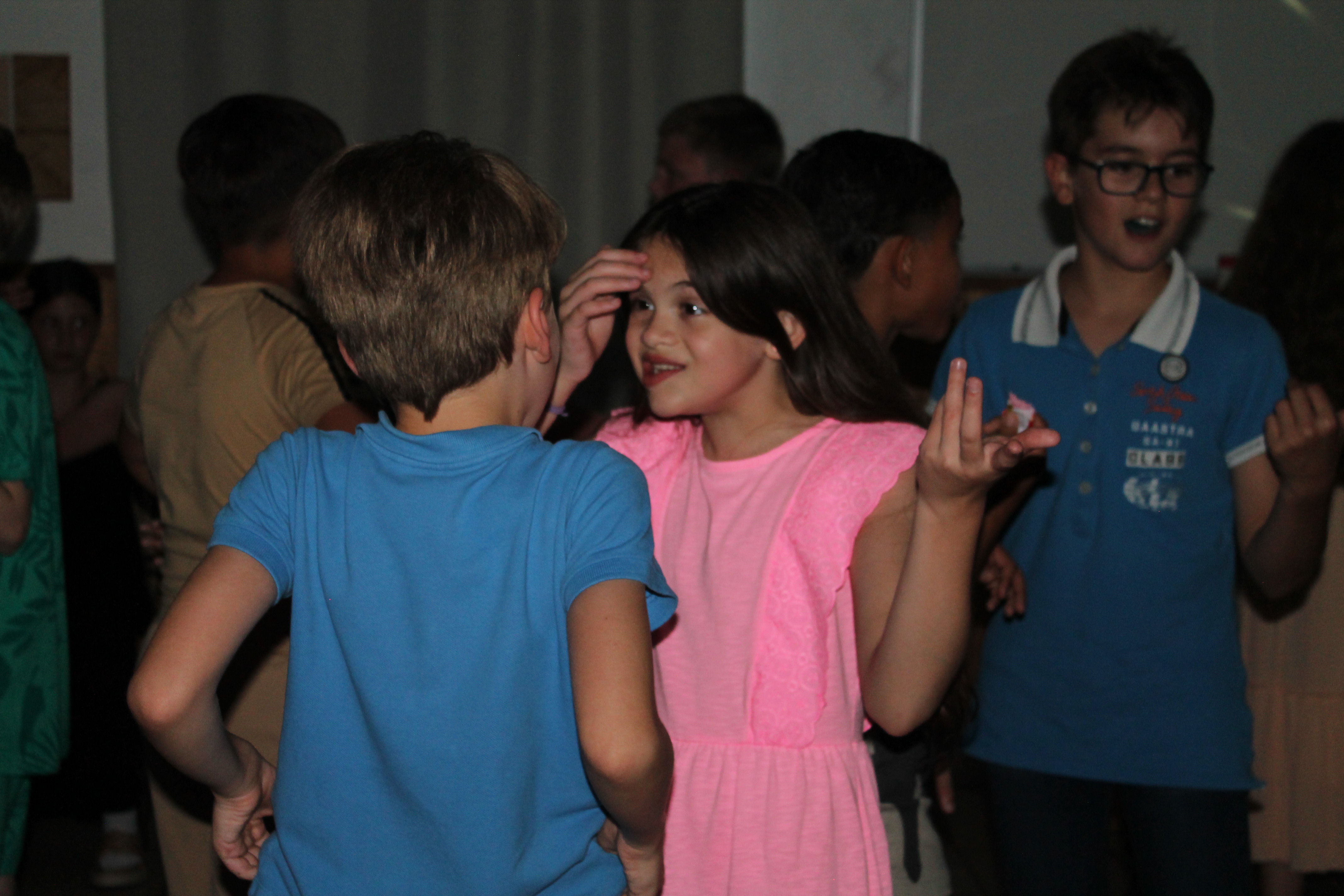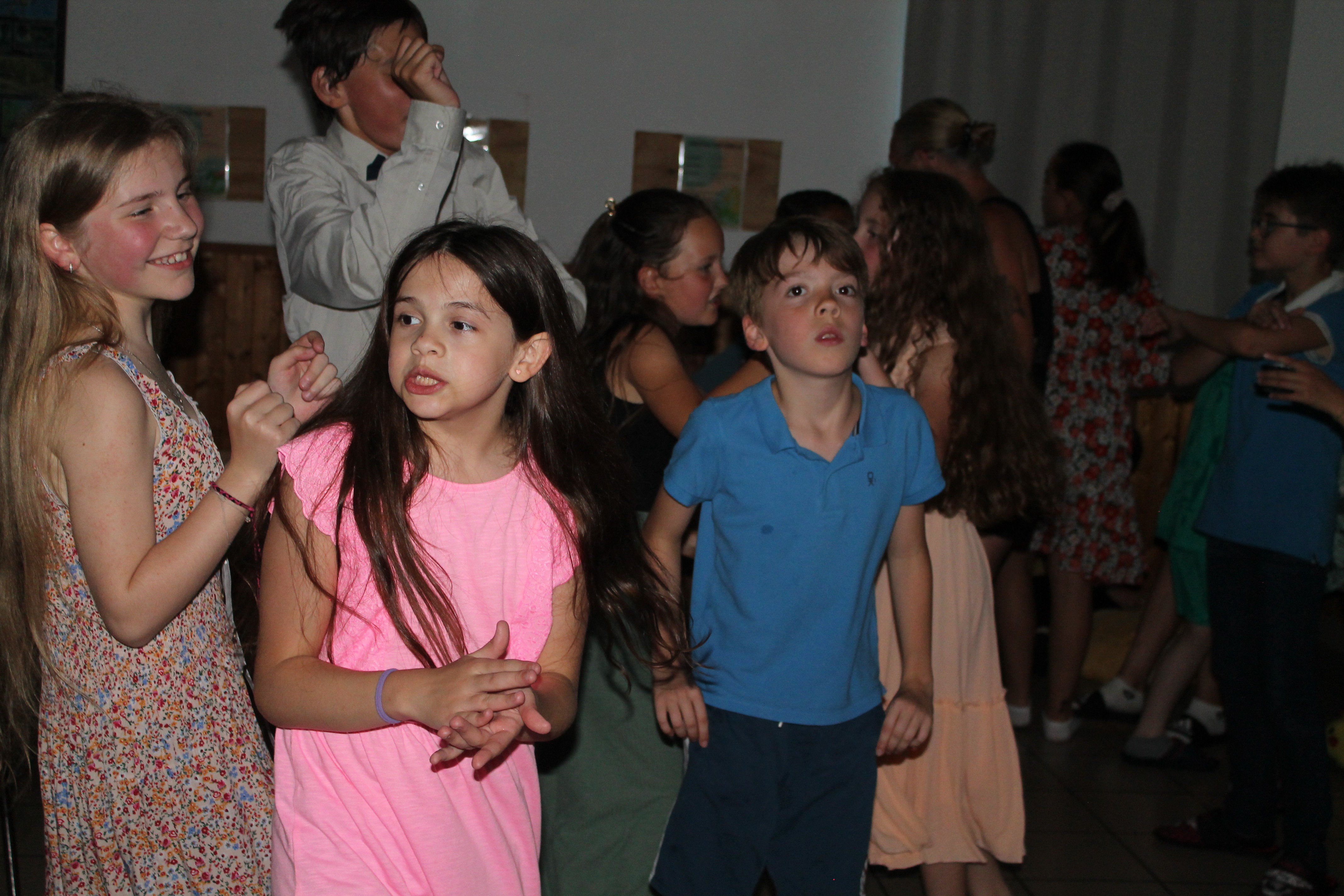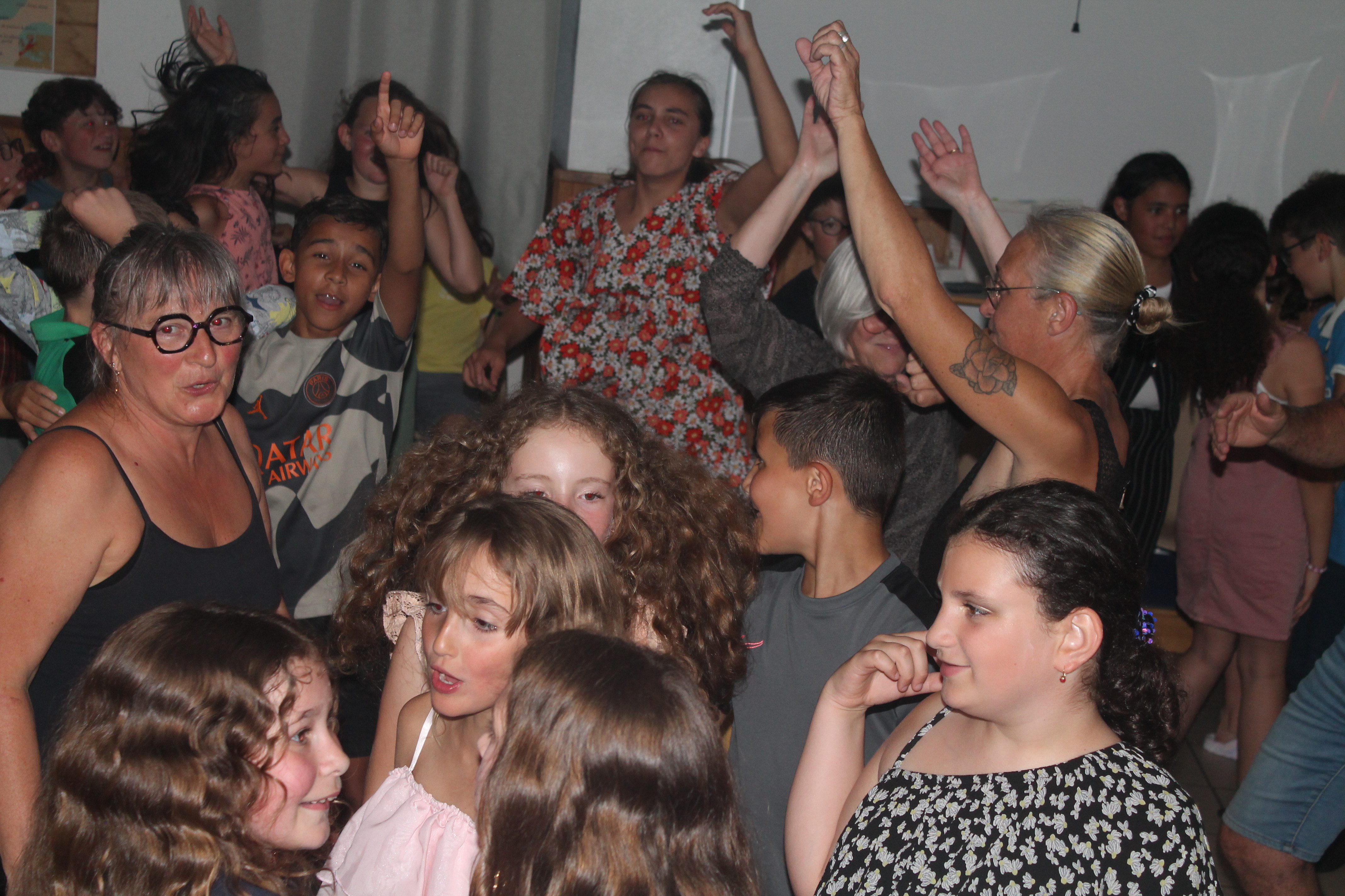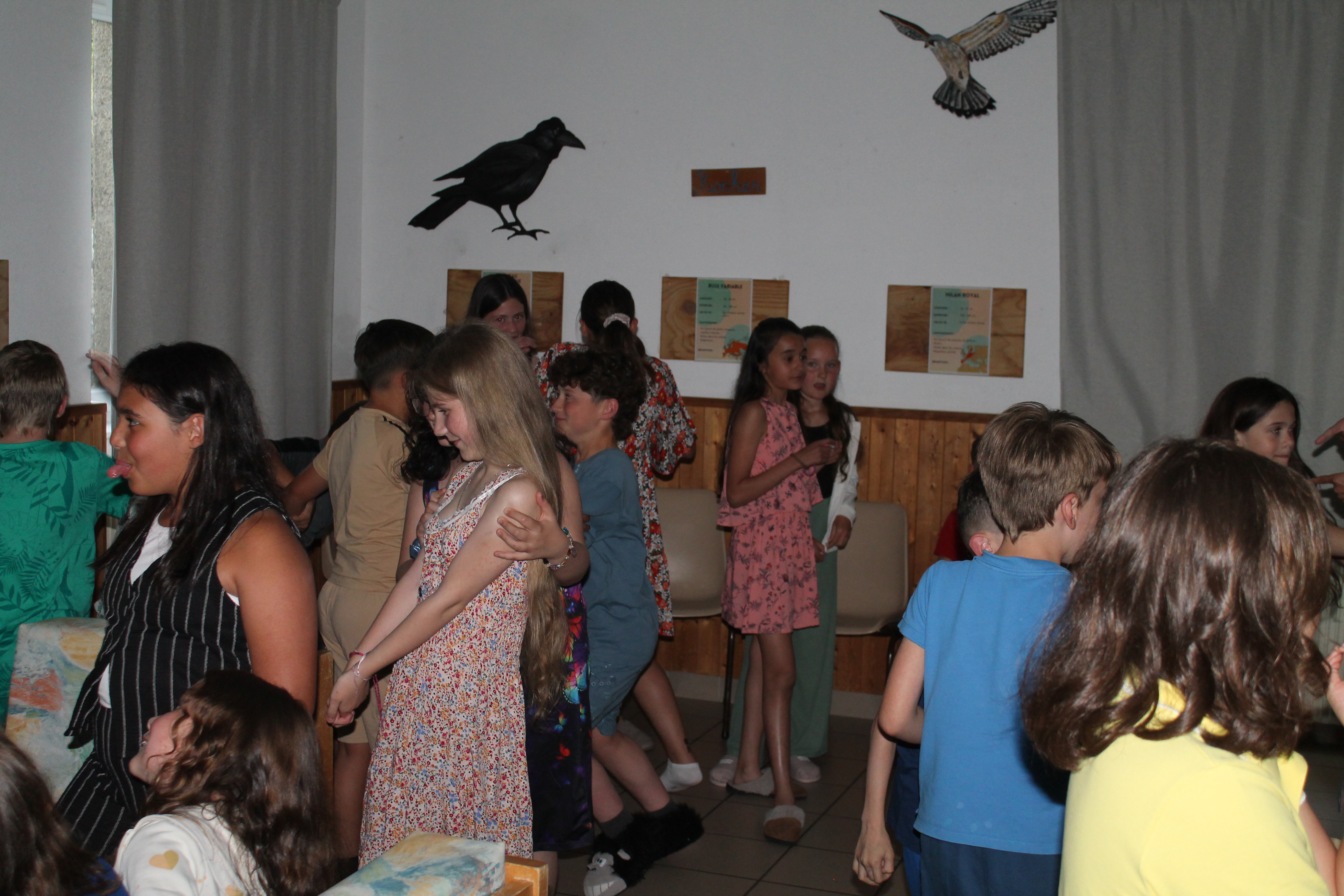Pendant le repas du soir, Marc et Denis préparaient la boum pour pour mes camarades et moi. Après le repas nous sommes allé nous brosser les dents. Puis après notre brossage de dents nous sommes descendus dans le salle de la boum pour profiter. Aussi il y avait des bonbons, des boissons et de la musique. Et nous avons vraiment bien profité.