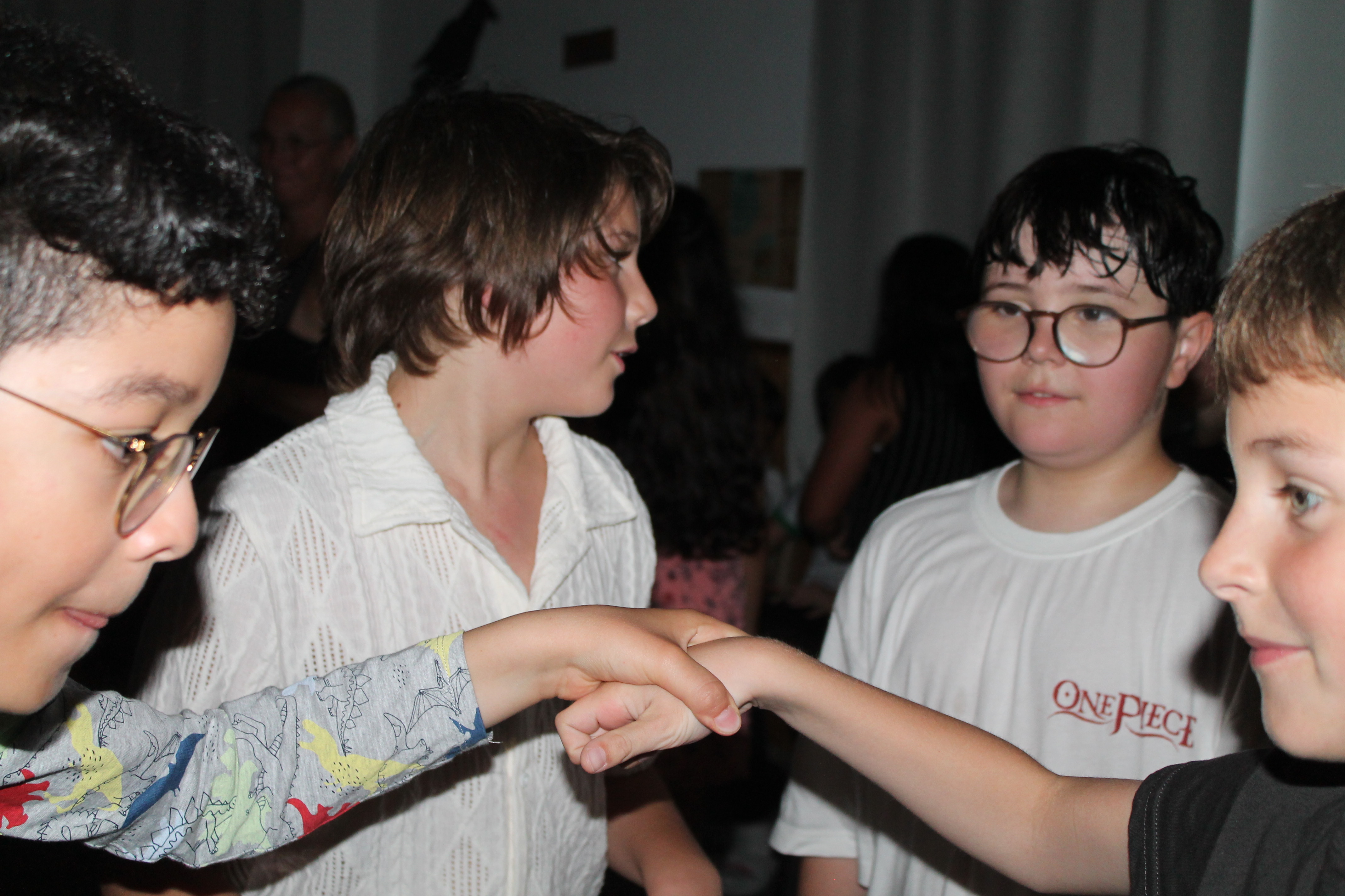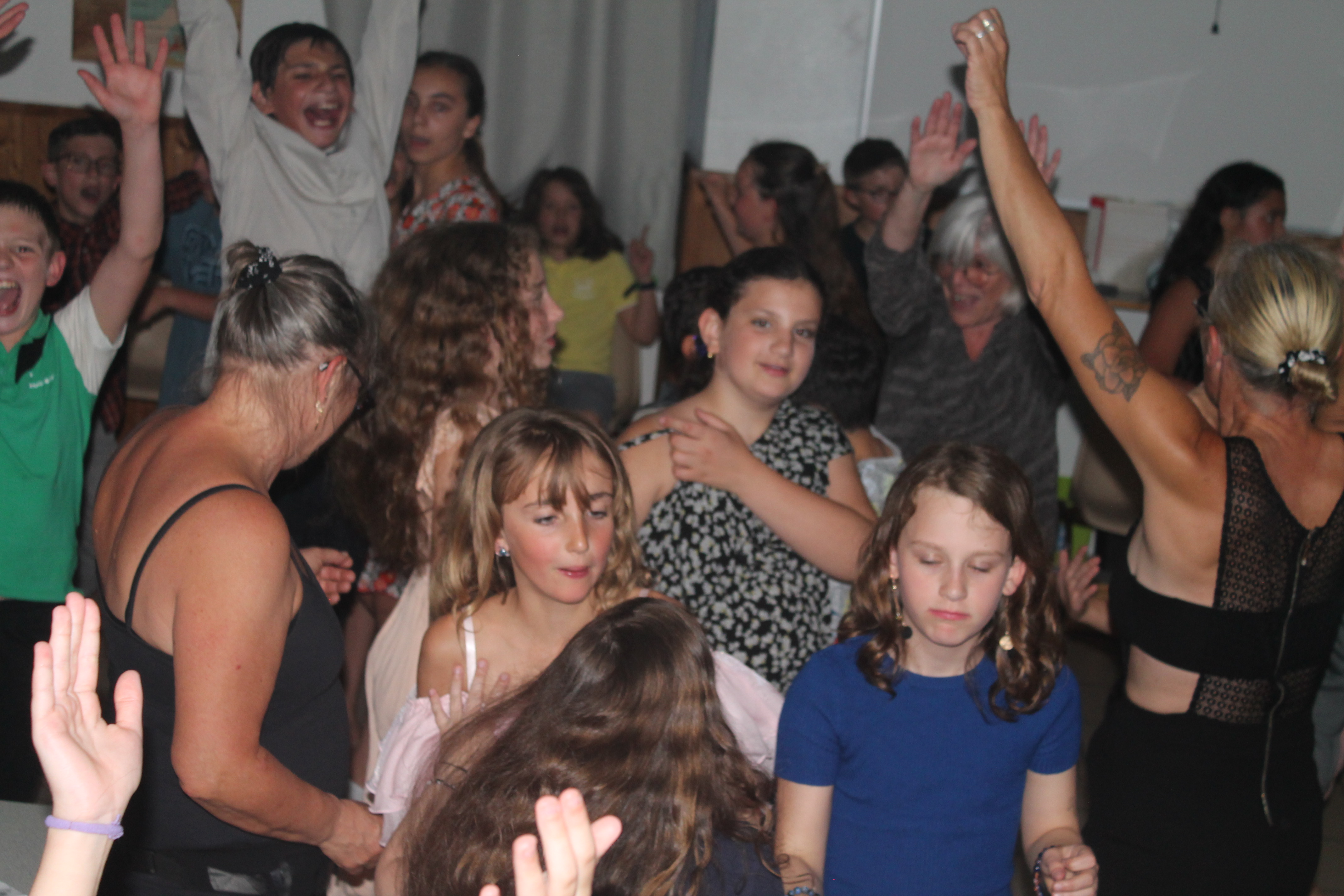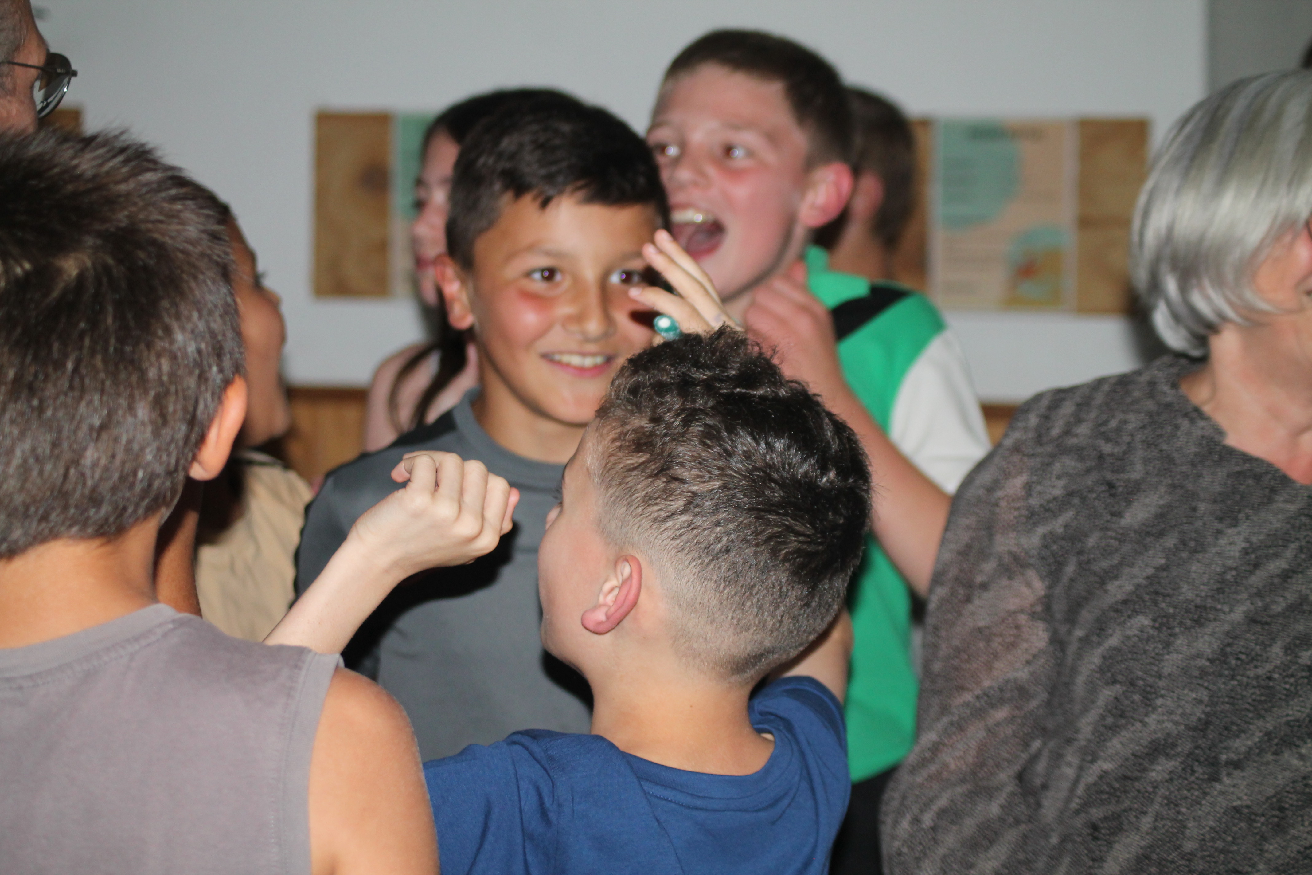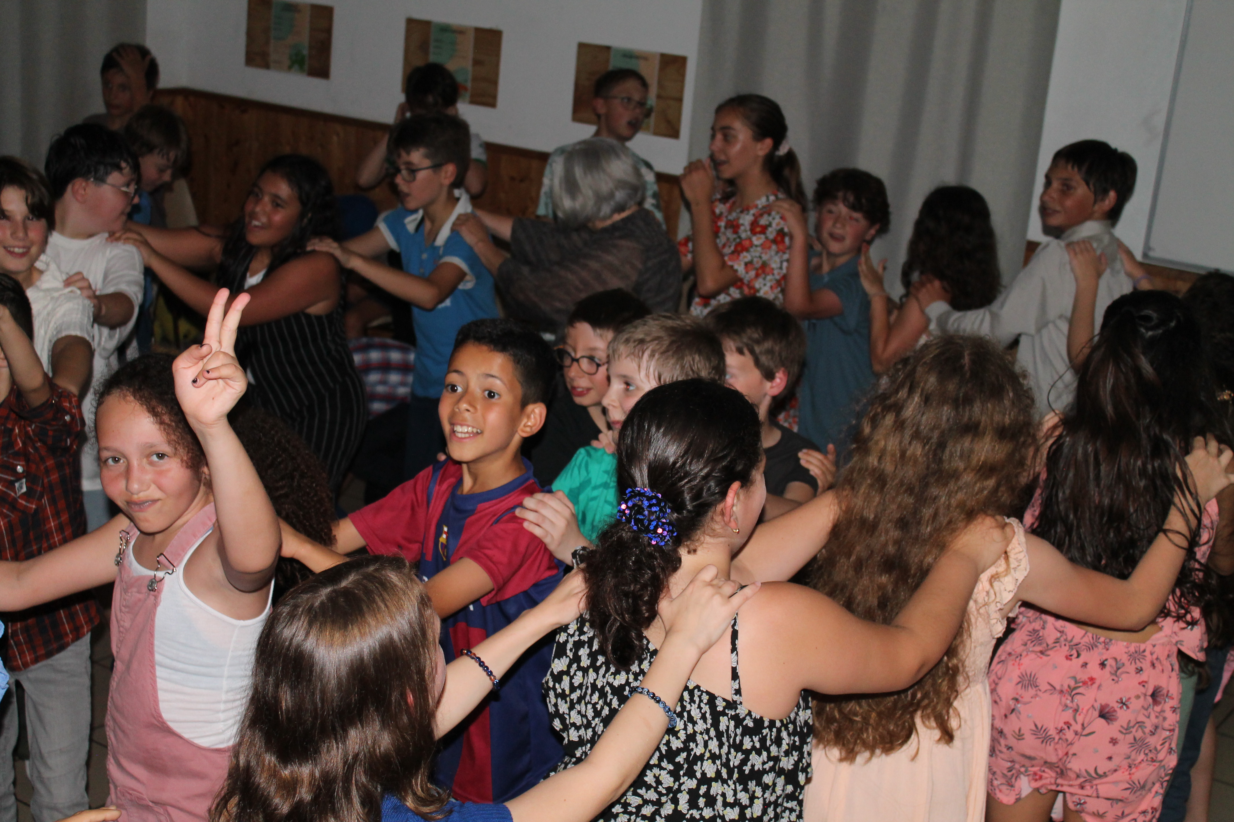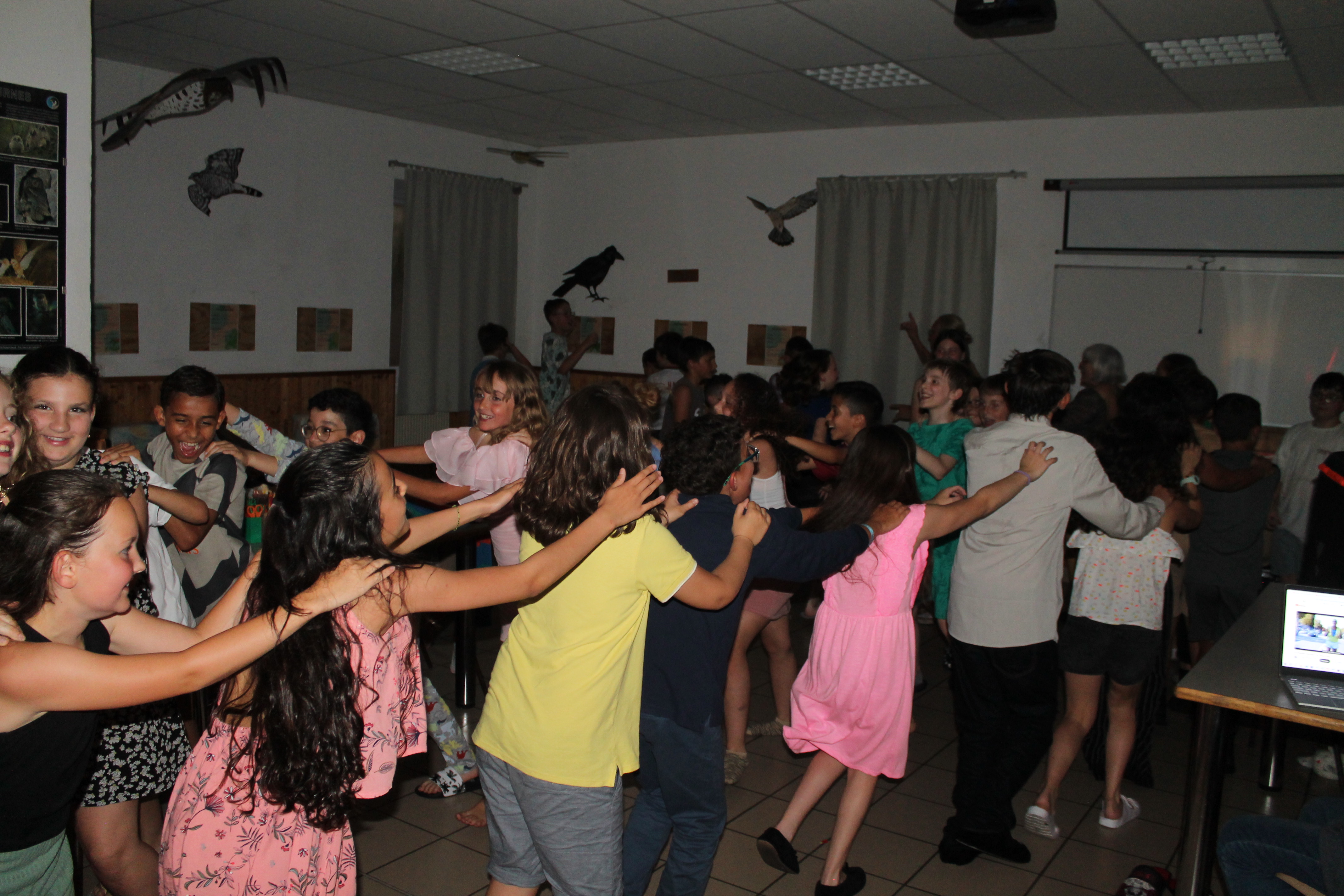 Pendant le repas du soir, Marc et Denis préparaient la boum pour pour mes camarades et moi. Après le repas nous sommes allé nous brosser les dents. Puis après notre brossage de dents nous sommes descendus dans le salle de la boum pour profiter. Aussi il y avait des bonbons, des boissons et de la musique. Et nous avons vraiment bien profité.