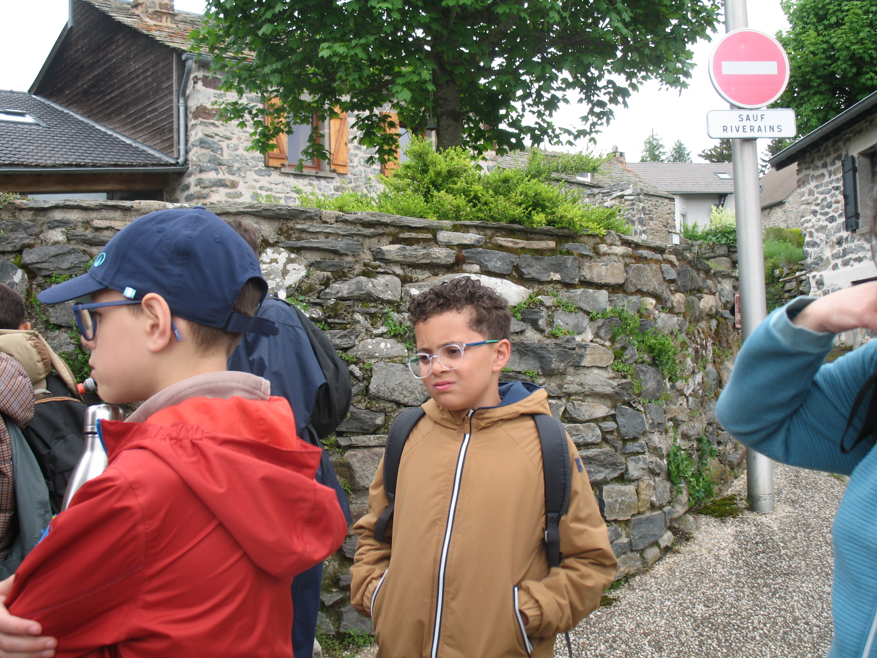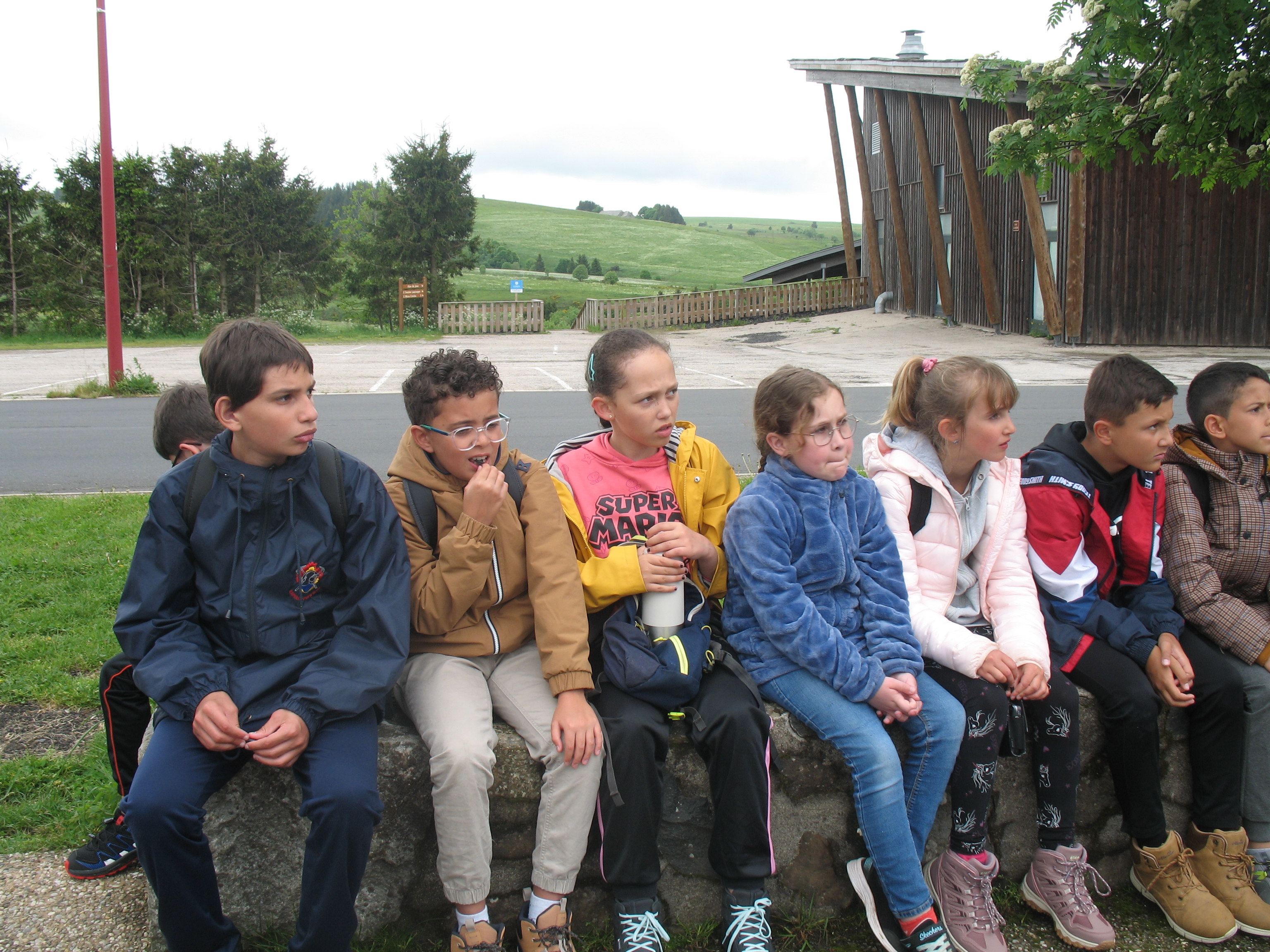 Aujourd'hui nous sommes partis à 9h15 en car pour les chalets du Mézenc. Arrivés sur place nous nous sommes retrouvés dans la salle des oiseaux pour boire un petit sirop et nous avons joué quelques instants. Ensuite, nous sommes allés manger. Au menu il y avait: une salade de lentilles pour l'entrée, des raviolis pour le plat, fromage et compote pour le dessert. Après nous nous sommes installés dans nos chambres pour ranger nos affaires. Puis, nous nous sommes répartis en deux groupes pour la randonnée. Nous sommes allés visiter le village avec un accompagnateur qui s'appelle Thierry. Enfin rentrés, nous sommes allés jouer dans la salle des oiseaux... Le soir nous avons mangé du potage, du poisson pané, du gratin de chou-fleur, et un fruit.