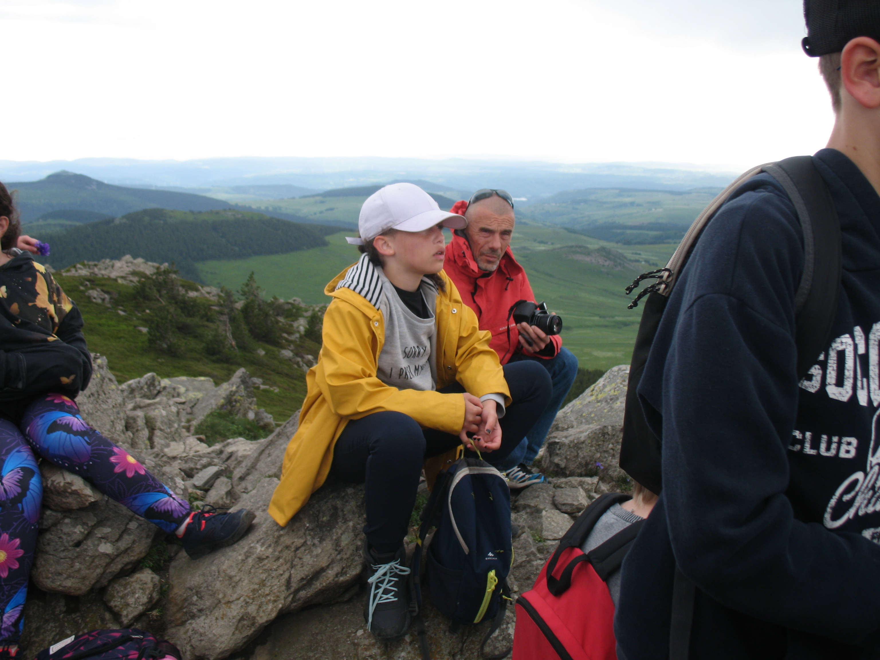 Ce moment où on a vu tous ces volcans extraordinaires c’était vraiment un moment de partage , le moniteur nous donnait des choses et puis nous aussi. Nous avons appris énormément de choses par exemple moi je ne savais pas ce que voulait dire "biodiversité". Ce moment là m’a donné envie de faire vulcanologue comme métier ça serait super. Cette sortie était super car je n’étais pas habituée à faire des randonnées. La vue du côté Haute Loire était magnifique. J’ai adoré explorer la nature et apprendre de nouvelles choses avec mes camarades. C’était très amusant pour moi surtout que les animateurs étaient très agréables.